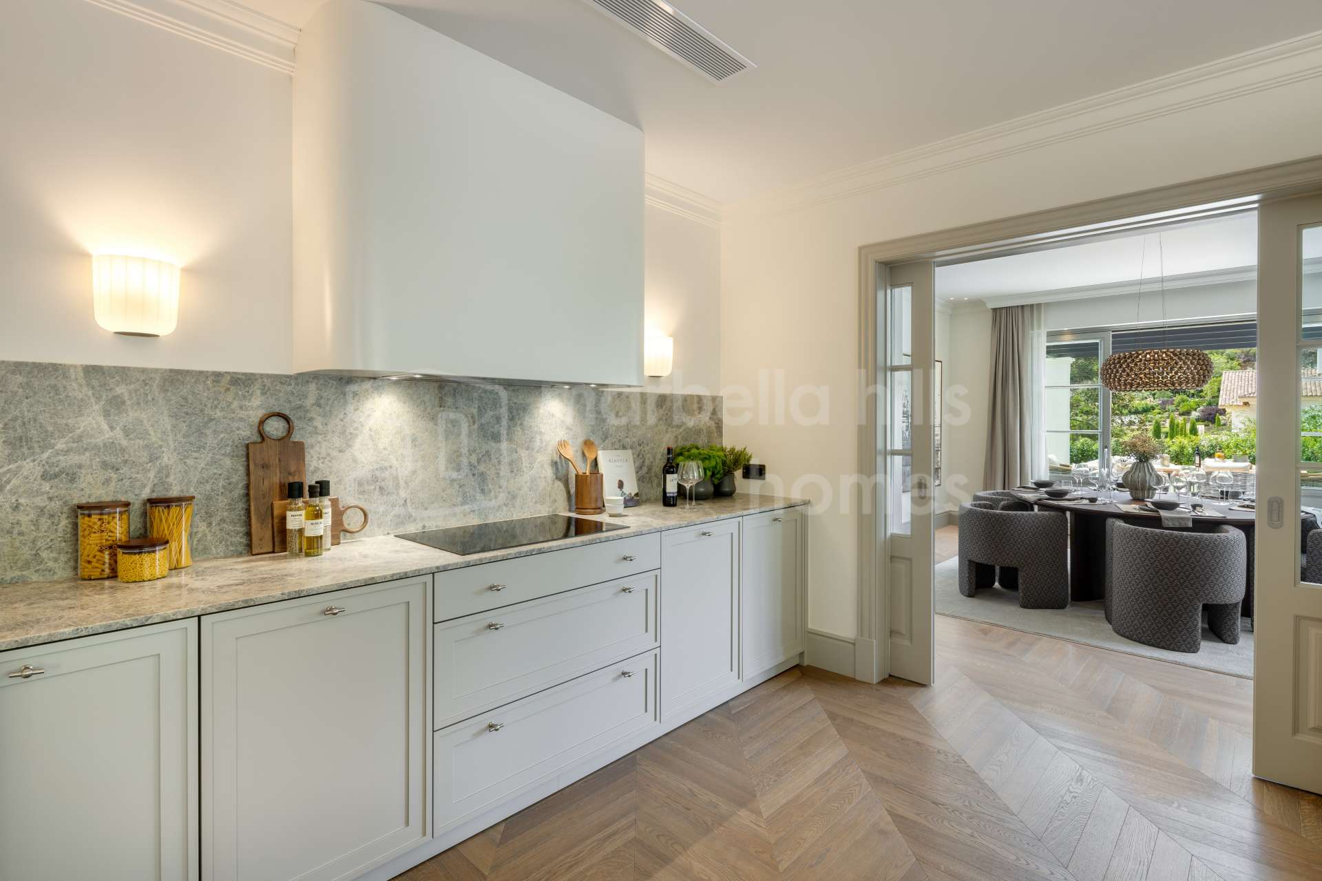 Fully fitted kitchen, Saltwater swimming pool, Close to schools, Surveillance cameras, Utility room, Pets allowed, Fireplace, Internet - Fibre optic, Marble floors, Basement, Guest room, Storage room, Gym, Alarm, Solarium, Security entrance, Double glazing, Video entrance, Dining room, Barbecue, Mountainside, Security service 24h, Guest toilet, Private terrace, Kitchen equipped, Living room, Mountain view, Underfloor heating (throughout), Automatic irrigation system, Smart home system, Laundry room, Internet - Wi-Fi, Covered terrace, Fitted wardrobes, Gated community, Air conditioning, Garden view, Panoramic view, Cinema room, Doorman, Wine Cellar, Steam Room, Close to golf, Uncovered terrace, Separate dining room, SPA, Fully furnished, Excellent condition, Recently Renovated / Refurbished.