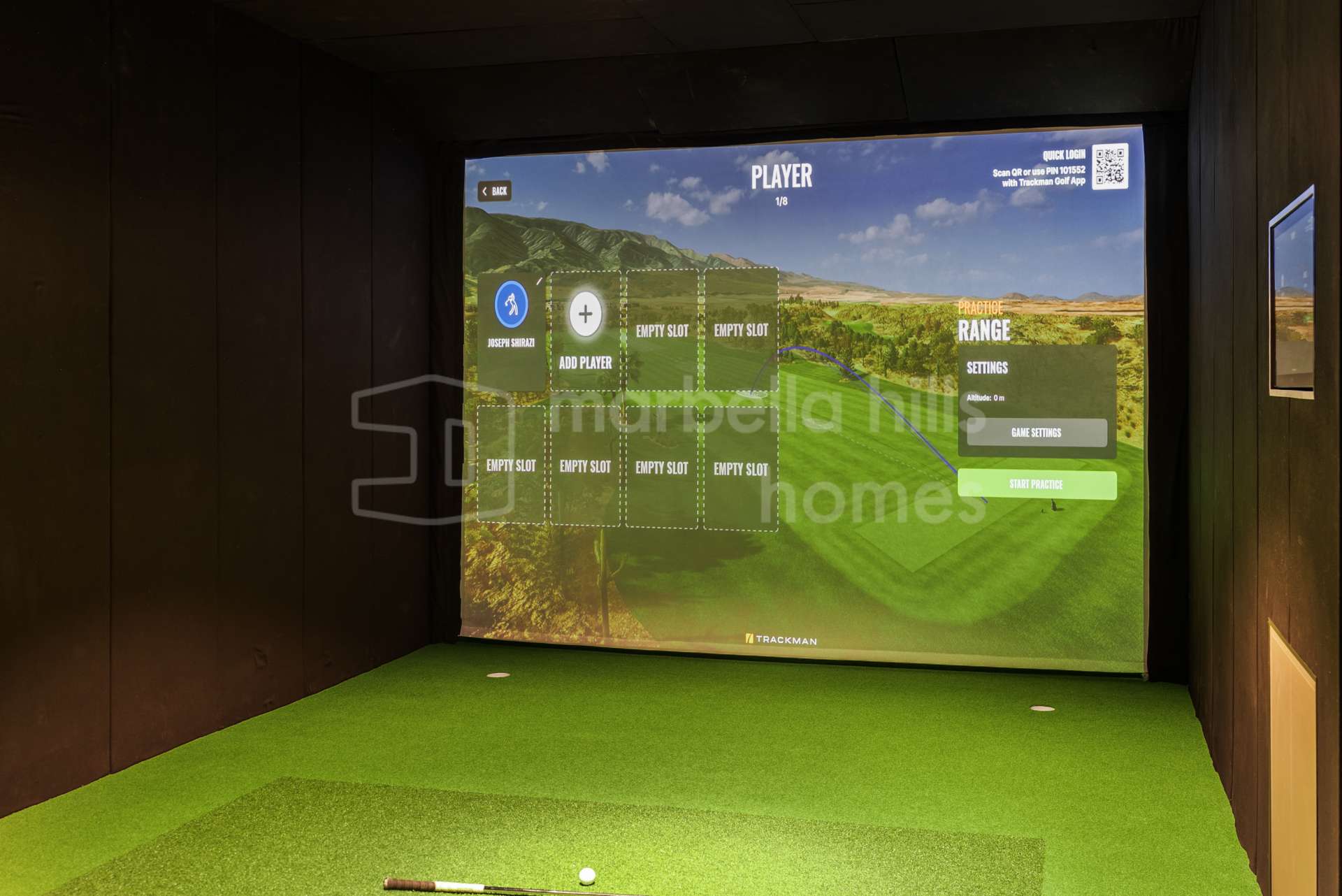On the lower level, residents can enjoy a private golf simulator that can easily be converted into a home cinema or games room, alongside a wine cellar, laundry room, and a garage for three cars with additional storage.