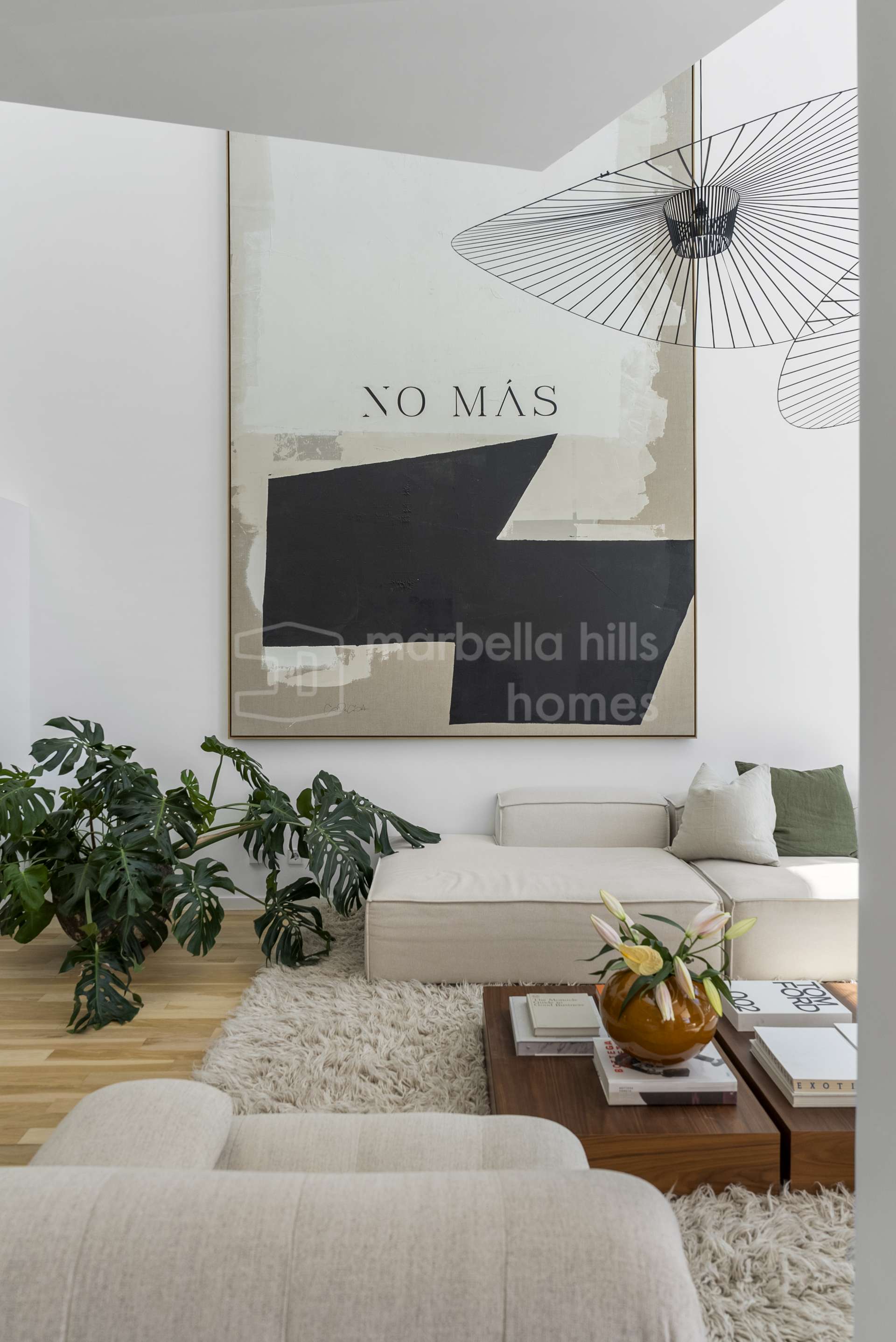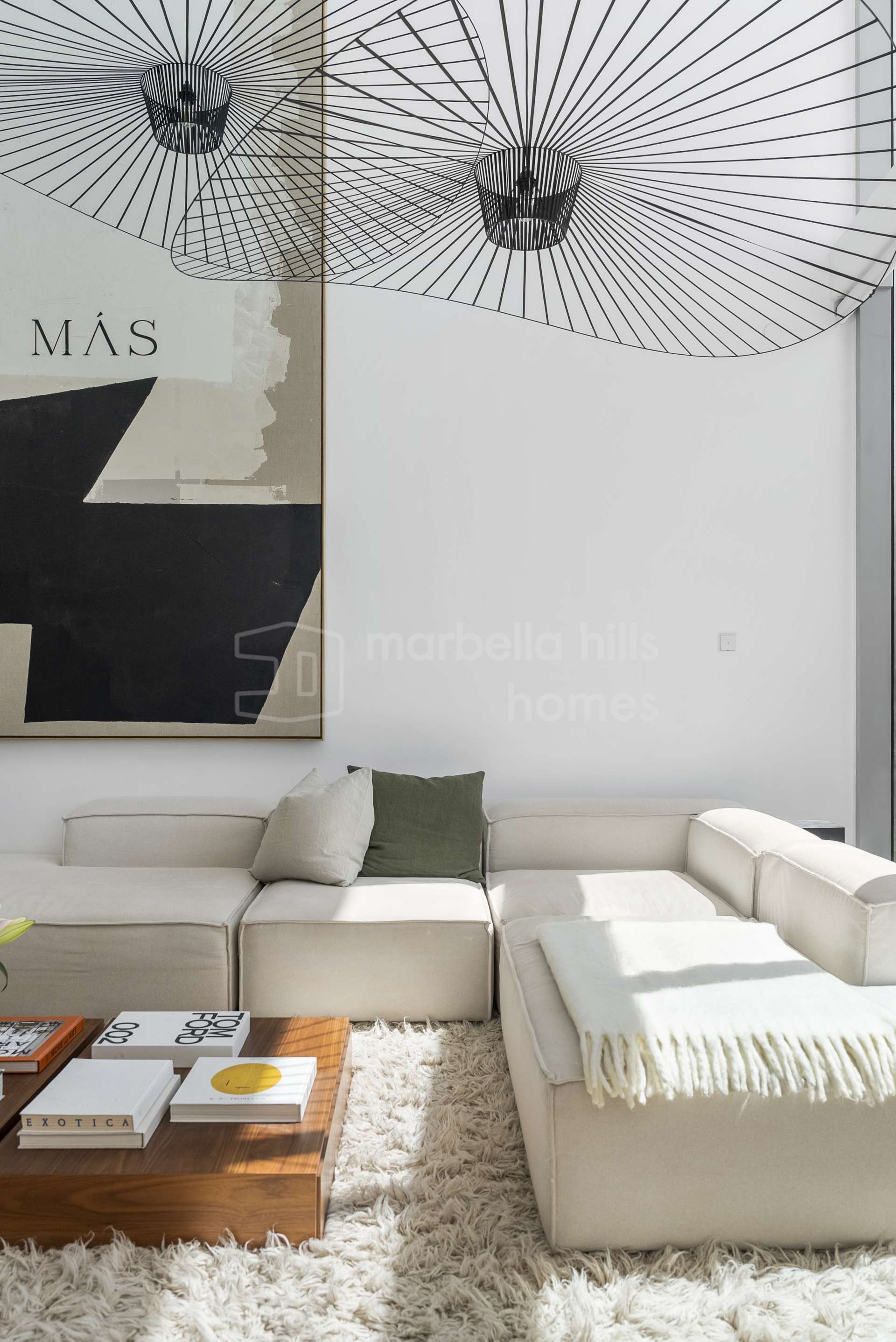 This exceptional semi-detached villa offers a perfect balance of contemporary design, refined comfort, and architectural sophistication. Located in the exclusive gated community of Meisho Hills in Sierra Blanca, one of Marbella’s most prestigious residential areas, the property enjoys panoramic views over the Mediterranean Sea and the coastline below La Concha mountain.