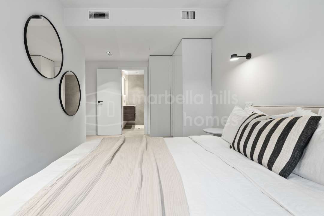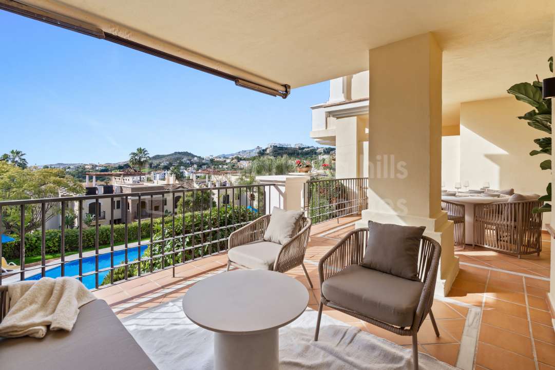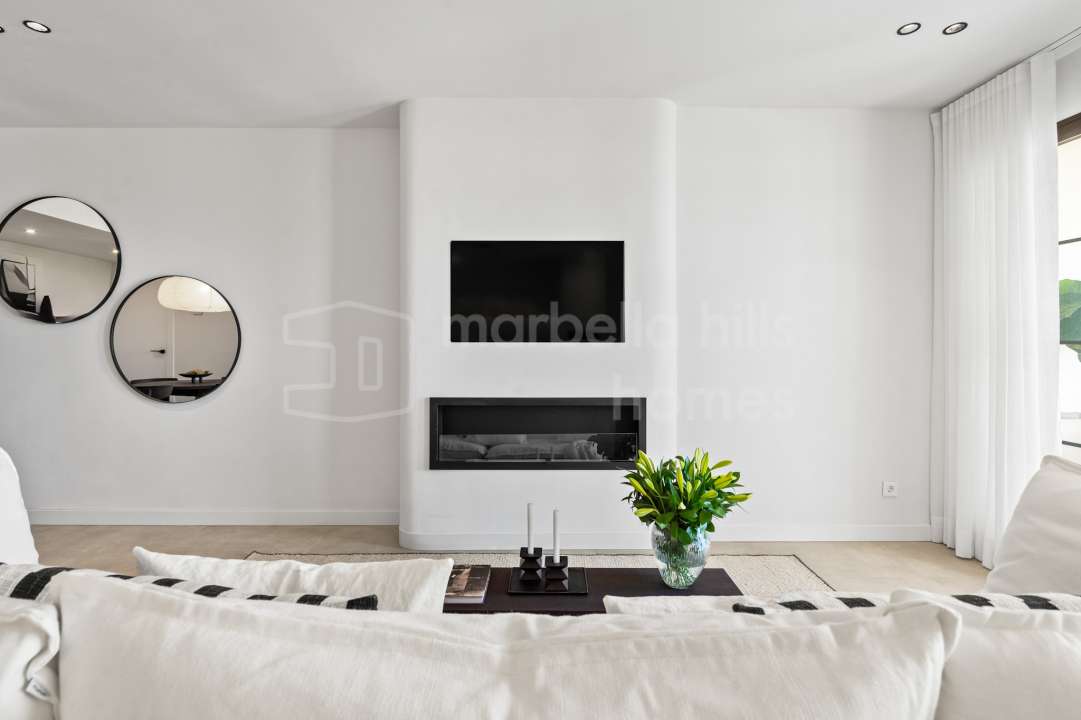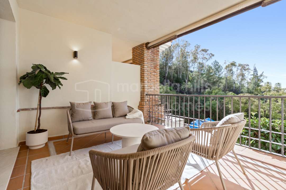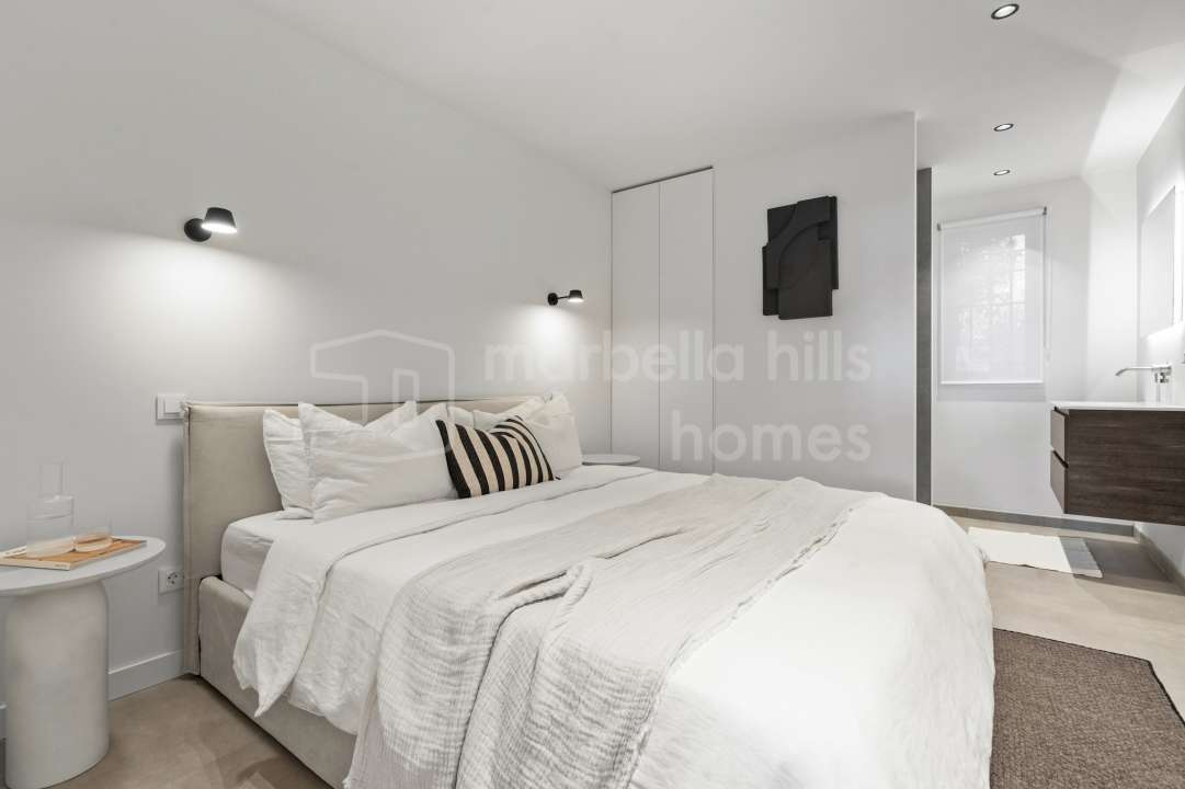 Fully renovated 2-bedroom apartment for sale in Los Arqueros, Benahavís. Spacious terrace, modern design, pool, parking. 10 minutes to the beach.