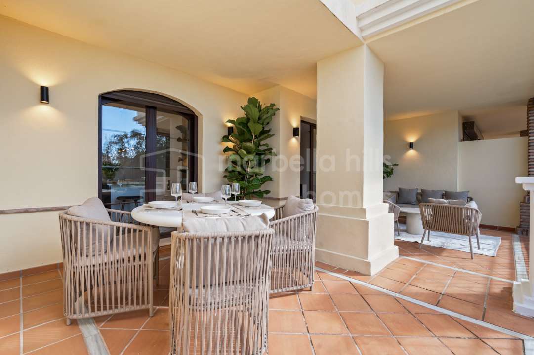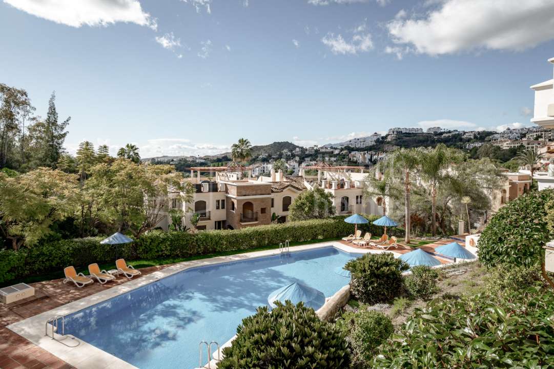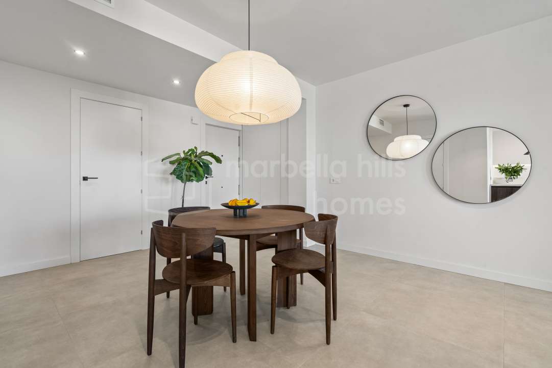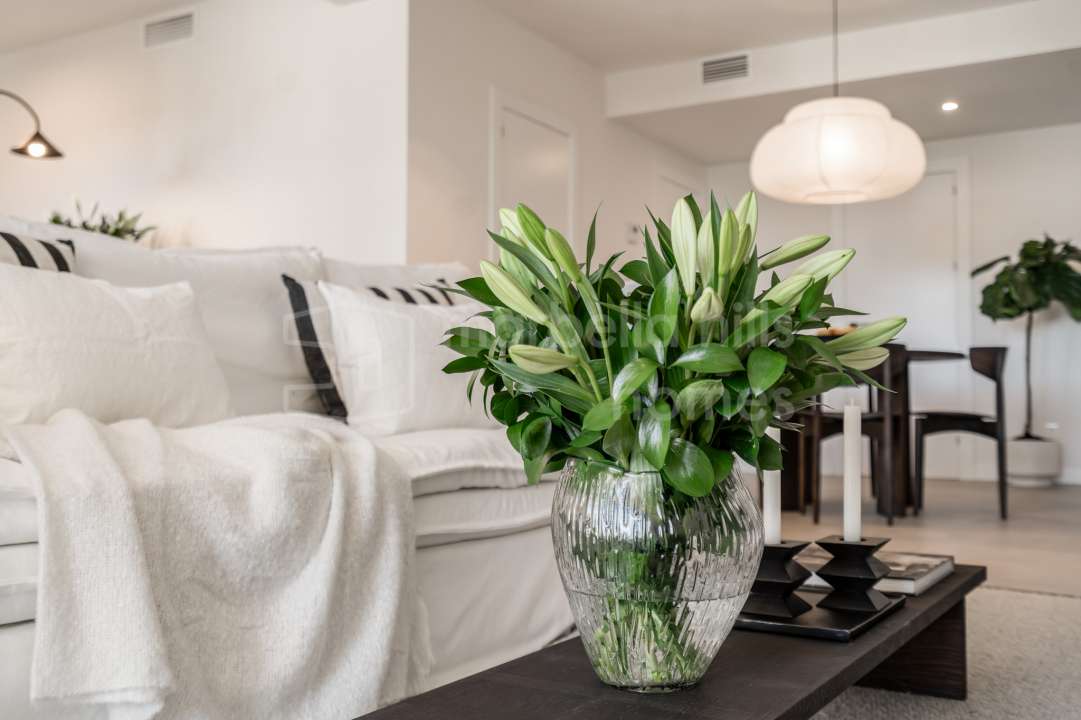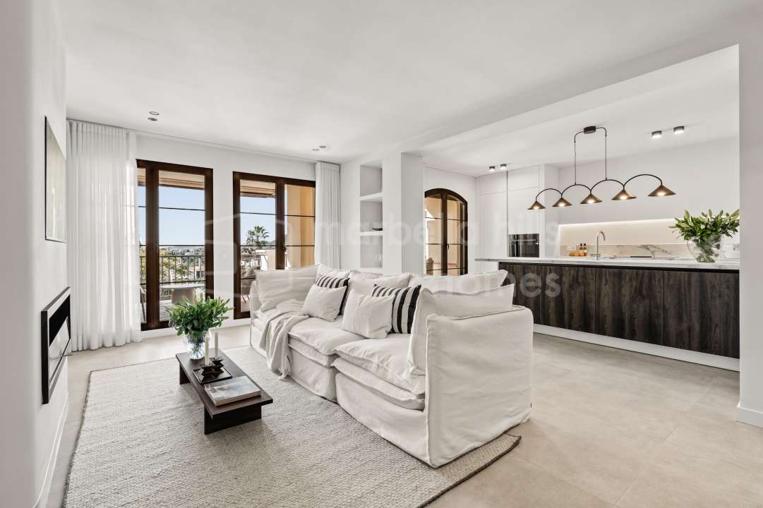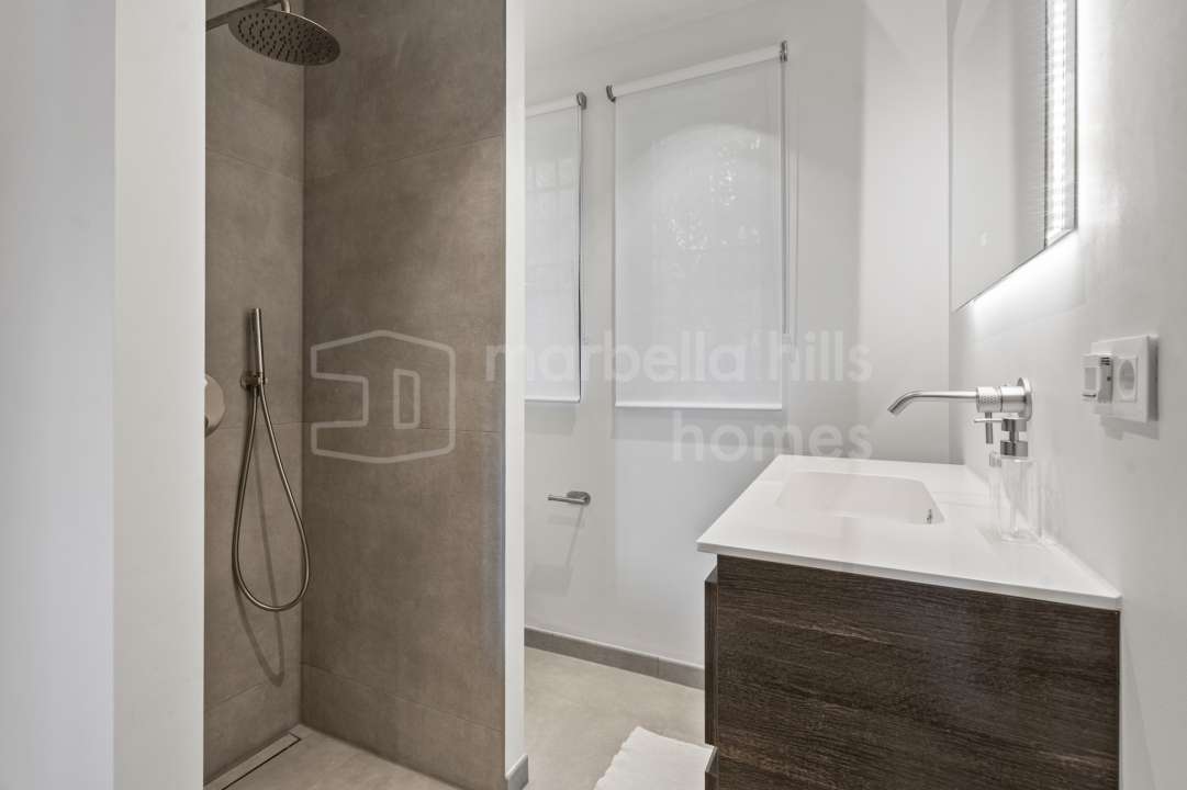 Fully renovated 2-bedroom apartment for sale in Los Arqueros, Benahavís. Spacious terrace, modern design, pool, parking. 10 minutes to the beach.
