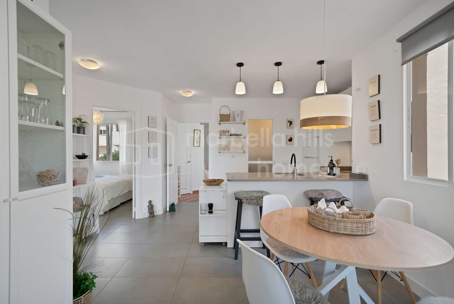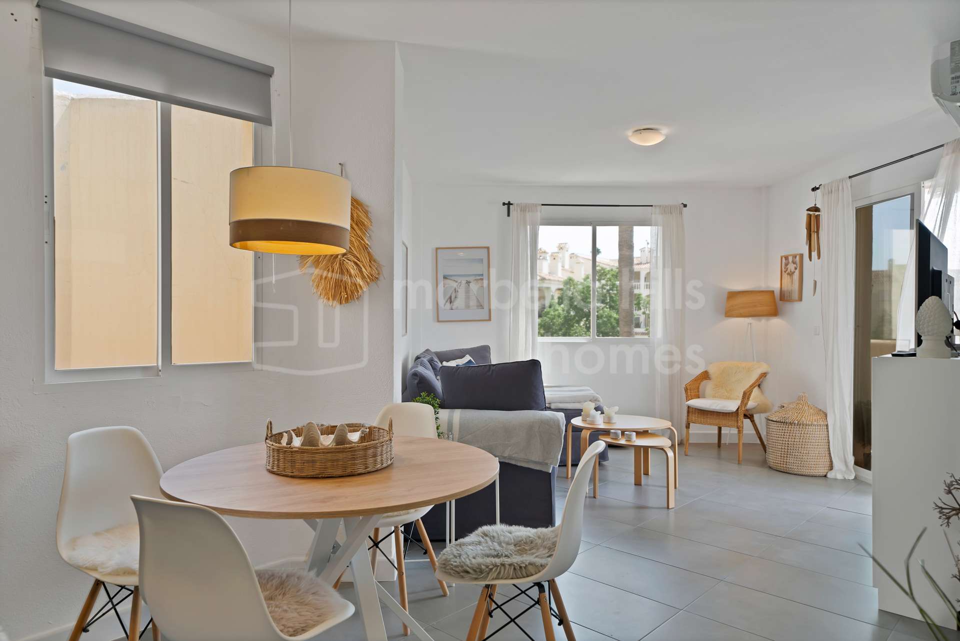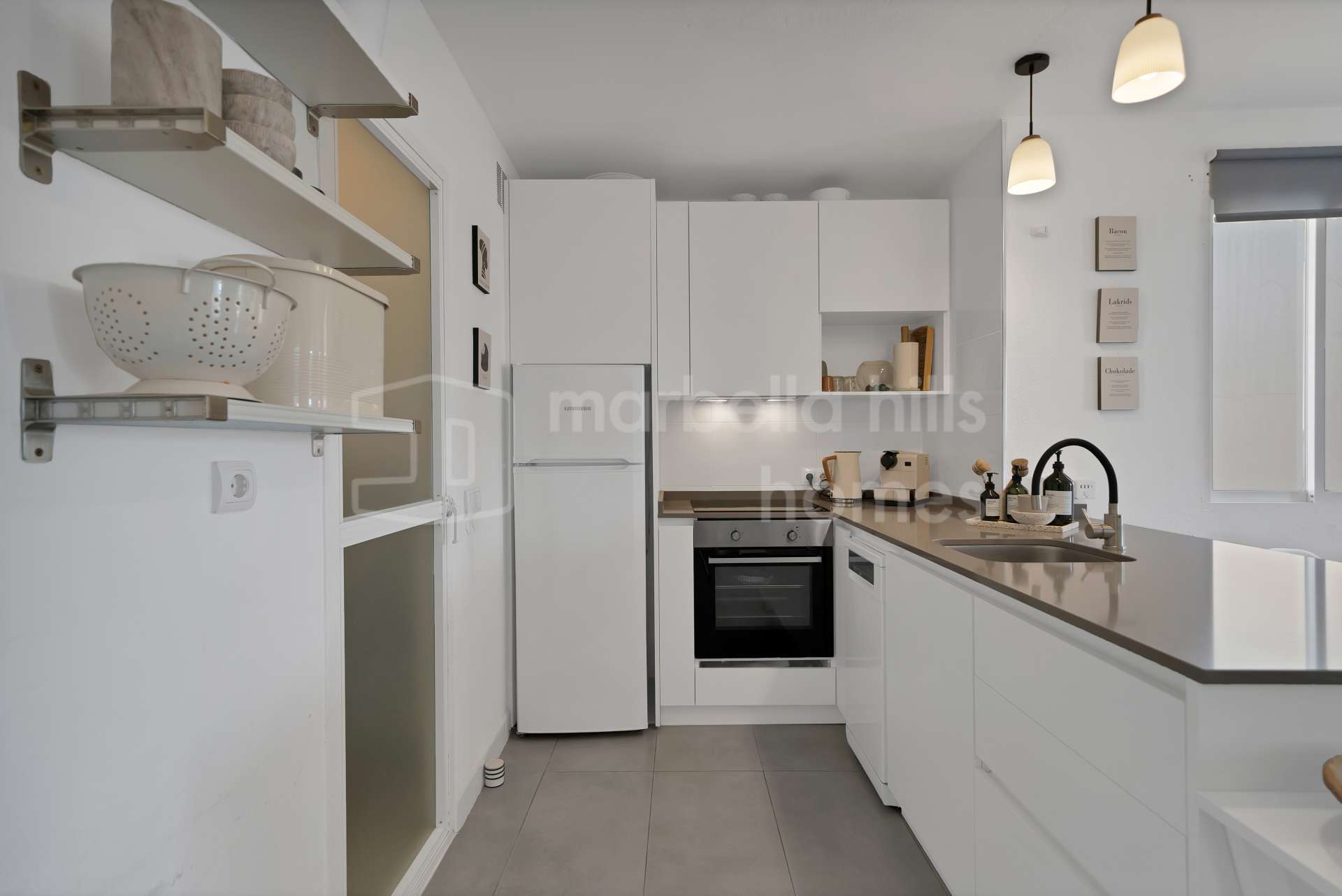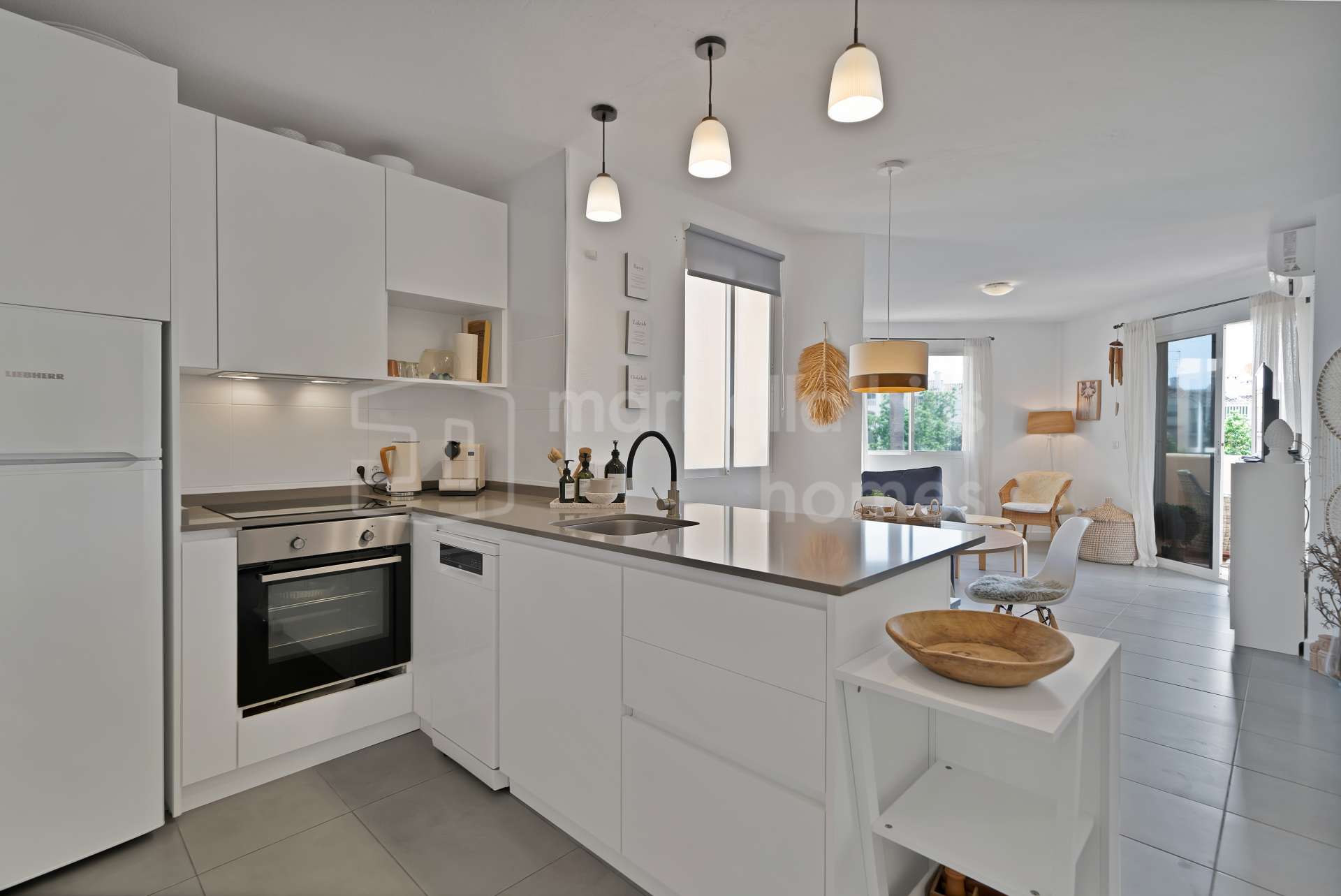 The apartment features two comfortable bedrooms, one and a half bathrooms, and a practical open-plan layout that maximizes natural light. The modern kitchen and living area connect seamlessly, creating a welcoming space ideal for both relaxation and entertaining. A private terrace provides the perfect spot to enjoy the Andalusian sunshine and views of the surrounding area.