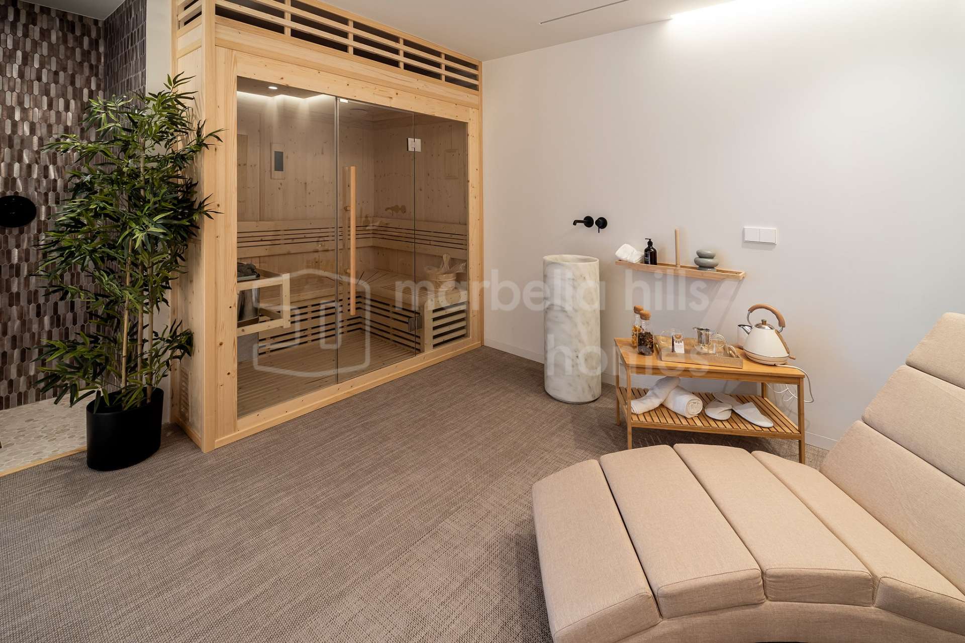 Fully fitted kitchen, Pets allowed, Fireplace, Internet - Fibre optic, Sauna, Basement, Solar panels, Guest room, Storage room, Gym, Alarm, Double glazing, Dining room, Barbecue, Guest toilet, Private terrace, Kitchen equipped, Living room, Amenities near, Underfloor heating (throughout), Automatic irrigation system, Dolby Stereo Surround system, Laundry room, Internet - Wi-Fi, Covered terrace, Fitted wardrobes, Air conditioning, Lift, Garden view, Panoramic view, Close to golf, Uncovered terrace, Separate dining room, Open plan kitchen, Optional furniture, Excellent condition.