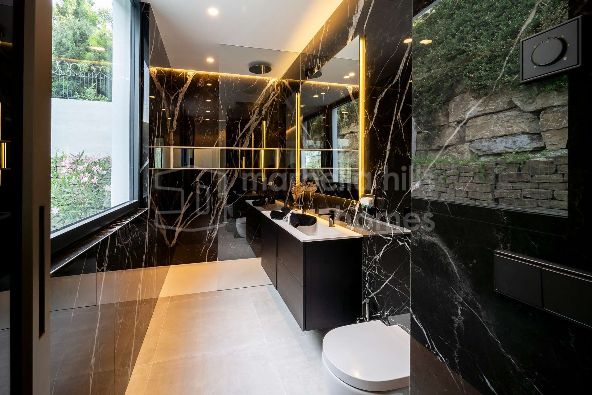 Ample terrace and balcony areas offer panoramic views of the Mediterranean surroundings, while the private garage and additional parking ensure convenience and security. The outdoor areas balance modern landscaping with Mediterranean charm, creating a serene and private retreat.