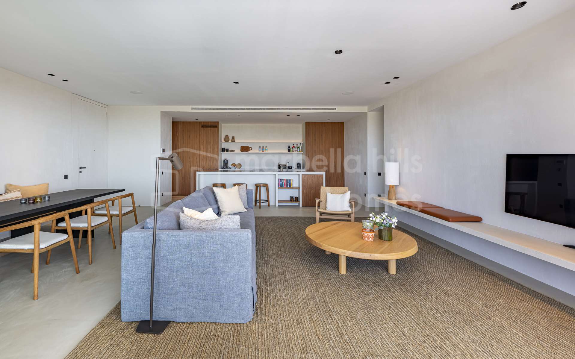 Located in the exclusive development of Byu Hills, Benahavís, this exceptional south-facing apartment combines cutting-edge design, luxury finishes and breathtaking views of the Mediterranean coastline, Gibraltar and North Africa.
