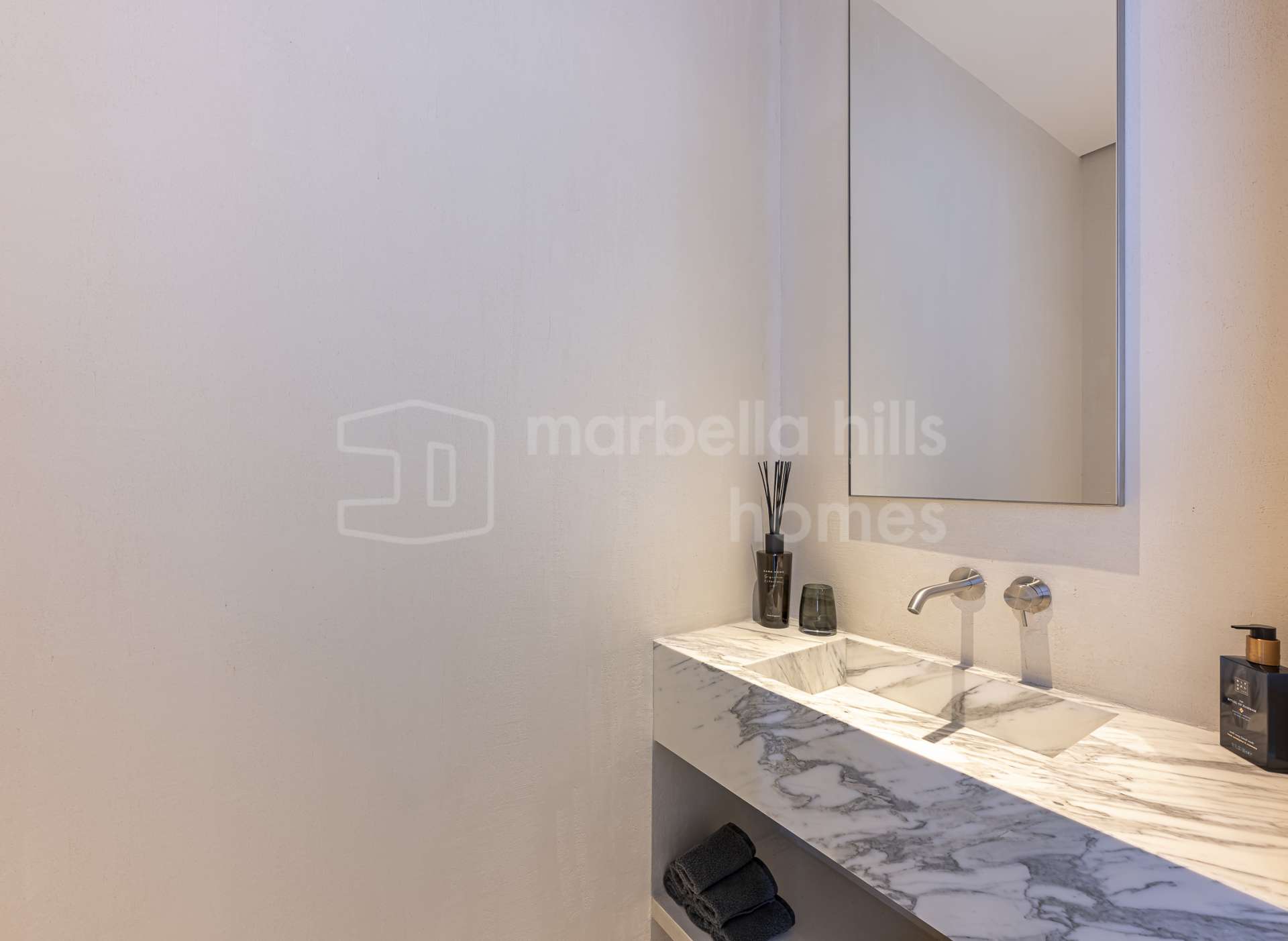 Surrounded by four golf courses and just three minutes from San Pedro de Alcántara, the complex offers quick access to La Quinta, Nueva Andalucía and Marbella. Nearby amenities include a shopping centre with supermarkets, pharmacy and restaurants, and Málaga Airport is only 45 minutes away.