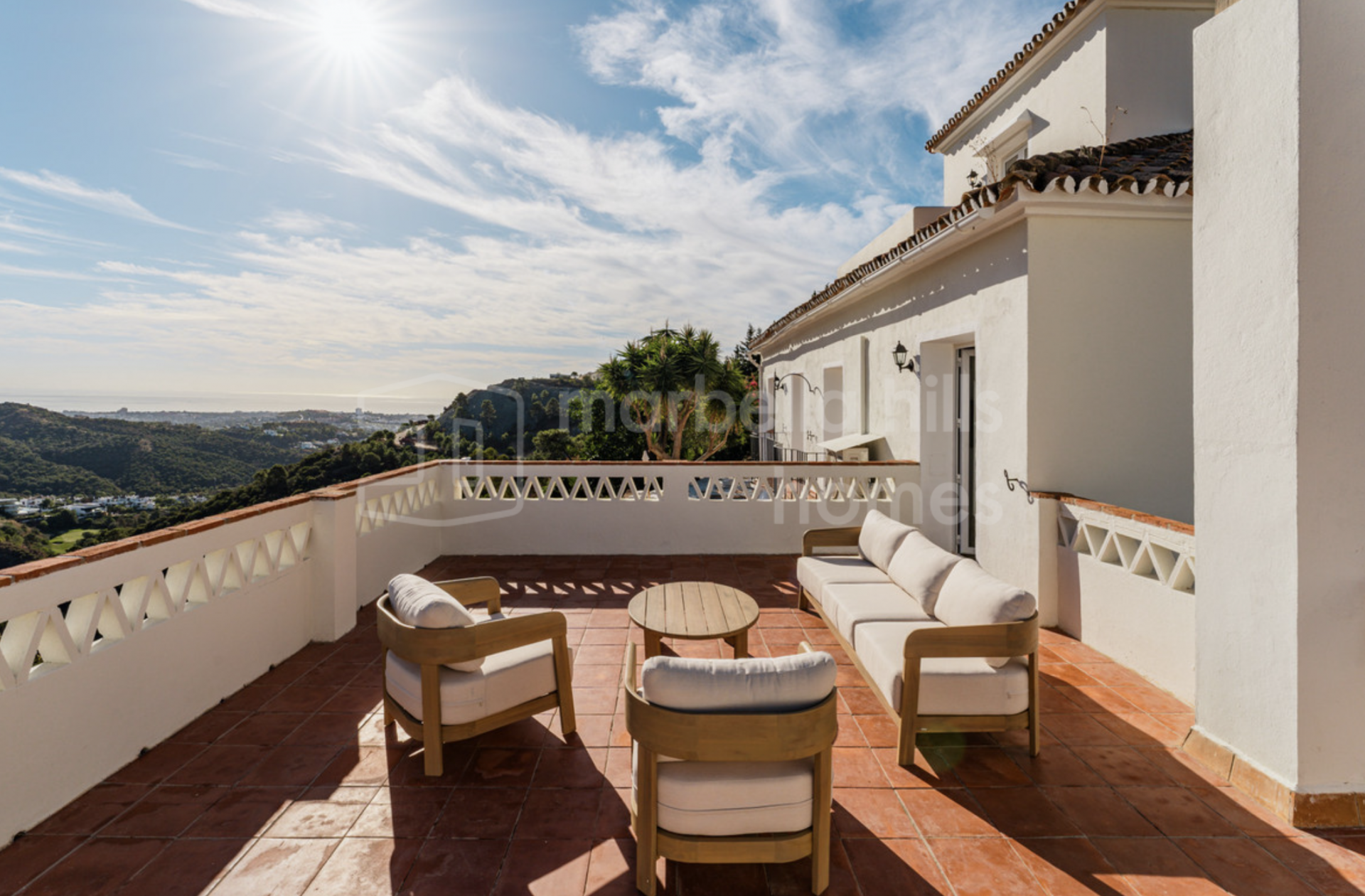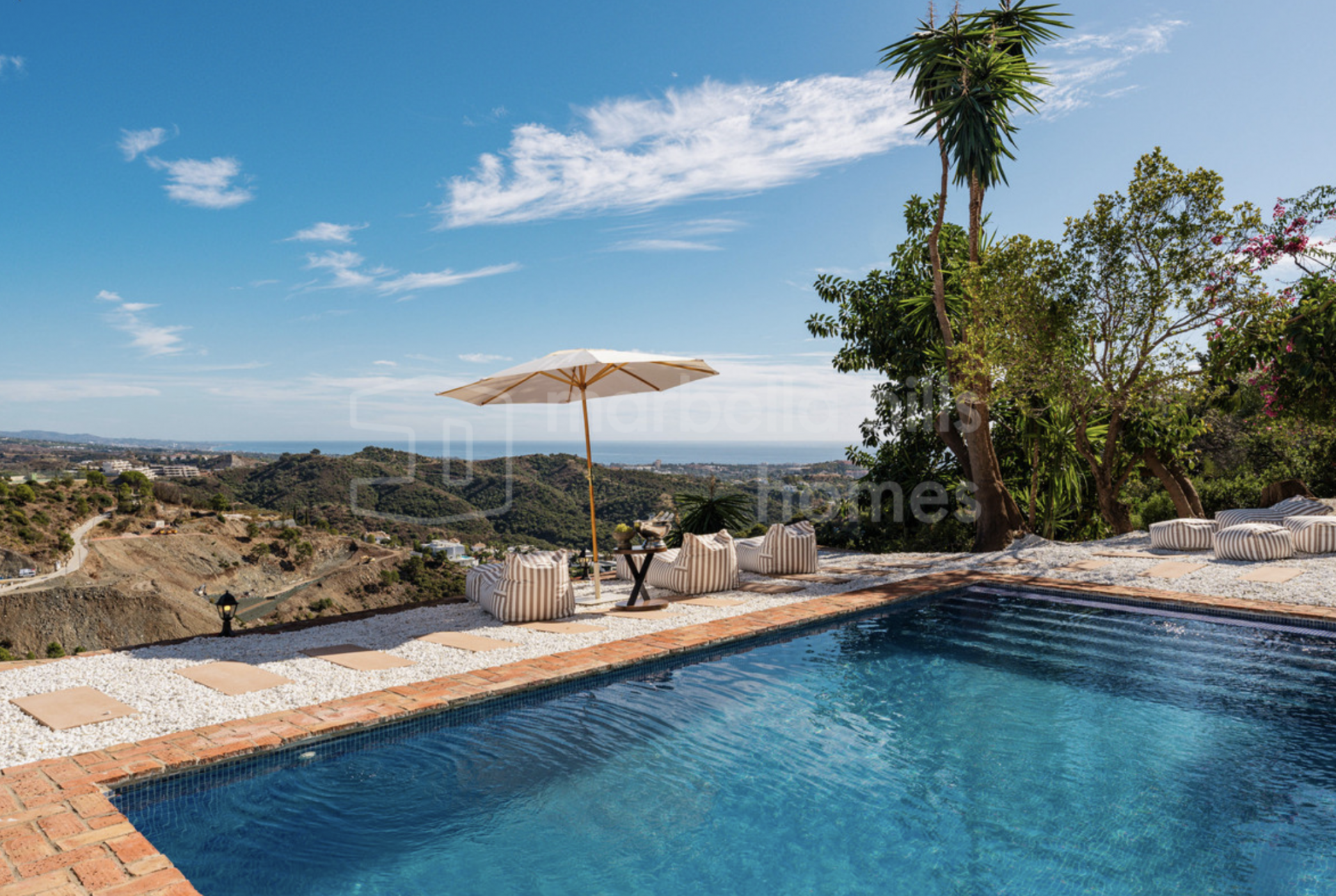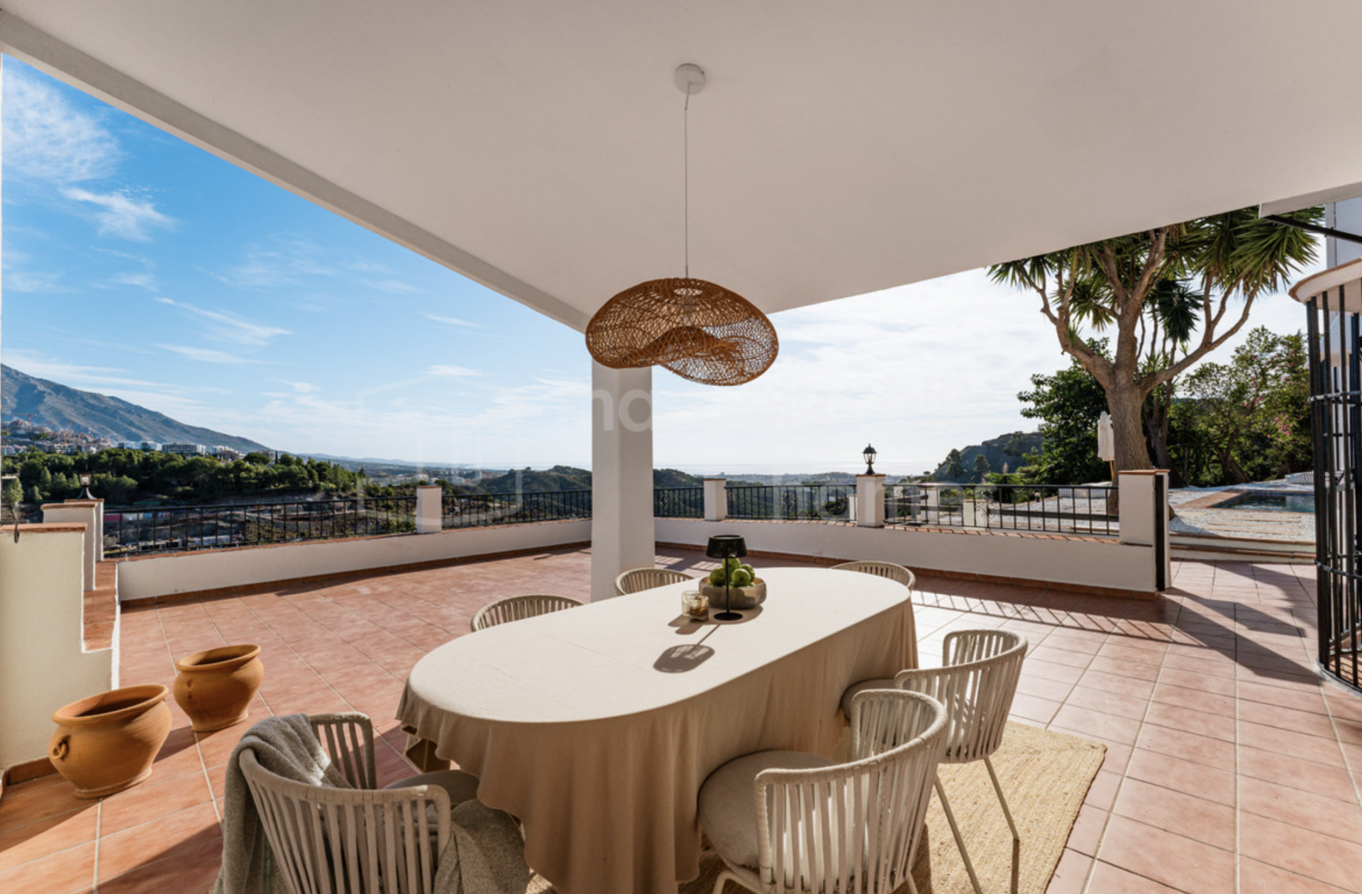 This exceptional 6-bedroom villa is located in the prestigious gated community of El Madroñal 2 in Benahavís, offering a refined blend of Andalusian charm, contemporary comfort and complete privacy. Set on an impressive elevated plot of 4,795 m², the property enjoys sweeping panoramic views of the Mediterranean Sea, surrounding mountains and lush natural landscape.