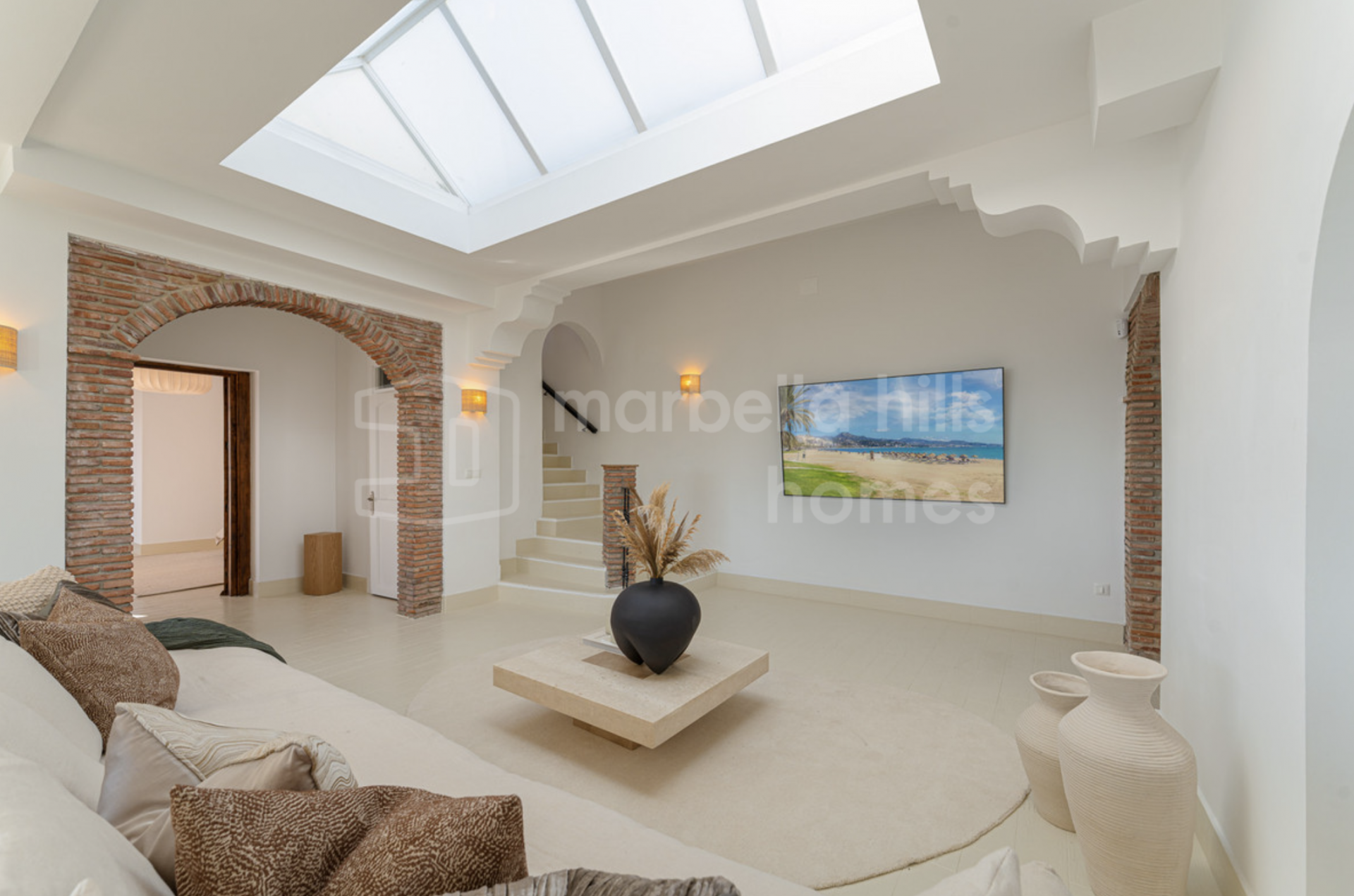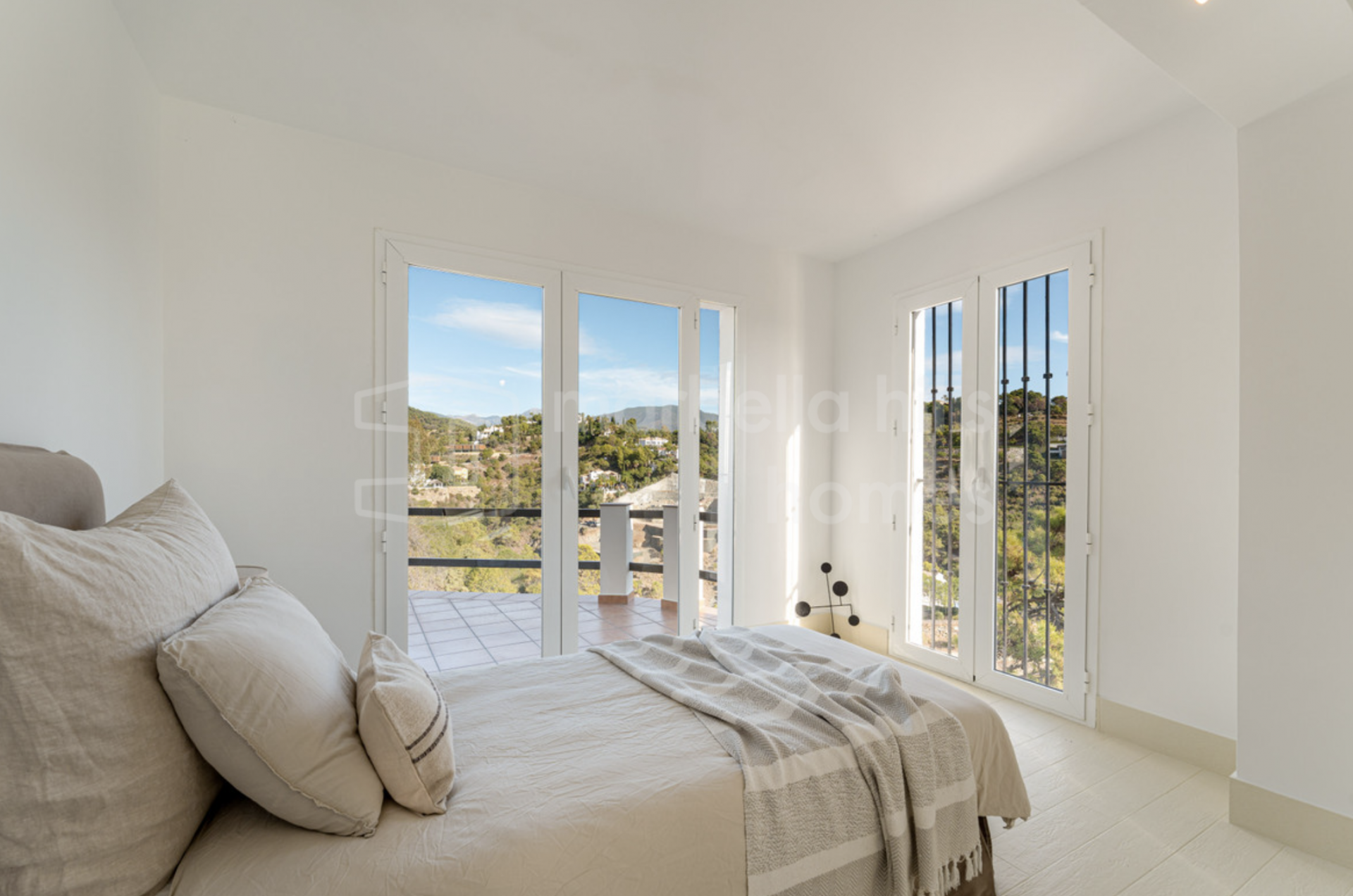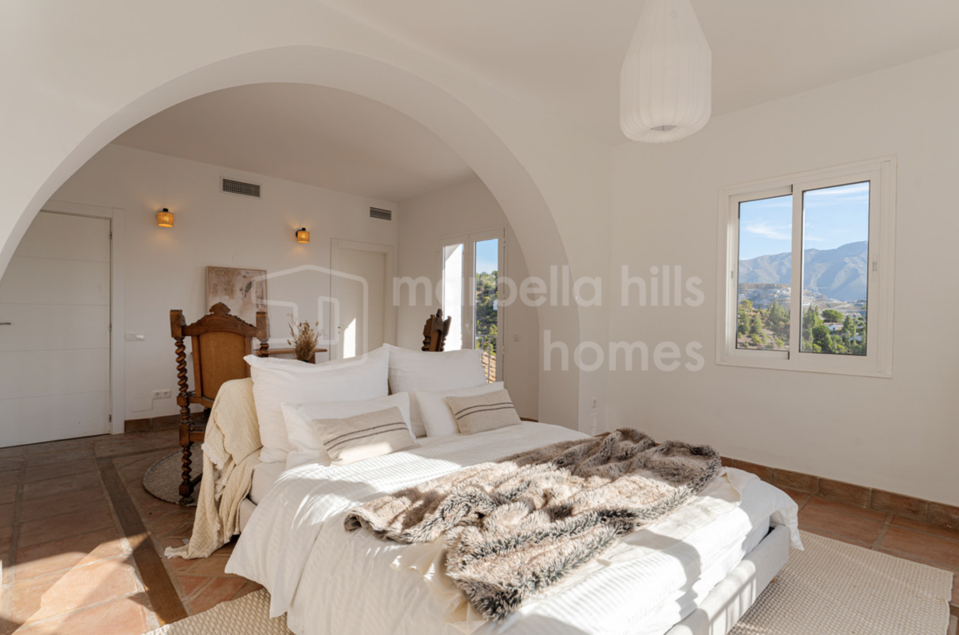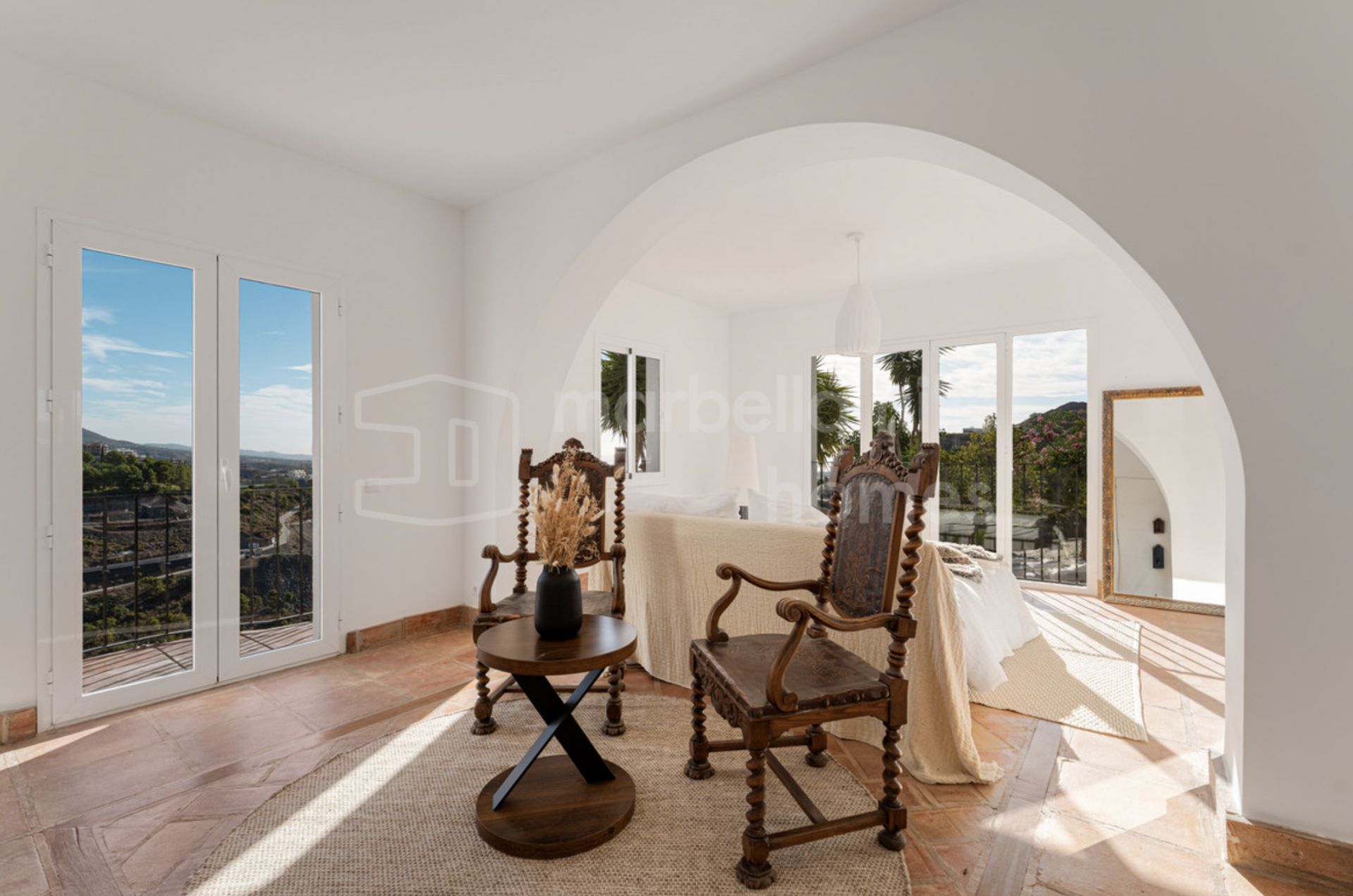 This exceptional 6-bedroom villa is located in the prestigious gated community of El Madroñal 2 in Benahavís, offering a refined blend of Andalusian charm, contemporary comfort and complete privacy. Set on an impressive elevated plot of 4,795 m², the property enjoys sweeping panoramic views of the Mediterranean Sea, surrounding mountains and lush natural landscape.
