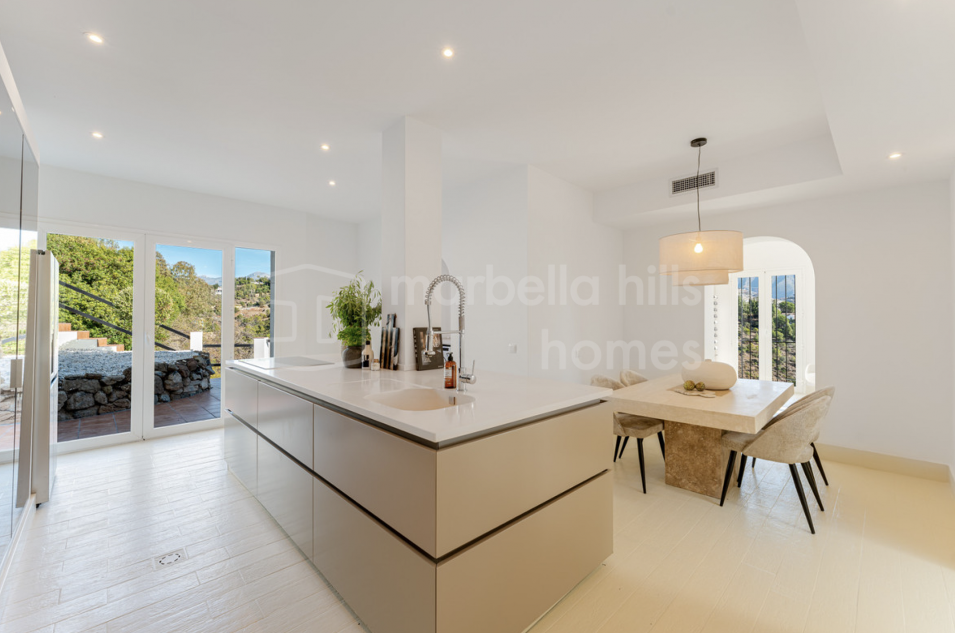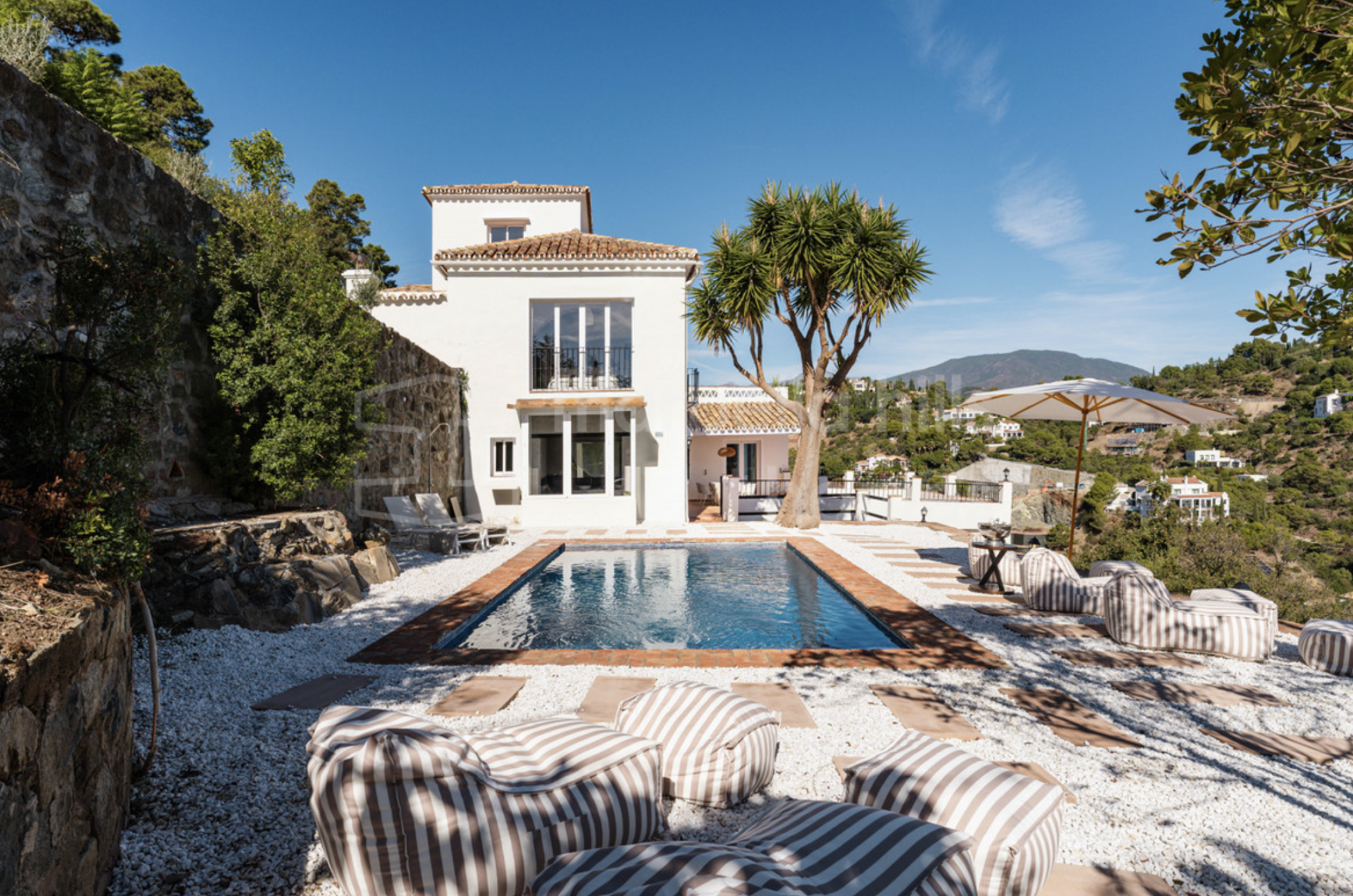 Surrounded by olive trees, pine-covered hills and serene valleys, El Madroñal offers a unique sense of exclusivity and tranquillity with 24-hour security. The outdoor areas of the villa feature multiple terraces on every level, each offering different vantage points to enjoy the stunning natural surroundings. The private swimming pool, landscaped gardens and generous outdoor lounge areas create an exceptional environment for relaxation and entertaining.