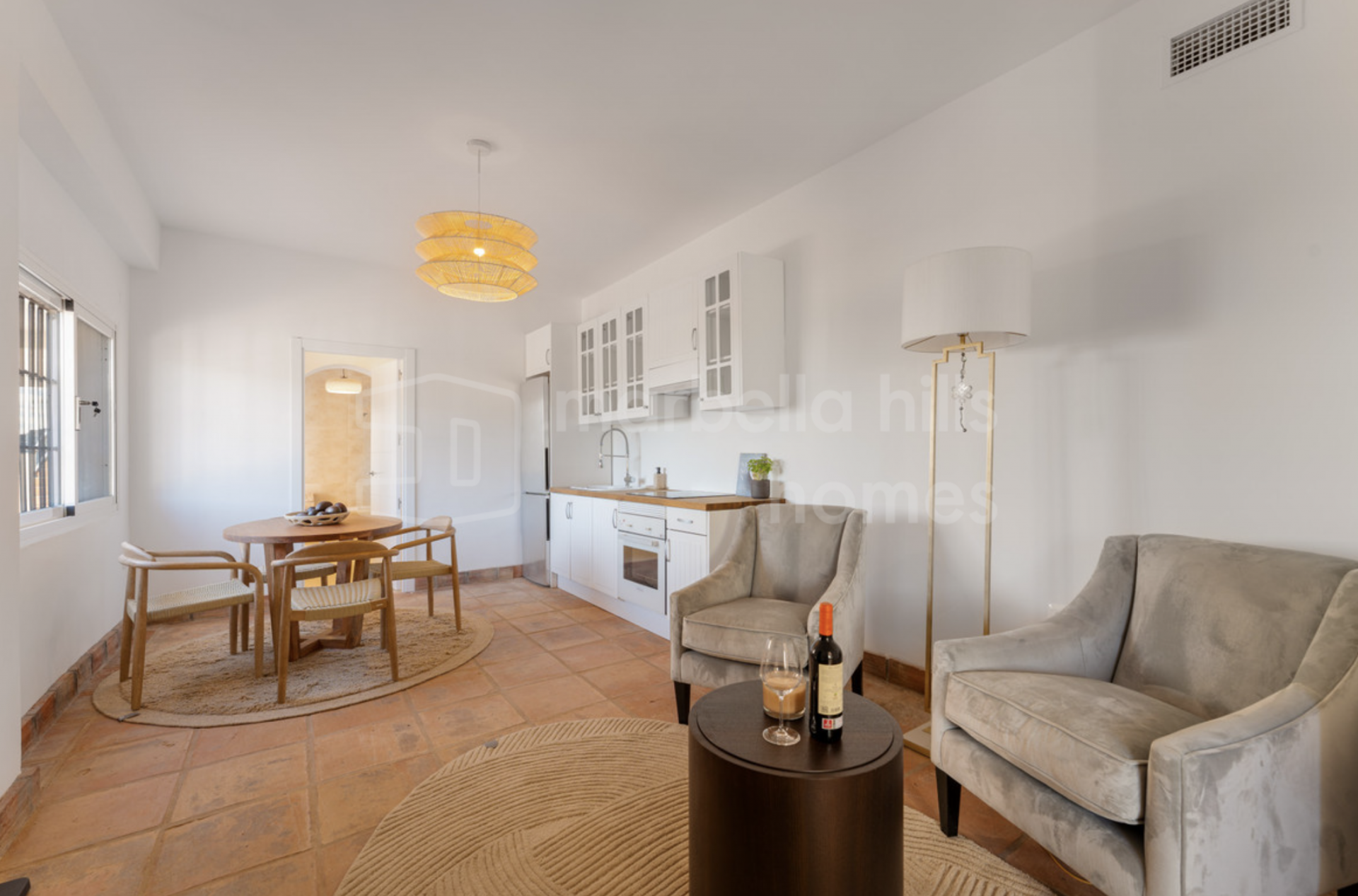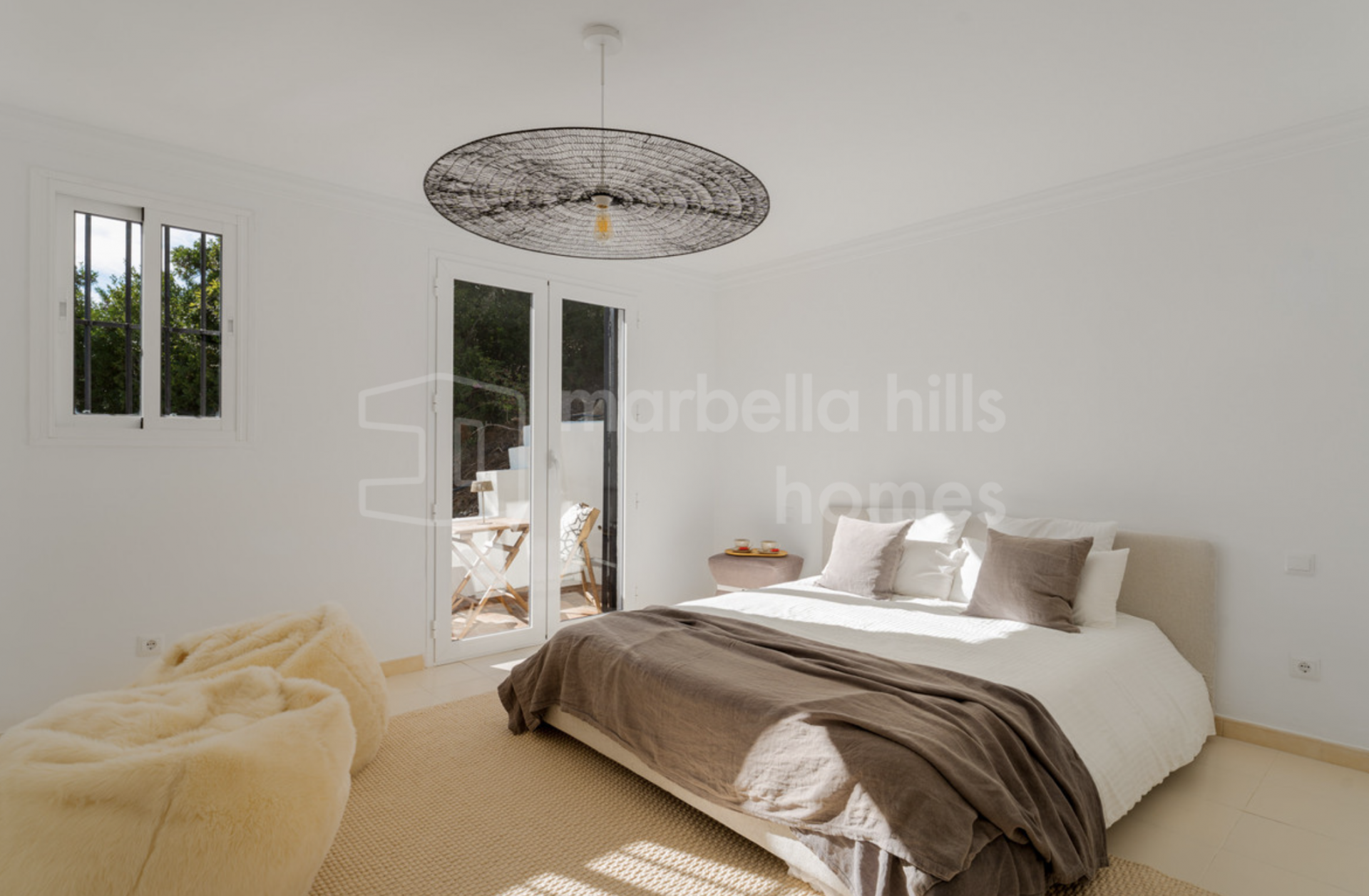 Additional features include a garage for one car, a covered carport for two vehicles and ample exterior parking. The villa is sold fully furnished in a stylish boho-chic design, offering a turnkey move-in experience.