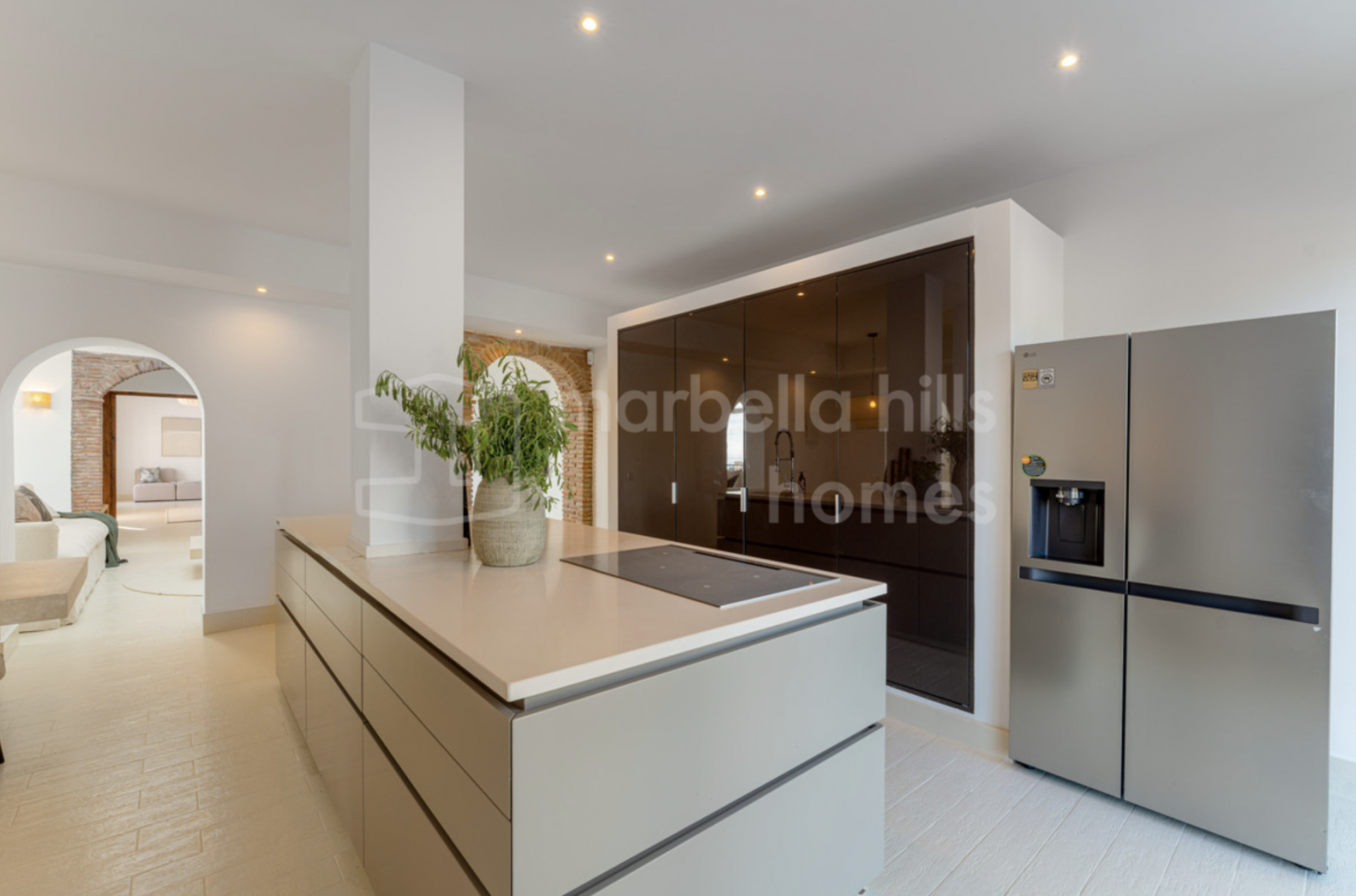Elegant contemporary villa for sale in Los Arqueros, Benahavís, offering 4 bedrooms, private pool, landscaped garden, open-plan interiors and close proximity to golf and Marbella.