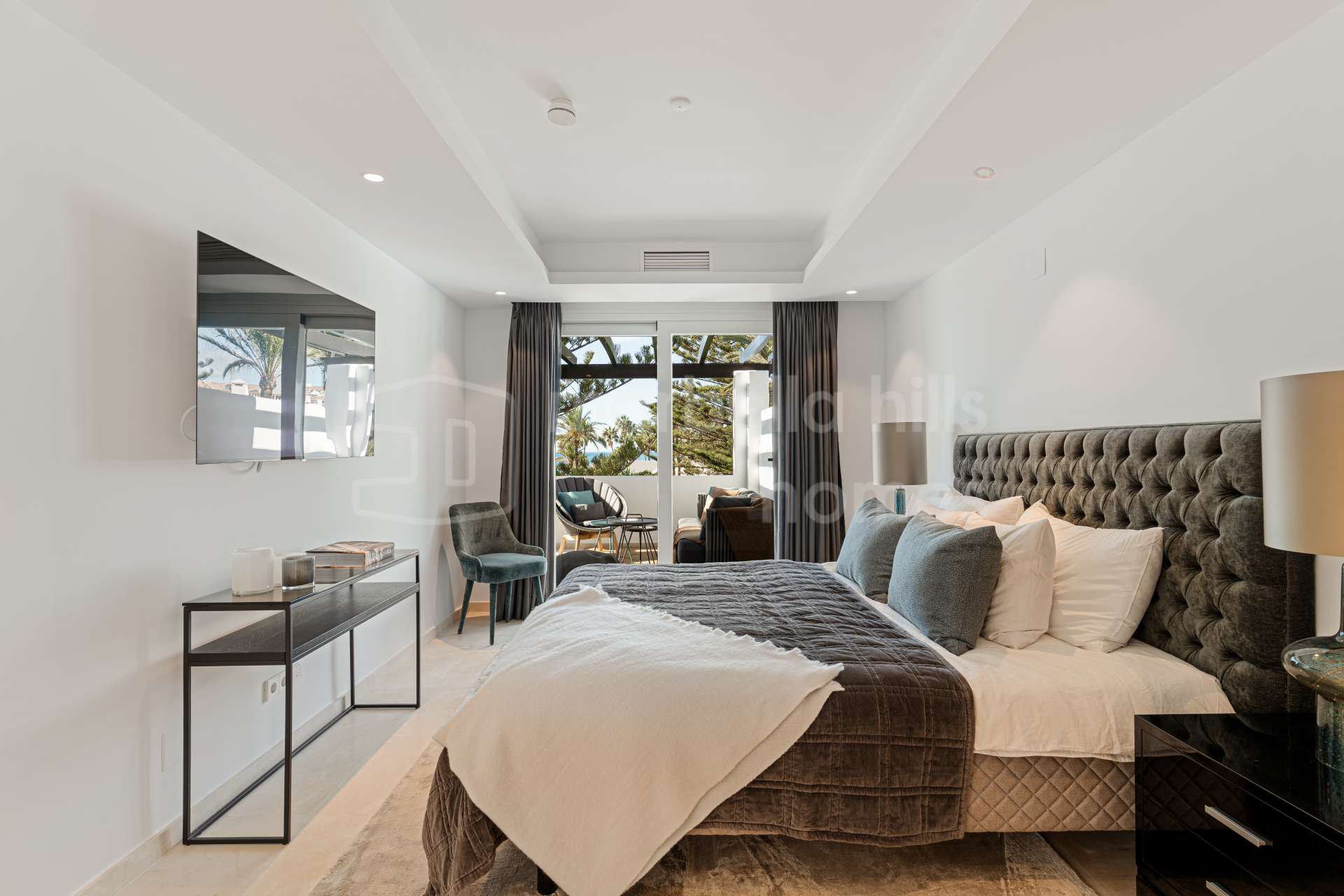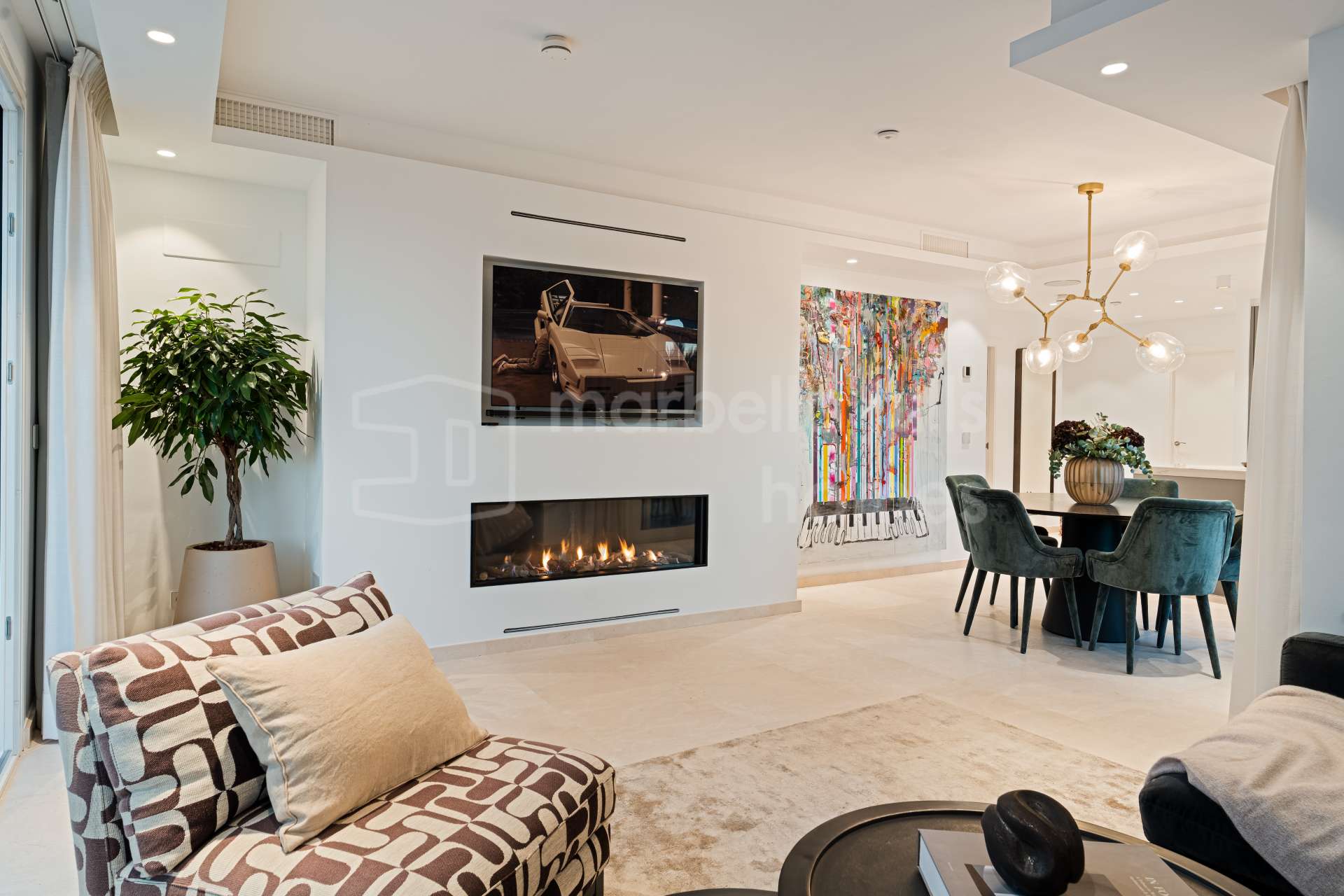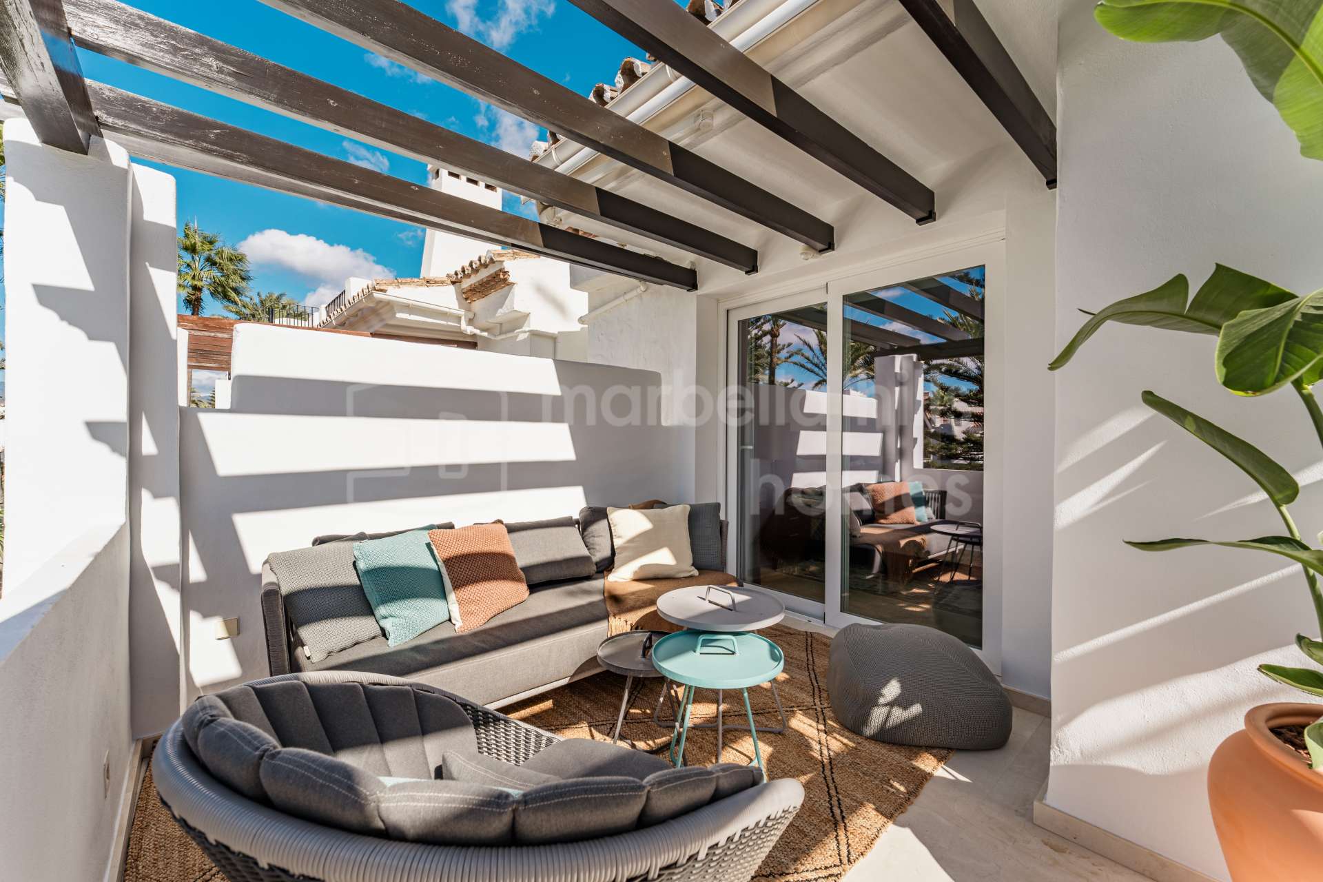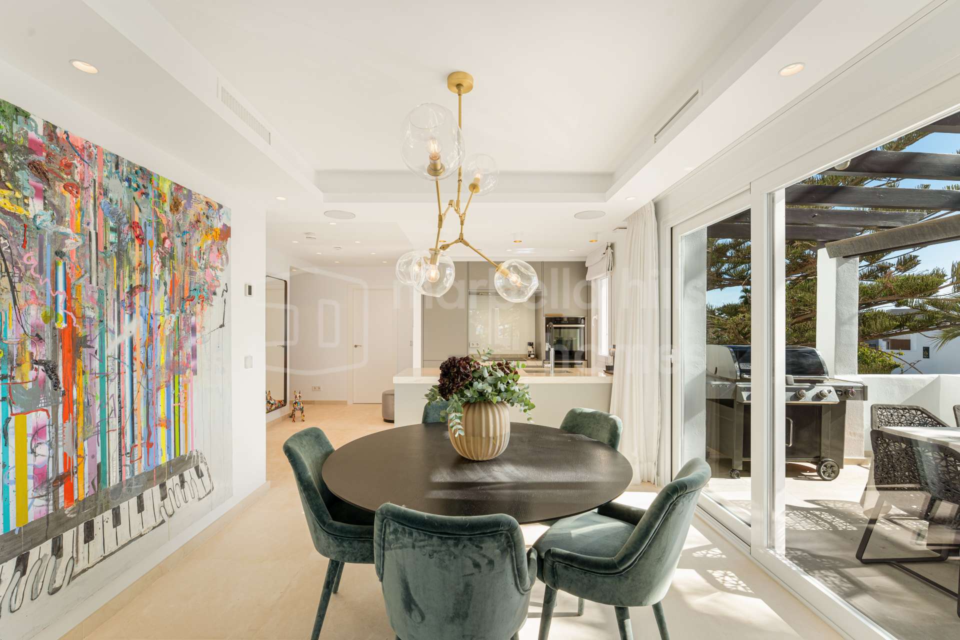 This elegant three-bedroom duplex penthouse is located in the exclusive Castiglione community in San Pedro de Alcántara, just steps from the beach promenade. Completely renovated in 2019, the property combines contemporary Scandinavian design with the solid construction quality of its original 1985 structure, creating a stylish and comfortable coastal home.