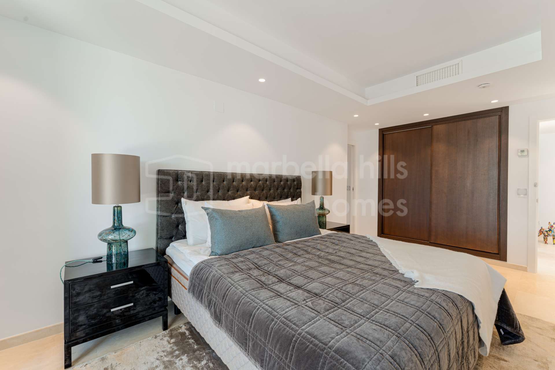Positioned along Avenida de las Petunias, one of San Pedro’s most desirable beachfront locations, the penthouse is only 25 meters from the sea. The area is known for its wide sandy beaches, relaxed promenade, and a selection of beachside restaurants including Macaao Beach Club, Nuevo Reino, and El Ancla. Everyday amenities such as supermarkets, cafés, and fitness centers—including NAC gym, i/O club, and the Nueva Alcántara paddle club—are all nearby. Several top international schools, including Laude and Calpe School, are also within easy reach.