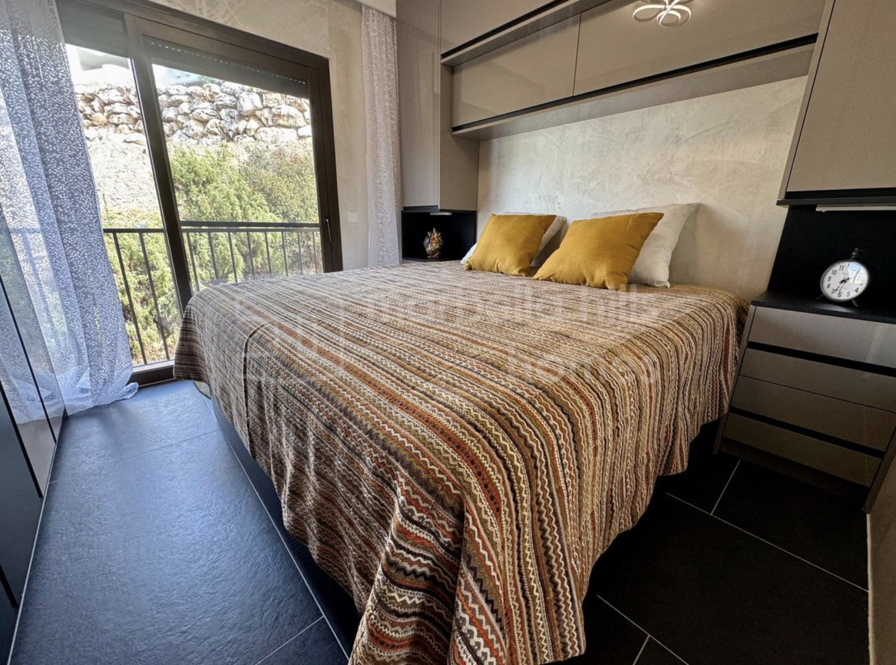 The living area opens directly onto a generous 40 m² corner terrace, one of the standout features of the property. Perfectly oriented to enjoy outdoor living throughout the year, this terrace offers open panoramic views over the surrounding landscape and the Mediterranean Sea, making it ideal for dining, relaxing, and entertaining.