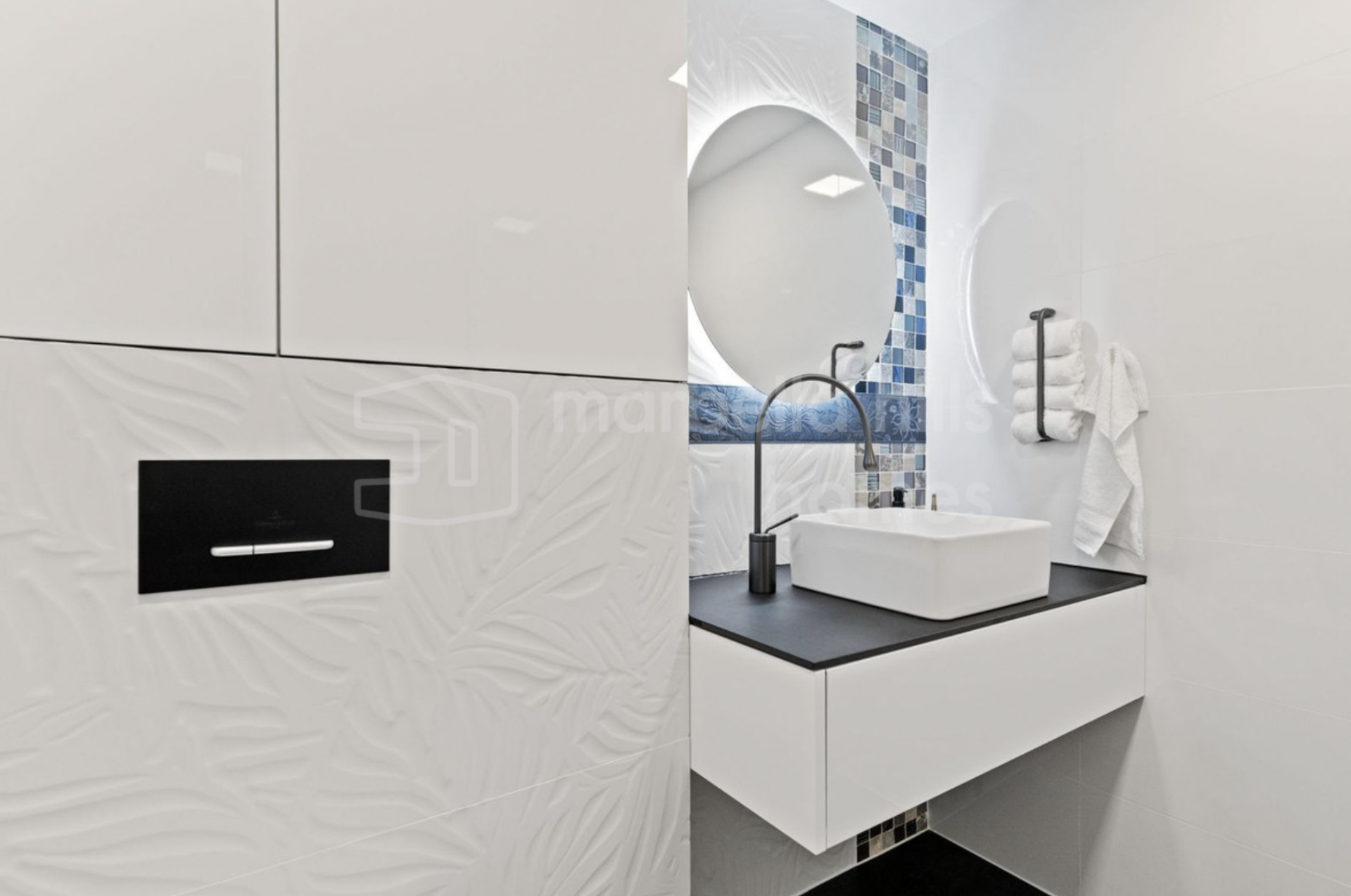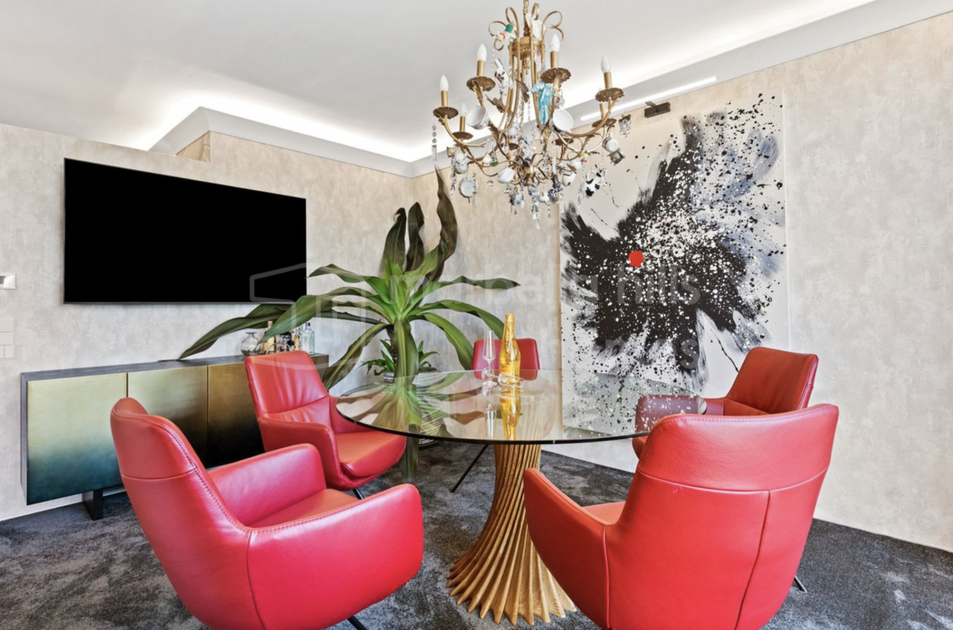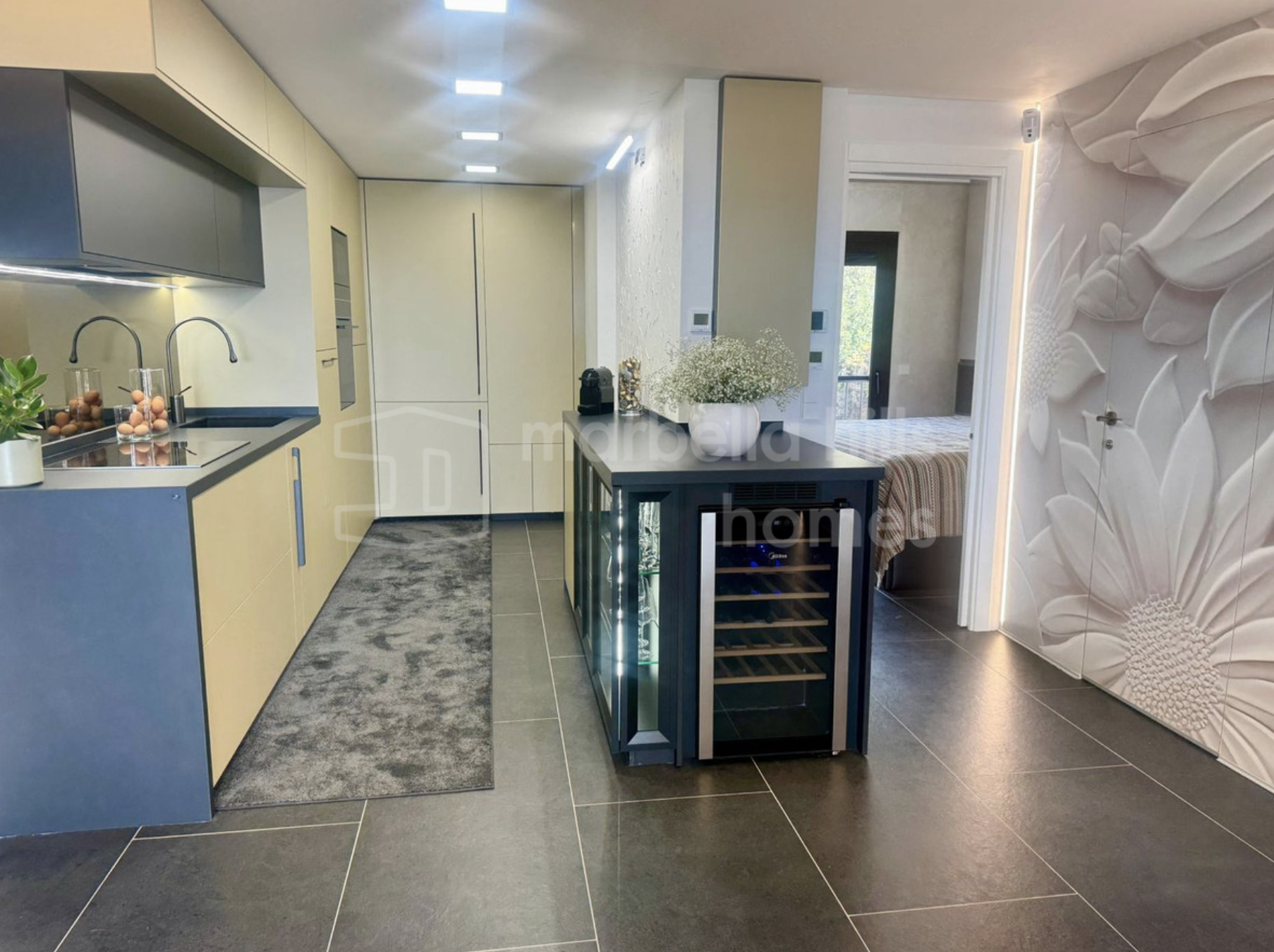The interior has been completely refurbished using premium materials and modern design solutions. The custom-made kitchen, crafted by a local carpenter, integrates seamlessly into the living space with bespoke cabinetry and integrated furniture that enhances both aesthetics and practicality. All electrical and plumbing installations are brand new, and the apartment is equipped with underfloor heating with individual room control, Airzone air conditioning by zones, and an efficient aerothermal system, ensuring year-round comfort.