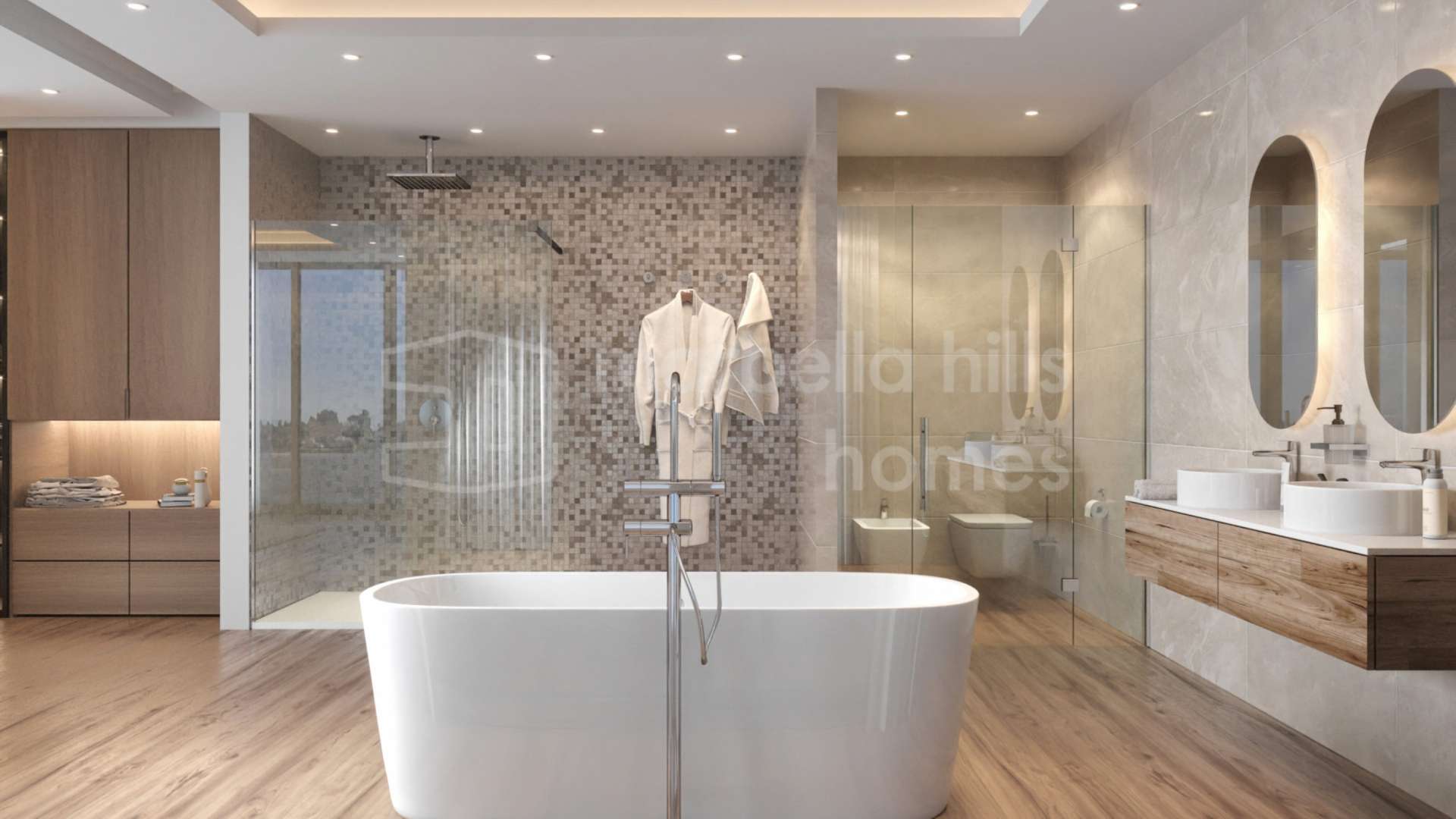 Outdoor areas are a key highlight, with expansive terraces, chill-out spaces, a private swimming pool, and landscaped gardens designed for year-round enjoyment of the Costa del Sol climate. The project also includes underfloor heating, air conditioning with individual room control, home automation pre-installation, and premium-quality materials throughout.