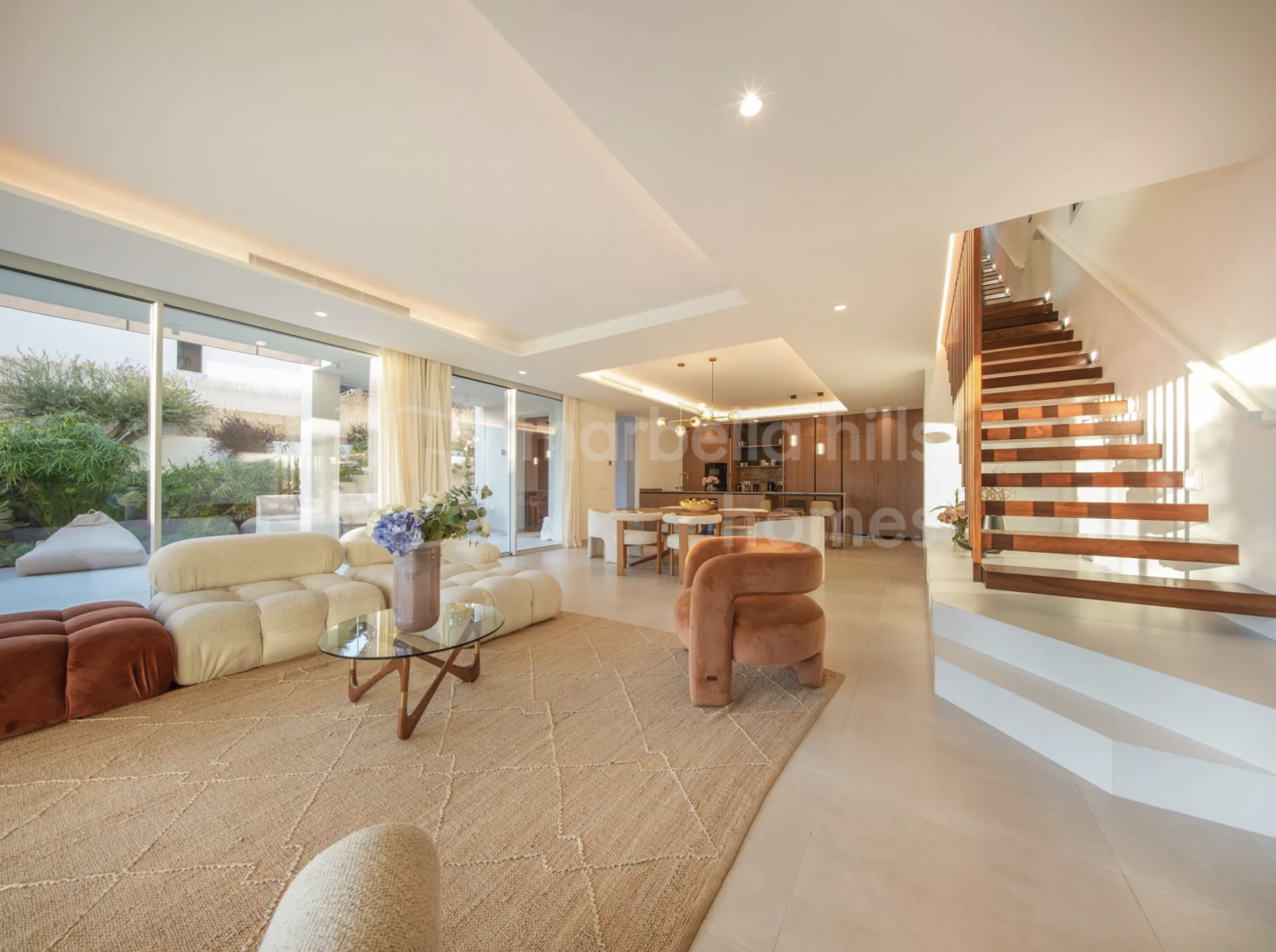This luxury modern villa for sale in Elviria, Marbella is a perfect example of refined Mediterranean living — combining elegant architecture, cutting-edge technology, and an unbeatable location within walking distance to the beach.