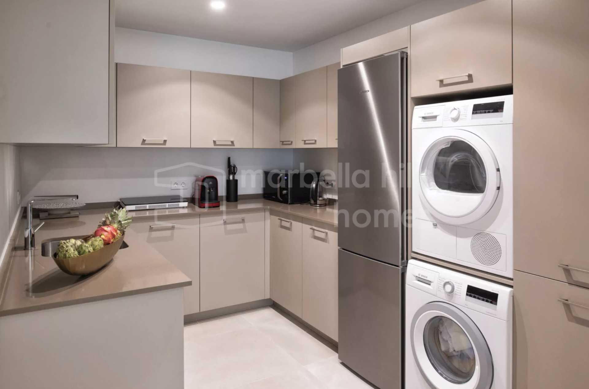 A beautifully landscaped garden surrounds the heated swimming pool, while multiple terraces, a rooftop solarium, and a fully equipped outdoor kitchen create the perfect setting for entertaining, relaxing, and enjoying Marbella’s exceptional climate.