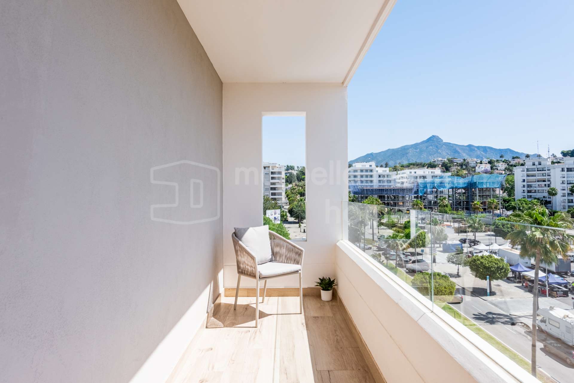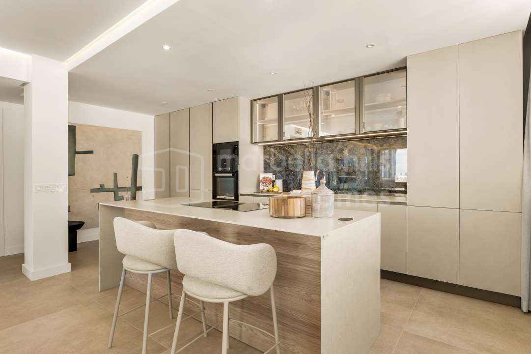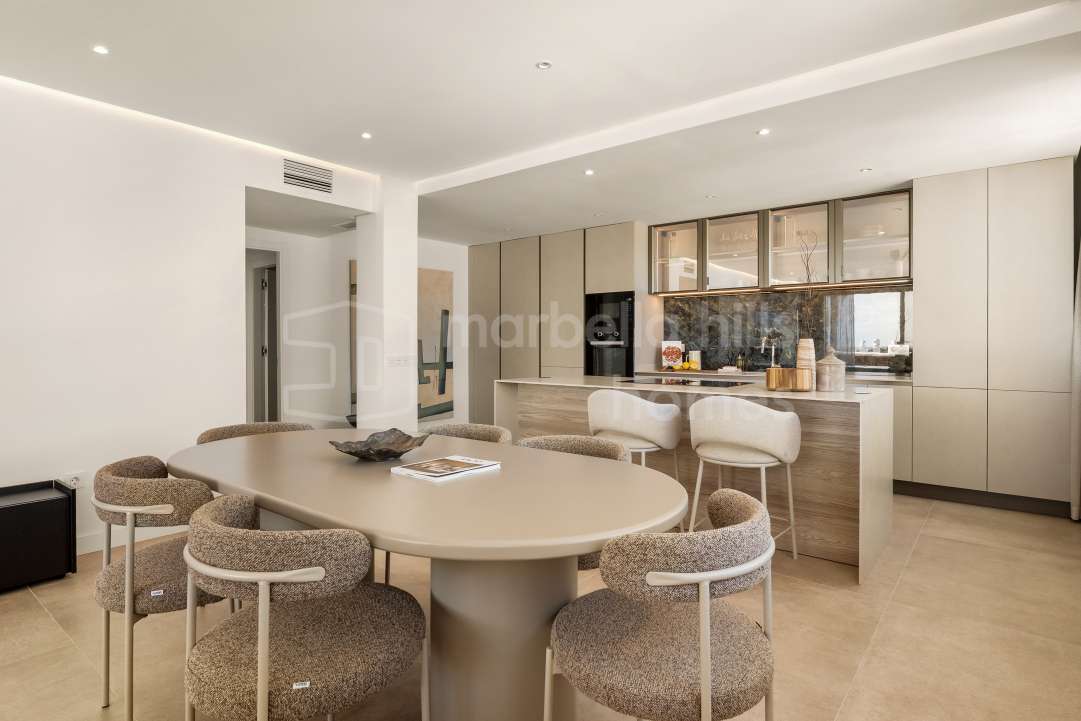 Fully renovated luxury apartment for sale in Nueva Andalucía, Marbella, featuring 2 bedrooms, panoramic La Concha views, spacious terrace, and prime location near Puerto Banús....