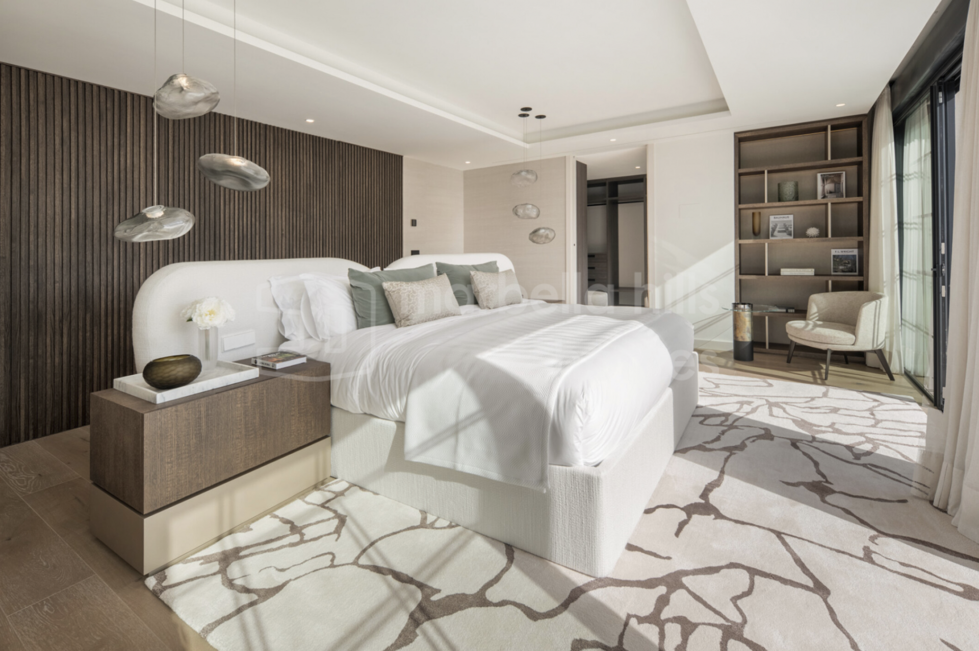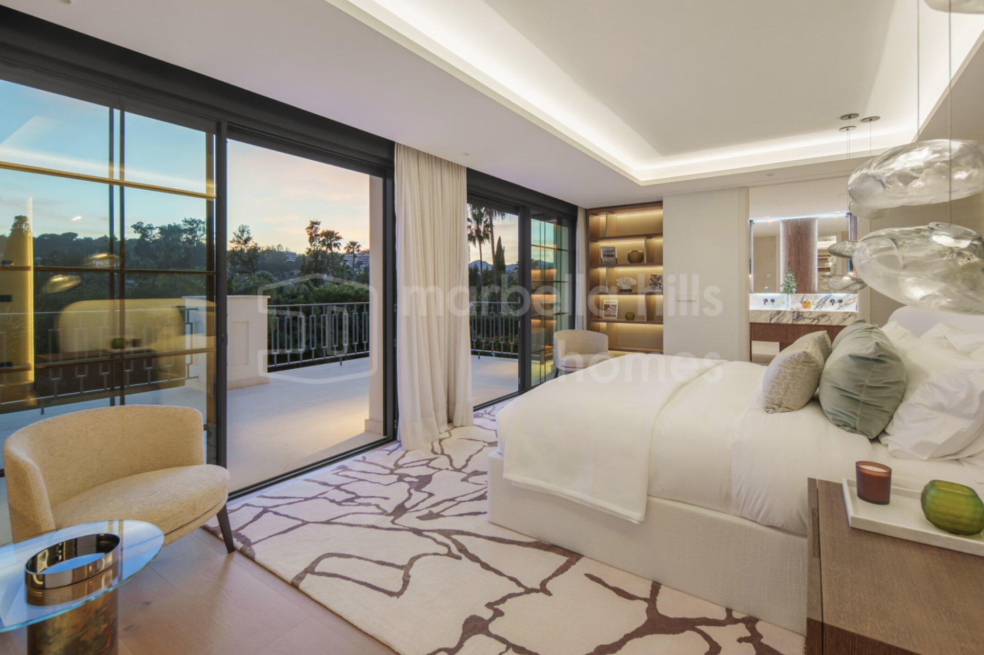 Six en-suite bedrooms are positioned with intent. No compromises, no secondary spaces. The principal suite stands apart, with its own private terrace, walk-in wardrobe, and a bathroom that aligns more with a luxury hotel than a private residence.
