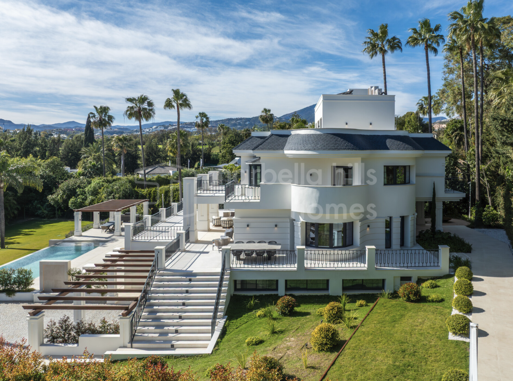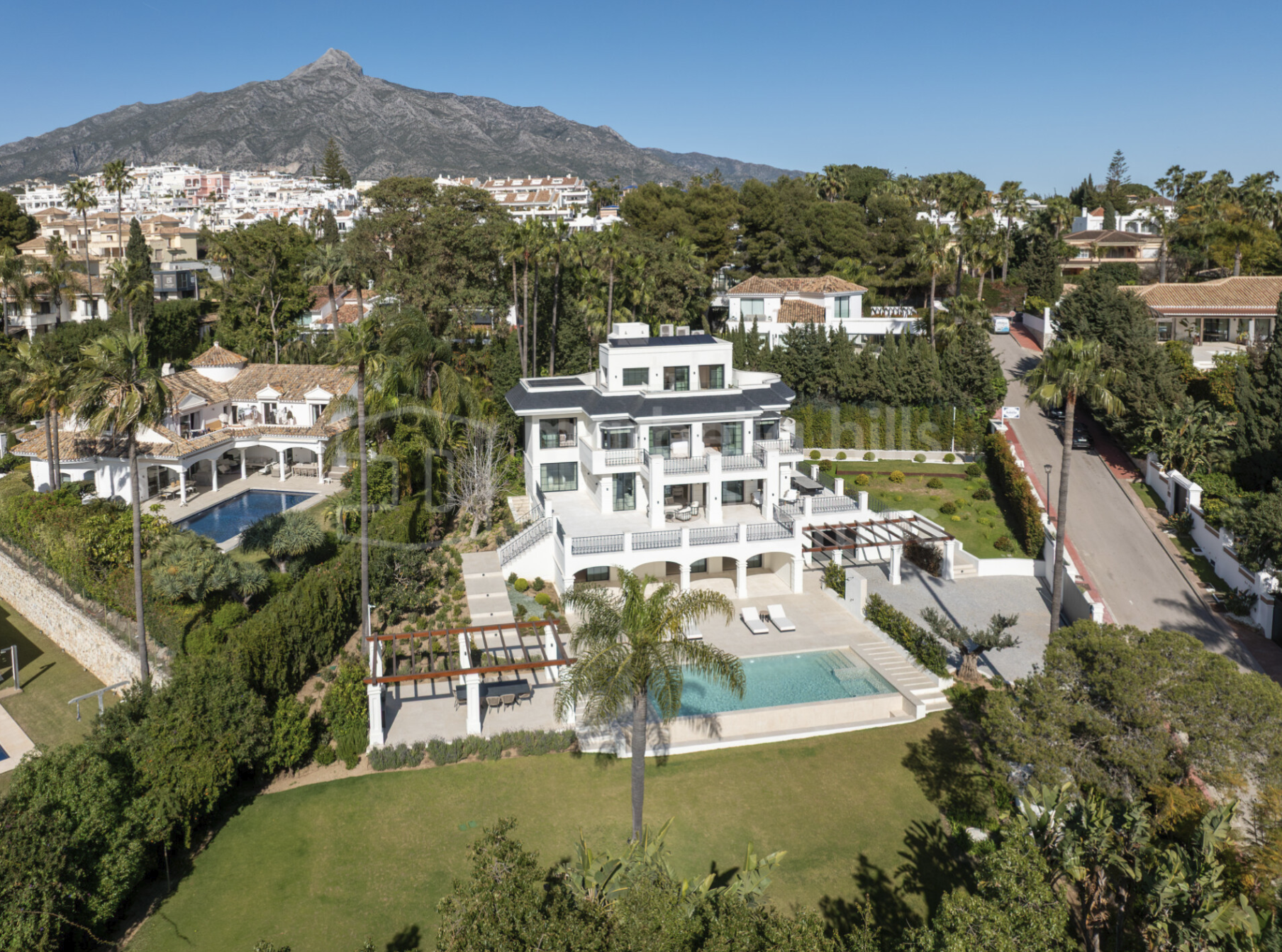 Luxury villa for sale in Las Brisas Nueva Andalucía Marbella Golf Valley with sea and La Concha views, heated pool, spa, cinema room and prime location near Puerto Banús.