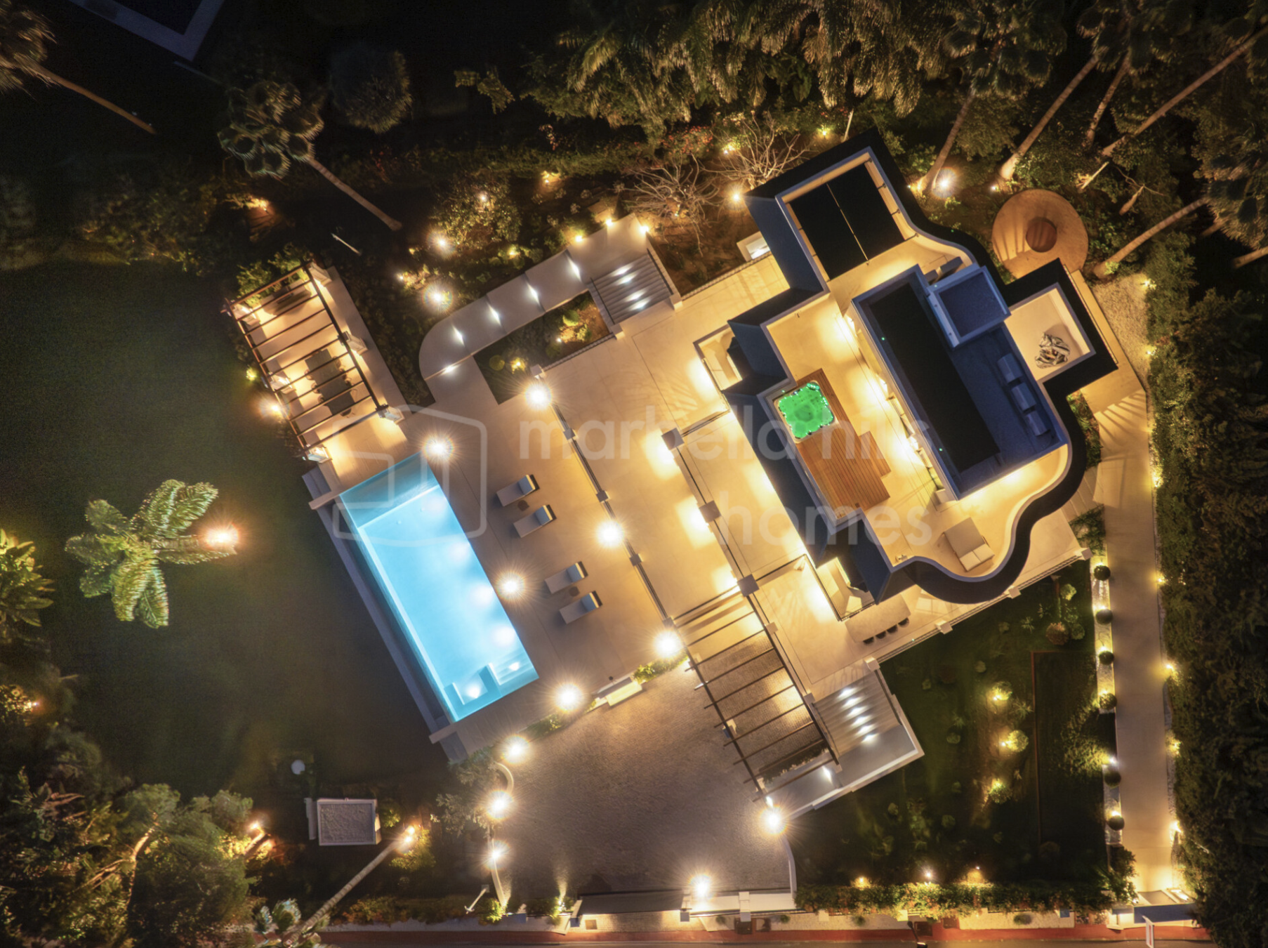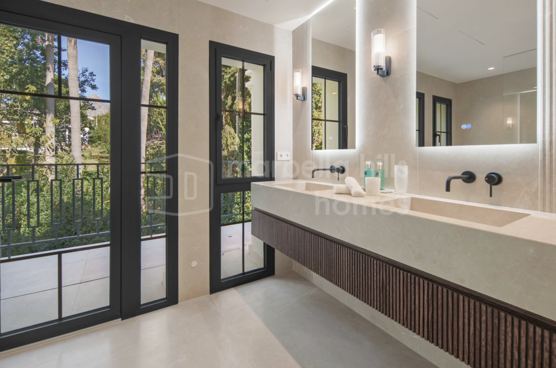 Technology and comfort are integrated without noise. A private lift connects all levels. Underfloor heating runs throughout. Smart home systems manage lighting, climate, and security. The A+ energy rating ensures efficiency without compromise—an increasingly important factor in premium Marbella real estate.