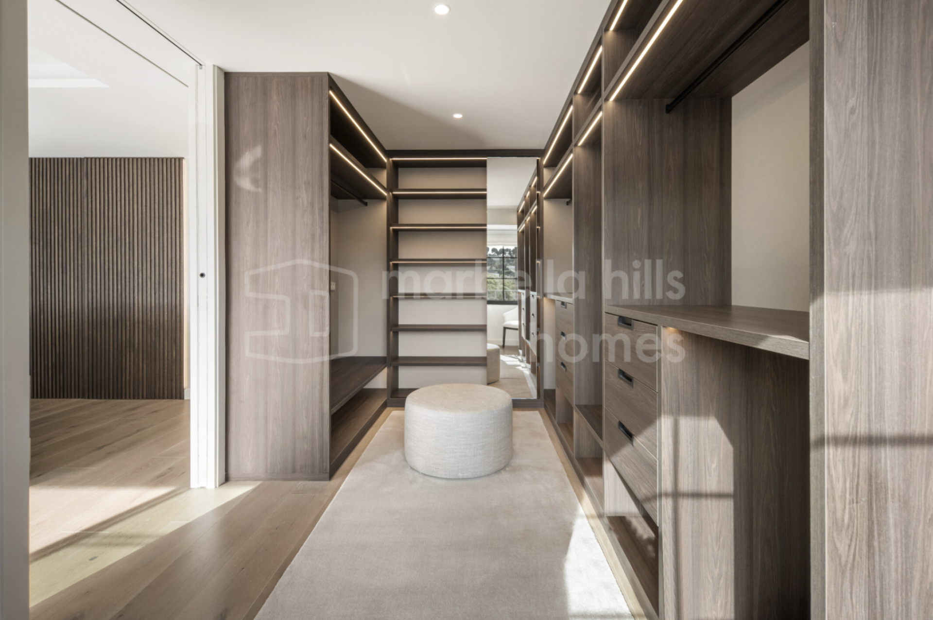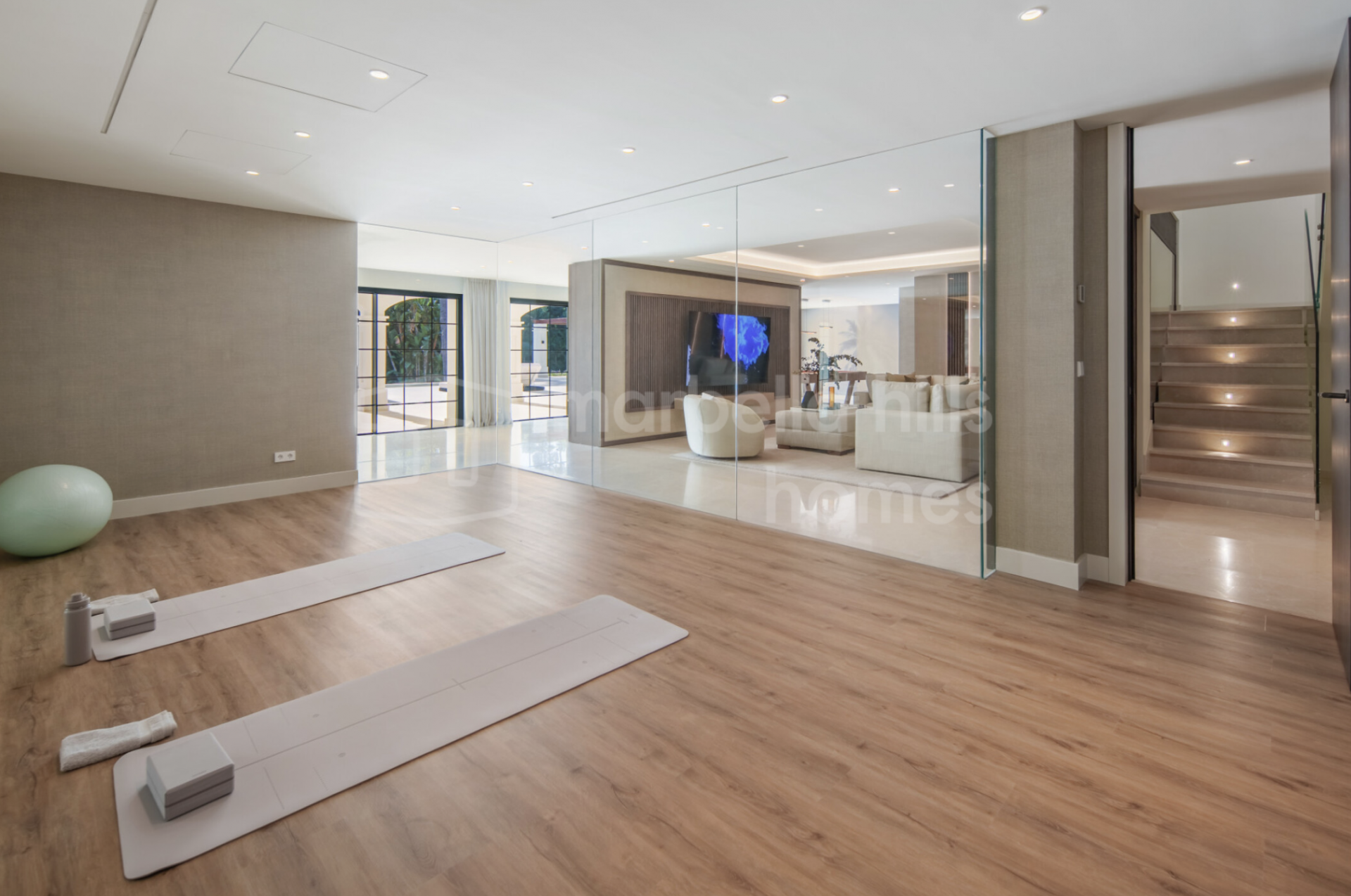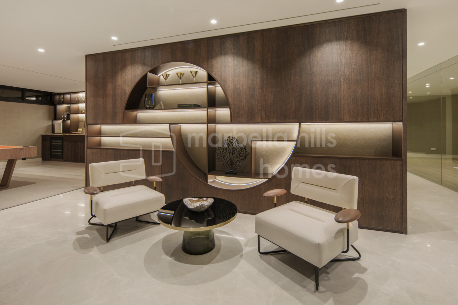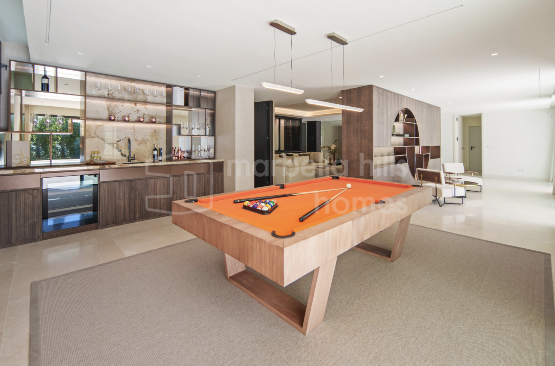 The lower level redefines daily living. A private spa with sauna and hammam, a fully equipped gym, and a games room complete with bar and wine display—everything designed to keep life contained, comfortable, and self-sufficient. This is what a true luxury villa in Nueva Andalucía should offer: not just space, but independence.