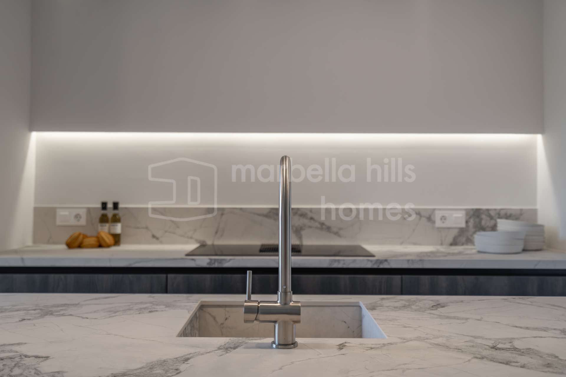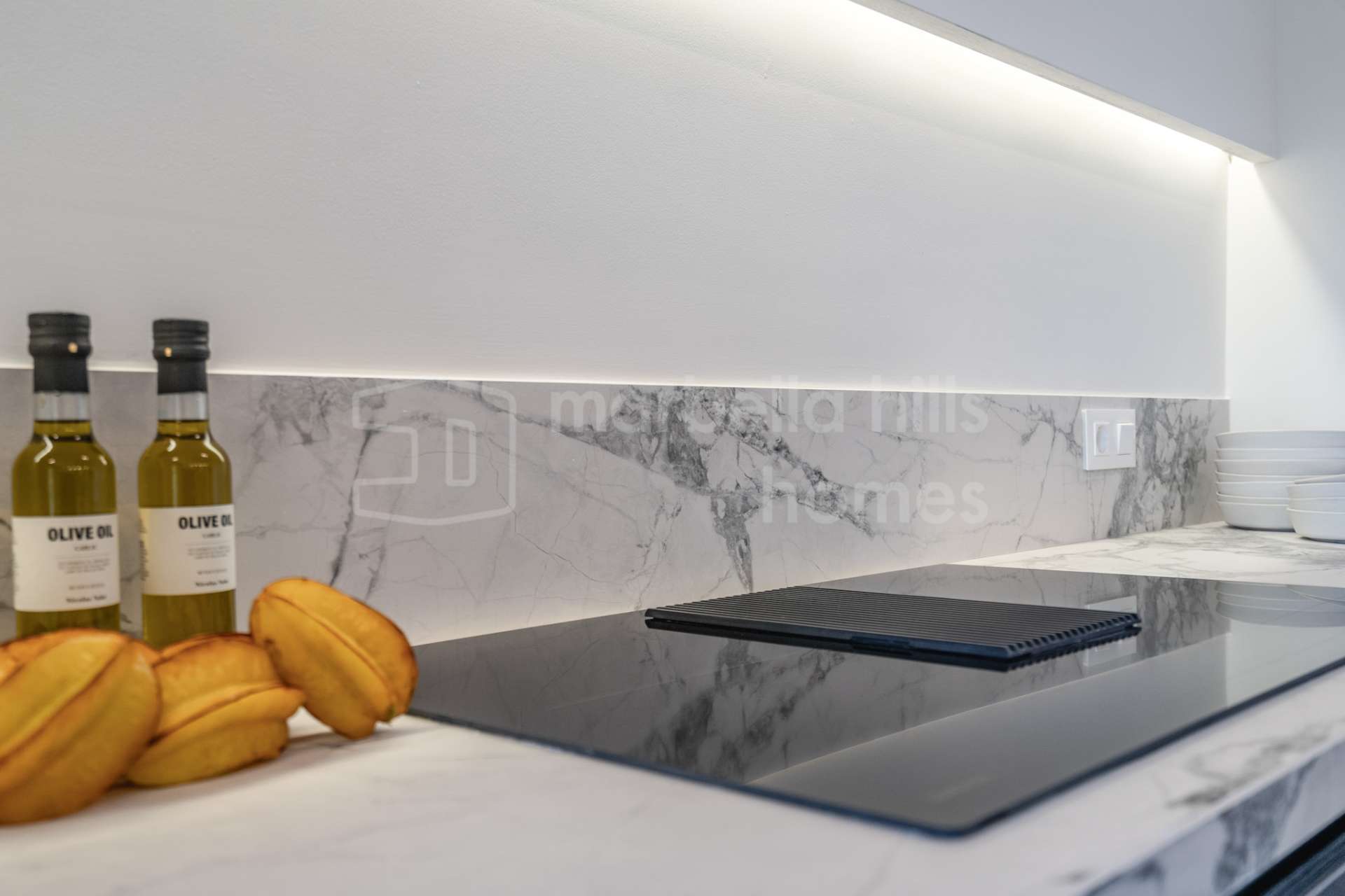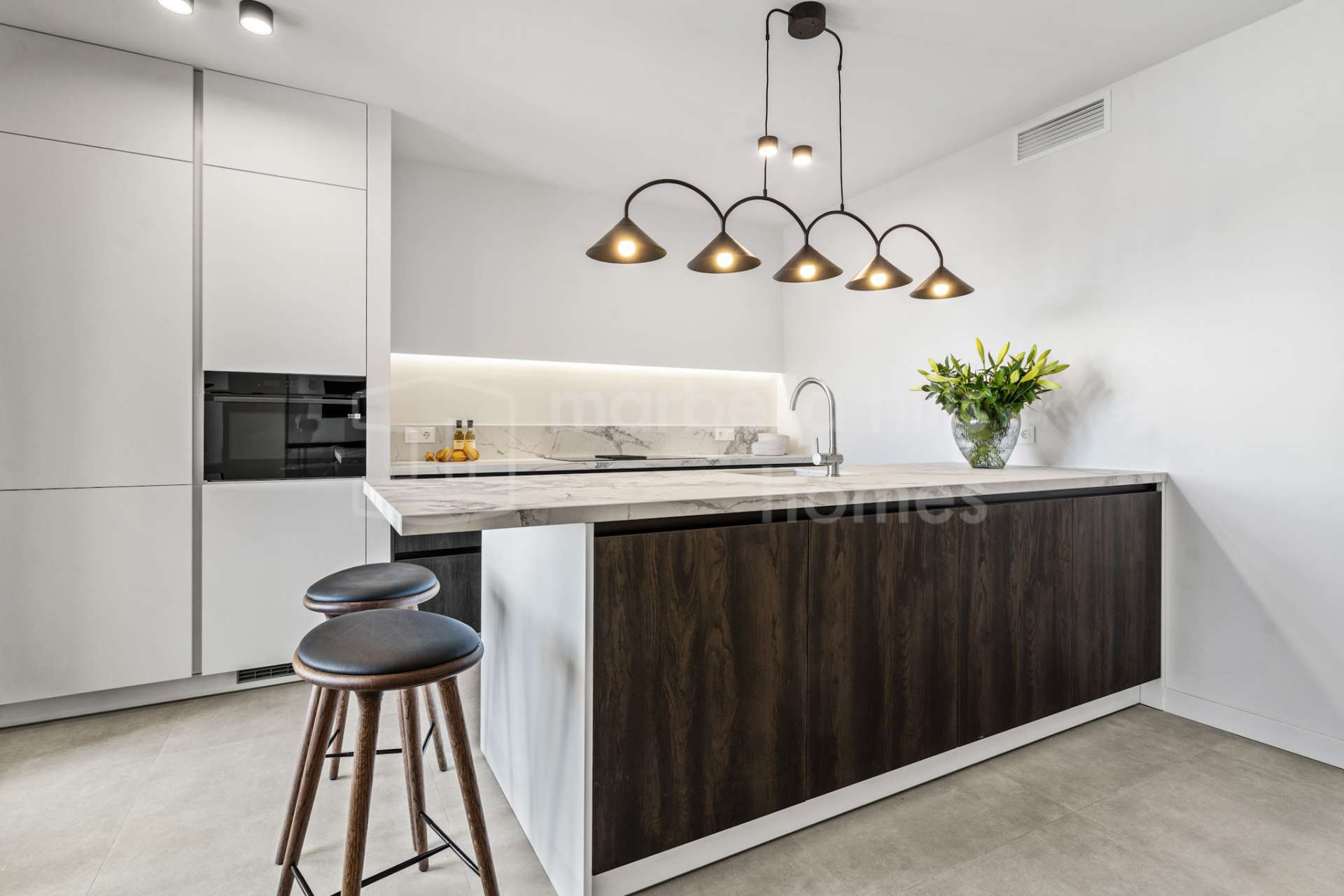 The kitchen is fully integrated into the living space and finished to a high standard, offering a functional layout with additional seating and premium materials. It is designed for modern living, combining style with practicality.