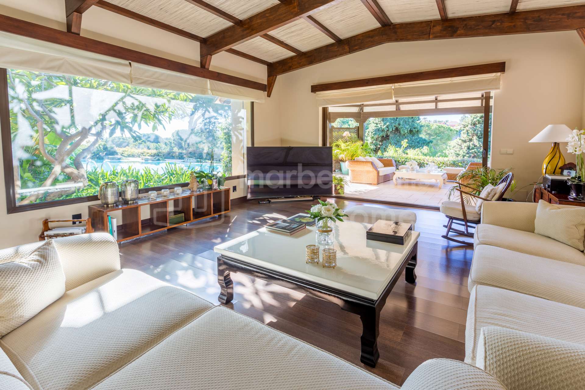 Vive el máximo lujo y confort en este exclusivo chalet ubicado en el corazón del prestigioso campo de golf Río Real, en Los Monteros. Situado en una urbanización privada y cerrada compuesta por tan solo siete viviendas de lujo, esta magnífica propiedad ofrece privacidad absoluta y espectaculares vistas panorámicas sobre los greens y el mar Mediterráneo.