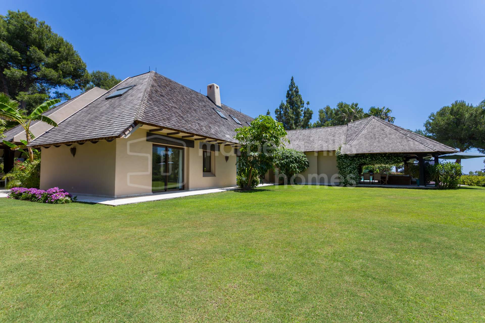 Ubicada en una amplia parcela de 1.710 m², rodeada de exuberantes jardines comunitarios, la villa cuenta con aproximadamente 1.200 m² de espacio habitable cuidadosamente diseñado para combinar elegancia, comodidad y versatilidad.