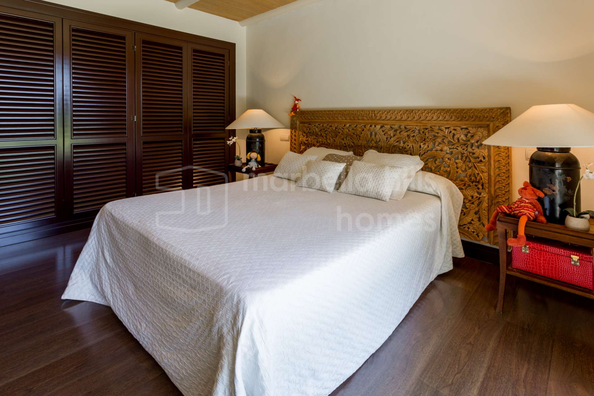 Construida con materiales de primera calidad y atención al detalle, la vivienda cuenta con suelo radiante, aire acondicionado independiente, agua caliente con calentador solar, suelos de mármol envejecido en terrazas y jardines, y tarima de madera noble en el interior. Entre los detalles de lujo destacan persianas motorizadas, cristales térmicos, puertas lacadas con pomos de diseño, y chimeneas acogedoras tanto en el salón como en la zona privada de la suite principal.