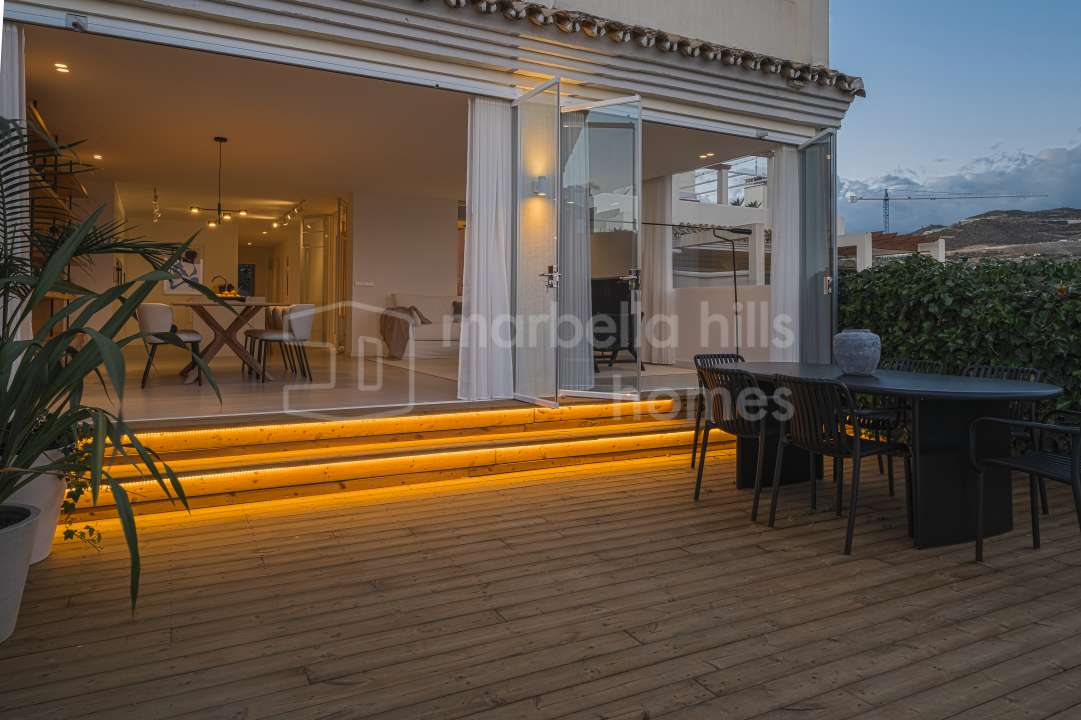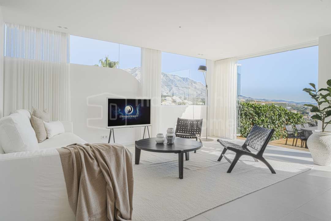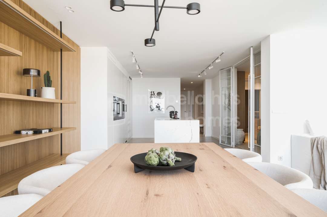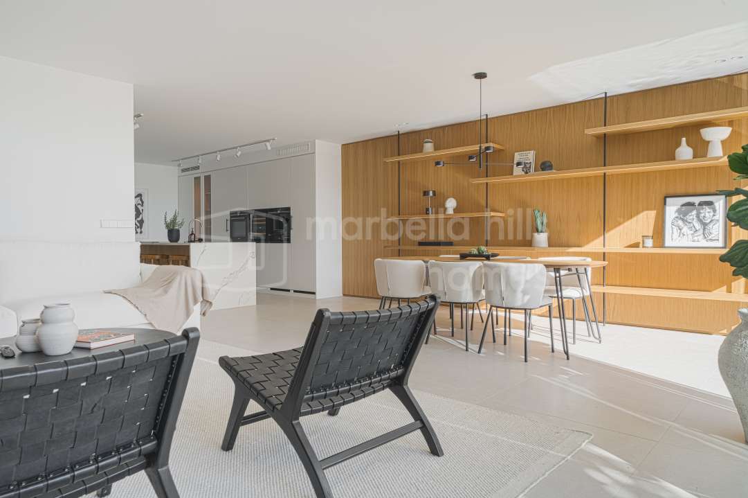Apartamento de lujo de 3 dormitorios en venta en La Cerquilla, Nueva Andalucía. Comunidad cerrada con vistas al mar, piscina privada, cocina exterior, garaje y acceso a gimnasio...