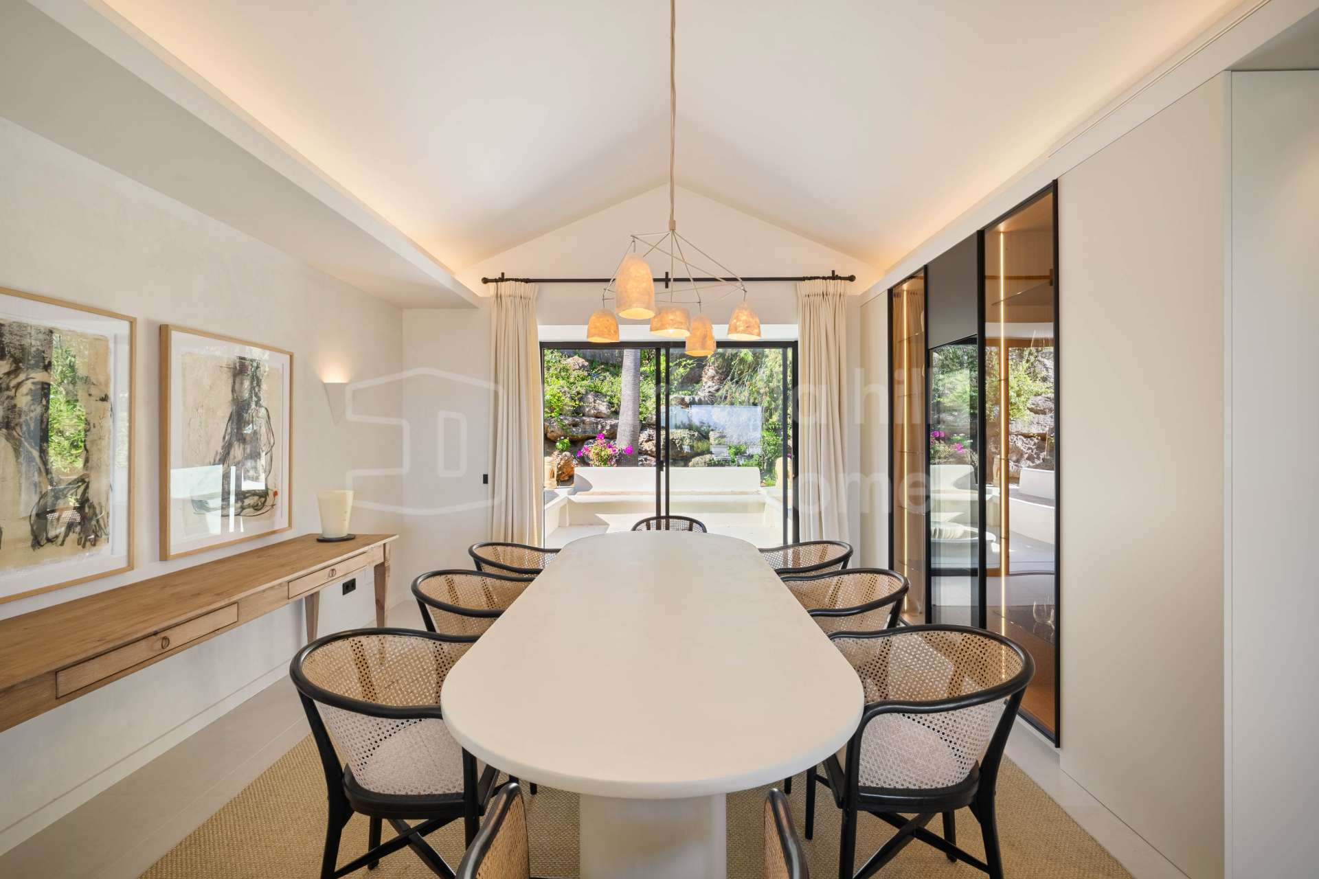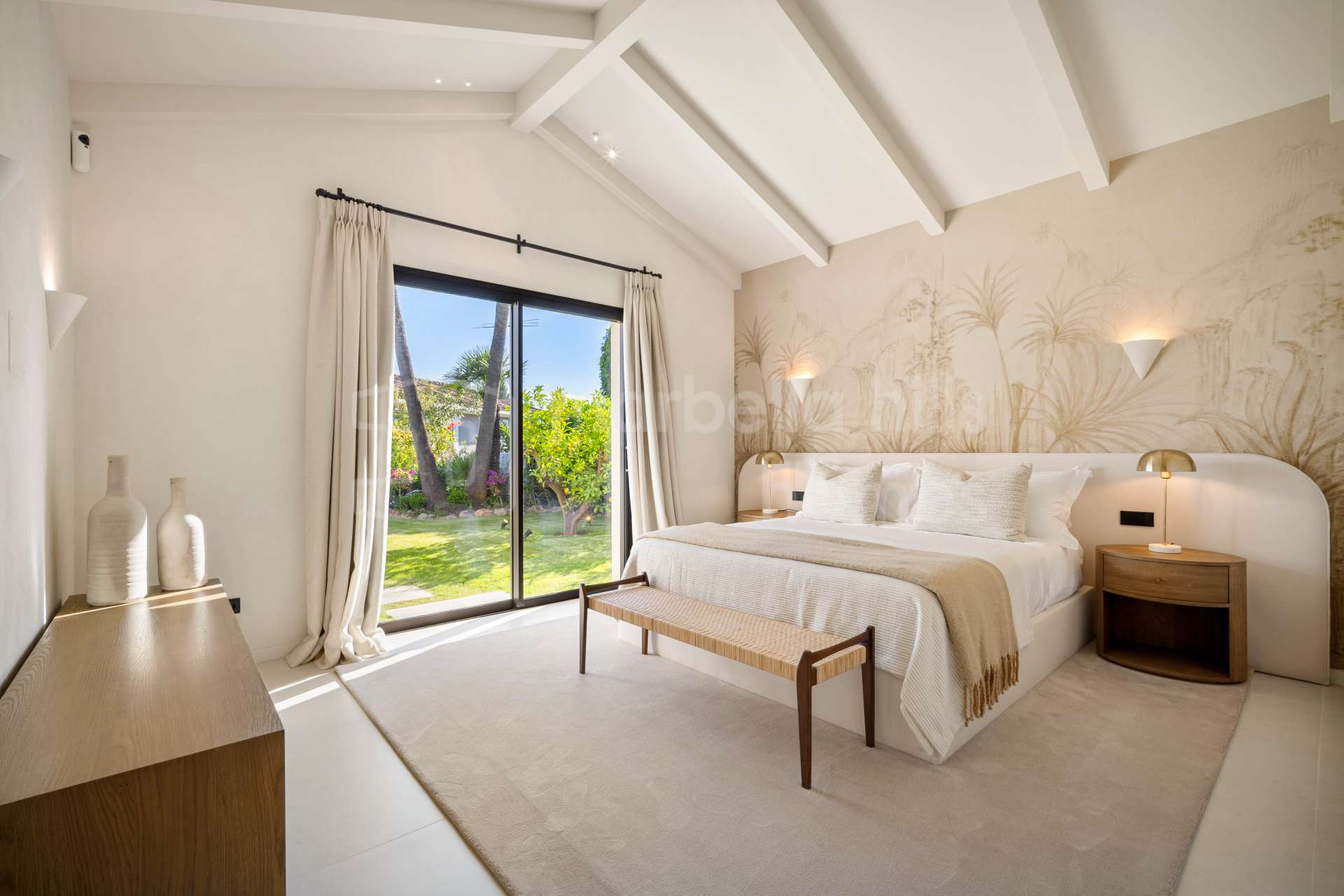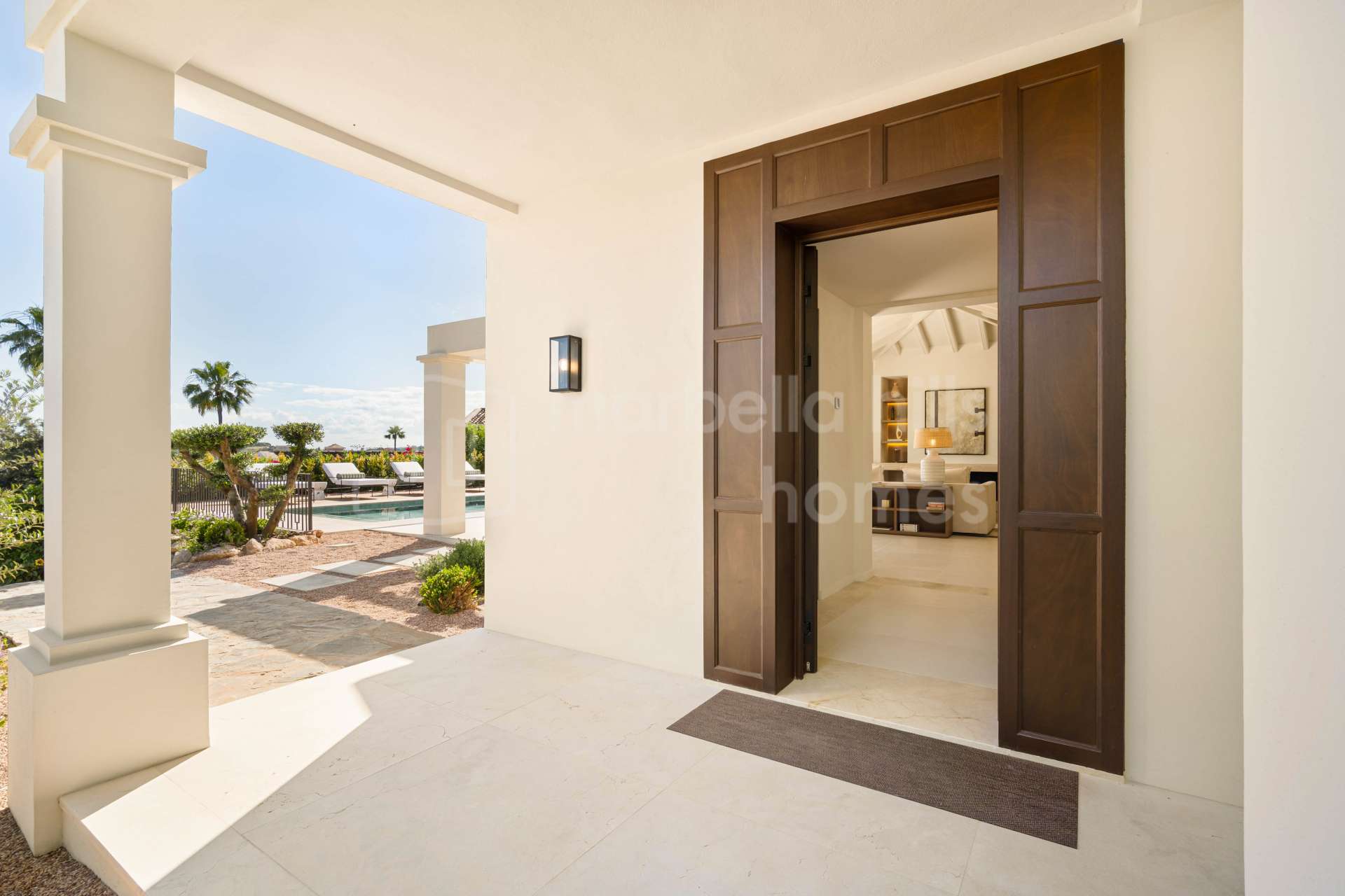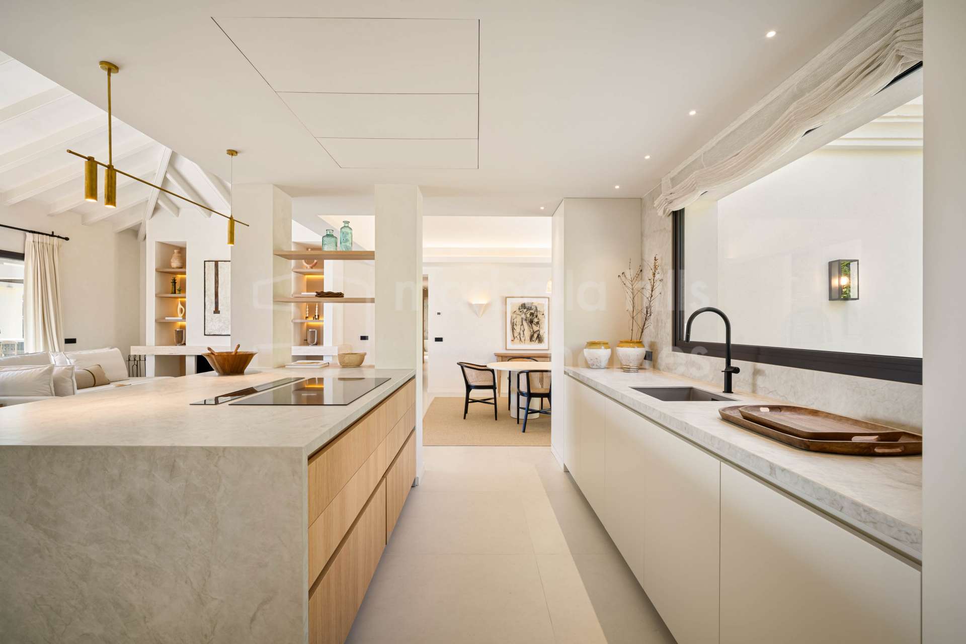 Ubicada en una de las zonas más exclusivas de Marbella, esta villa de una sola planta en Nueva Andalucía ha sido completamente rediseñada para ofrecer una fusión perfecta entre el encanto mediterráneo y la sofisticación contemporánea. A pocos minutos del prestigioso campo de golf Los Naranjos, esta propiedad combina privacidad, confort de alta gama y vistas abiertas al valle y al mar.