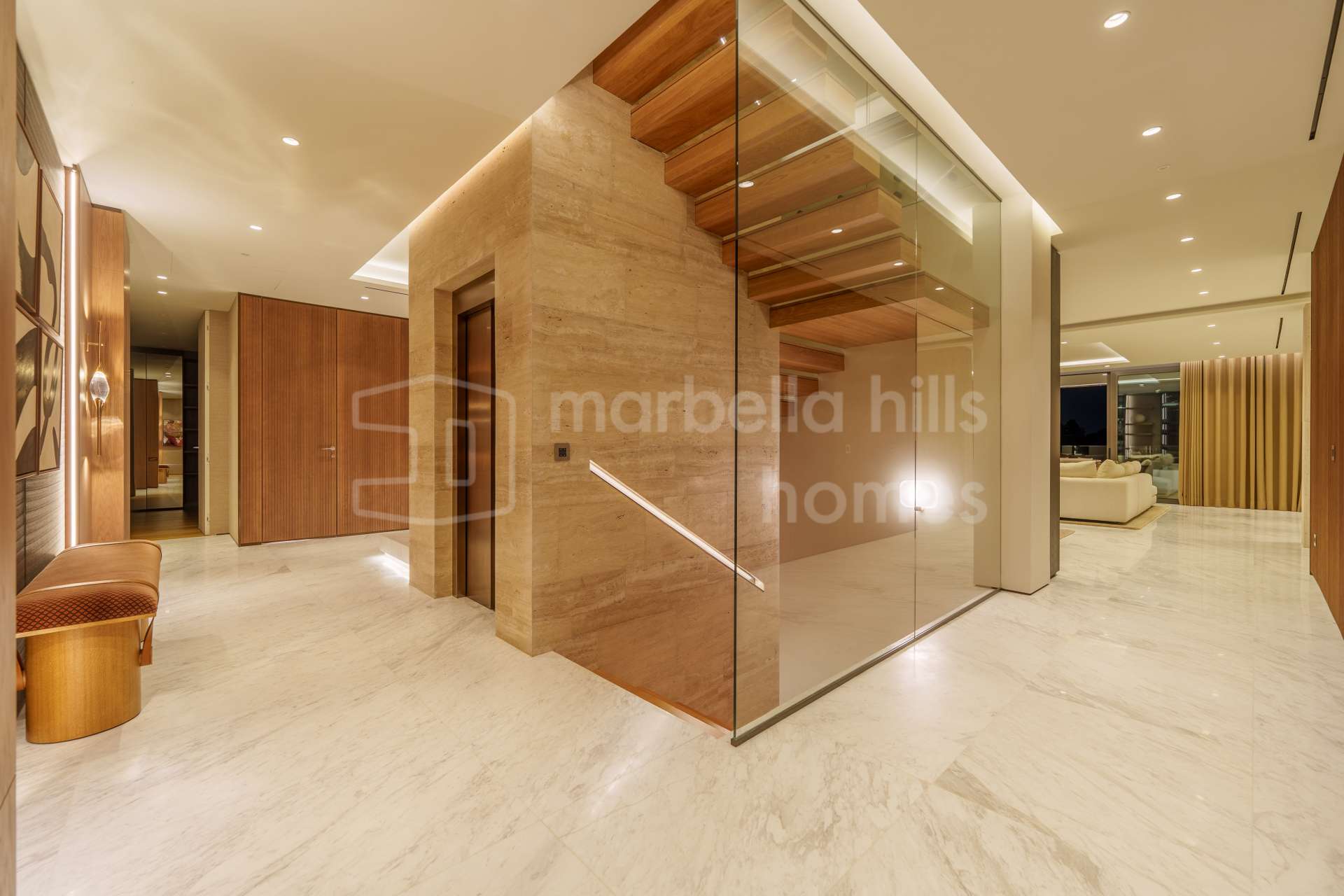 Desde el primer momento, esta residencia transmite una sensación de grandeza y sofisticación. Un elegante vestíbulo de entrada da paso a espacios amplios y luminosos, diseñados para quienes valoran el confort sin renunciar al estilo.