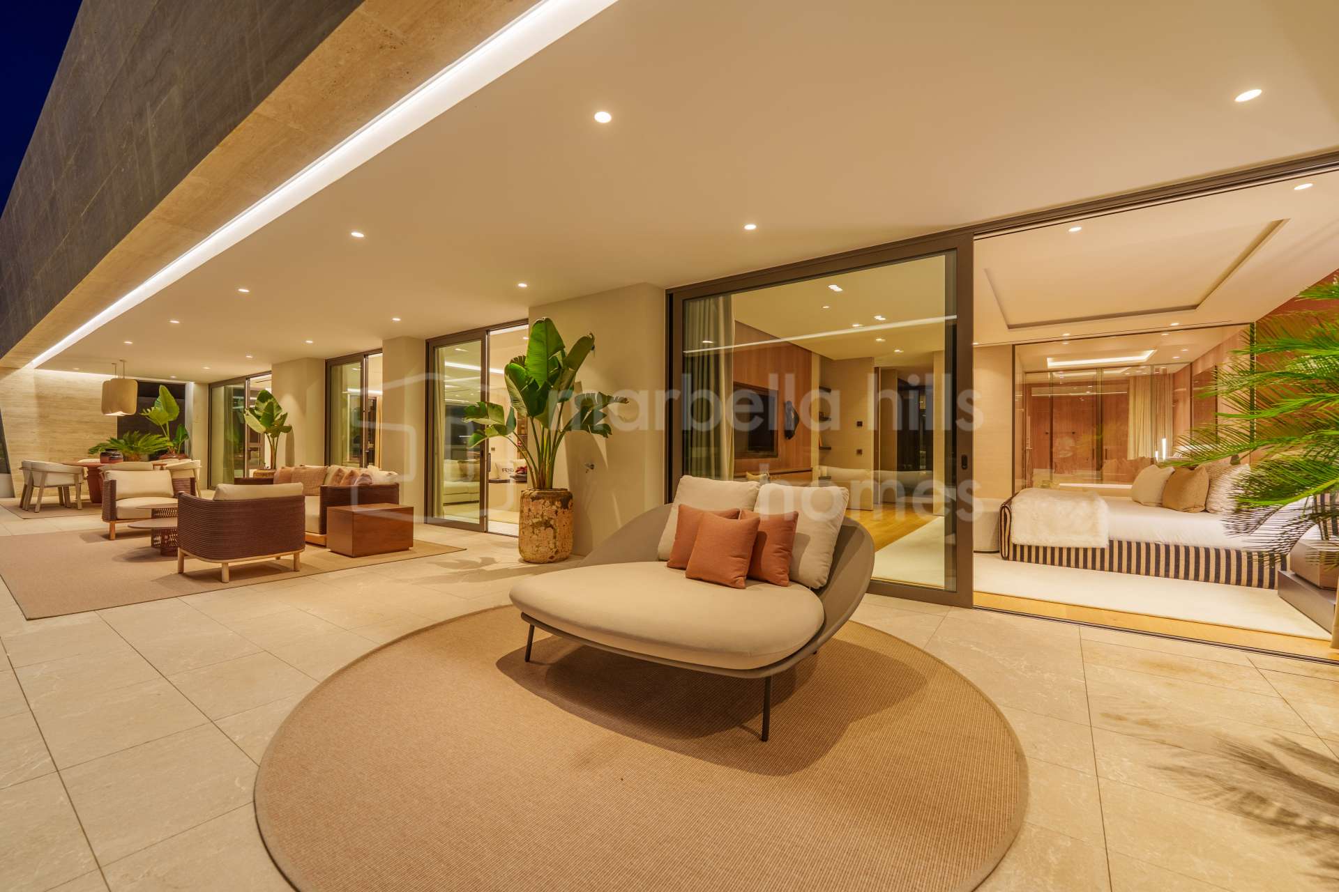 El salón principal, de dimensiones extraordinarias, ofrece una atmósfera de libertad y amplitud que invita tanto al descanso como a la socialización. Los suelos de mármol, que se extienden por toda la propiedad, refuerzan la estética de lujo atemporal.