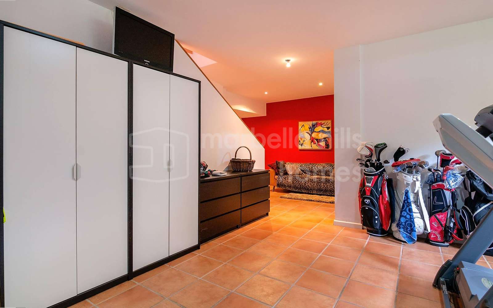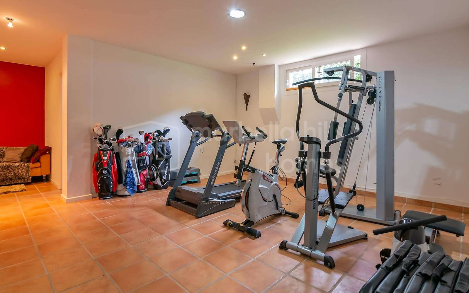 Sótano con gimnasio privado y espacio de almacenamiento adicional