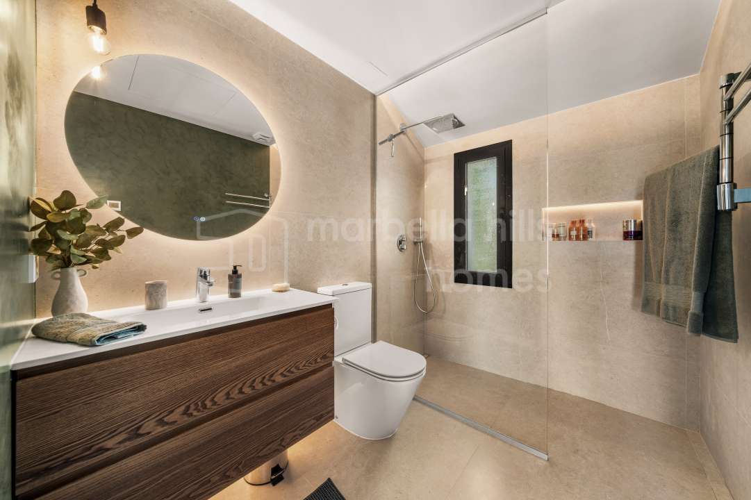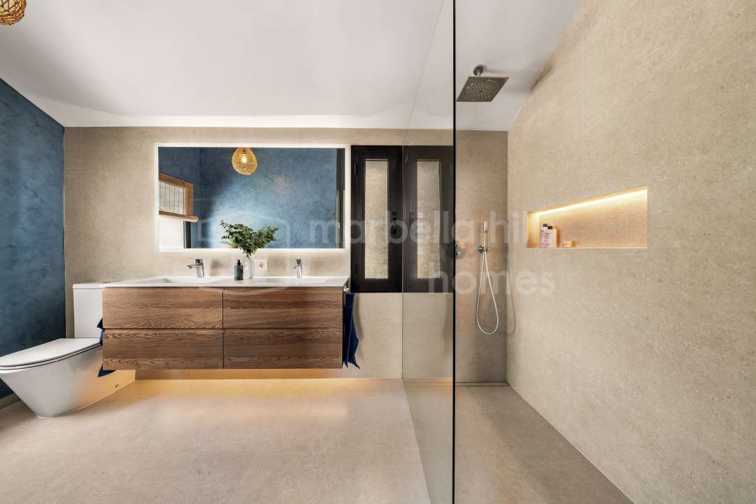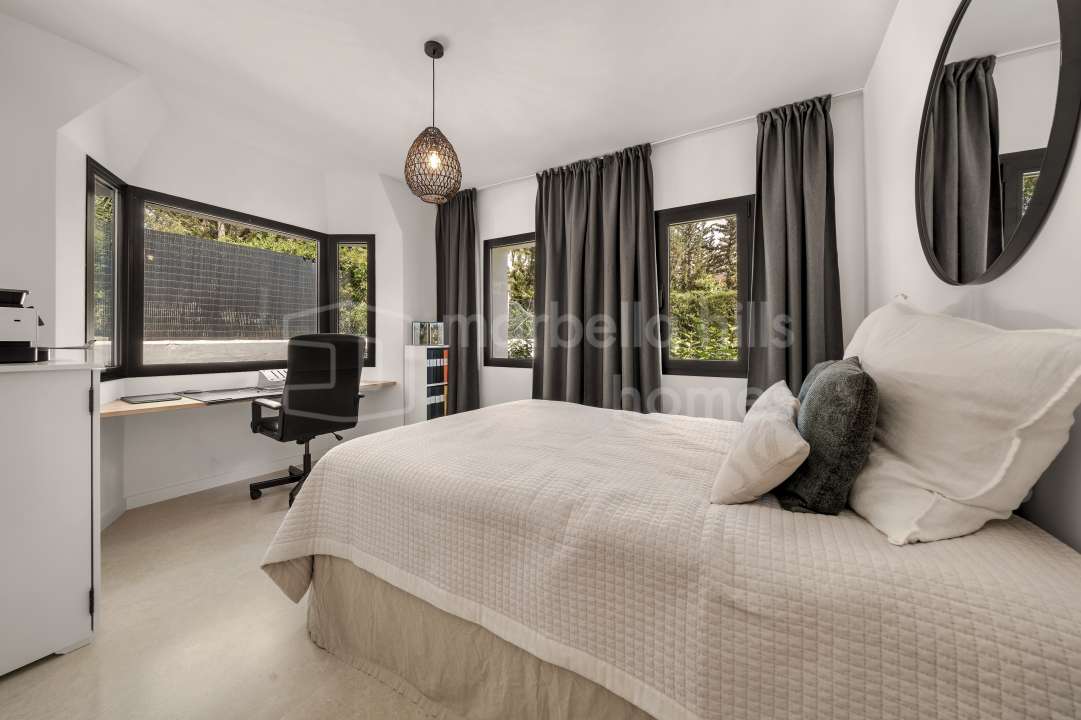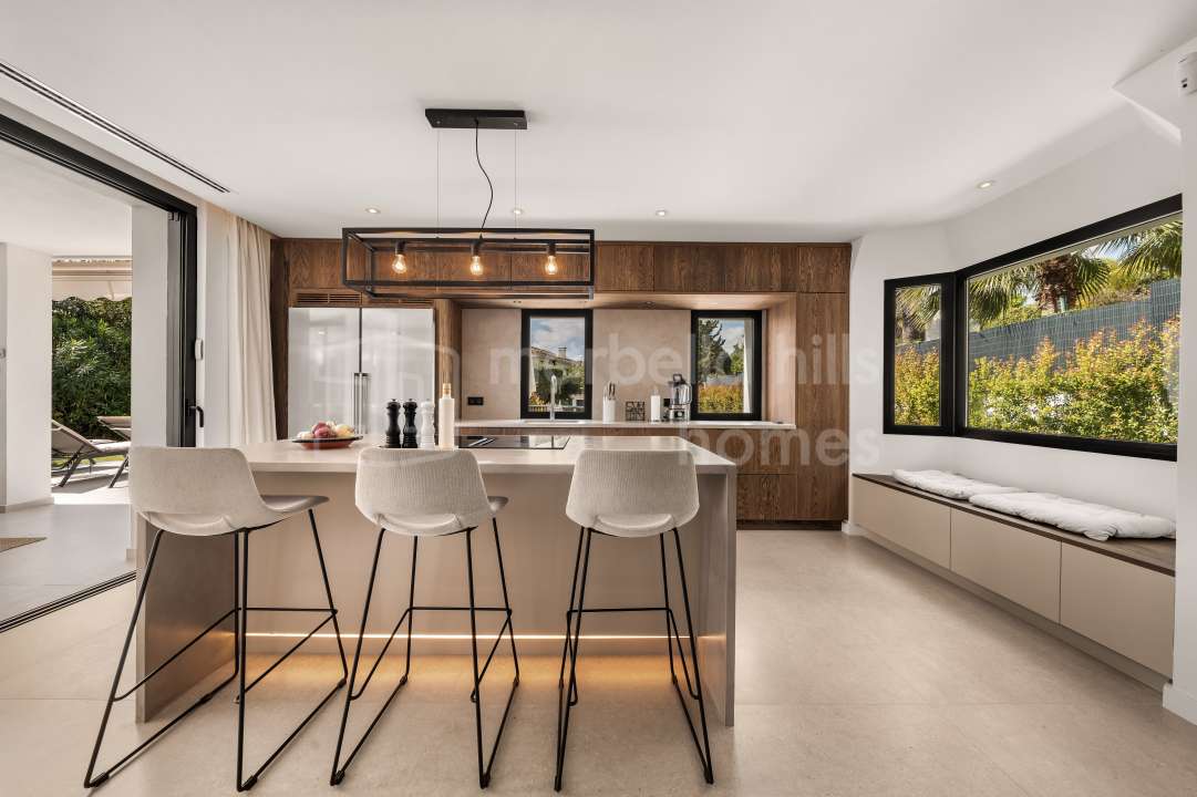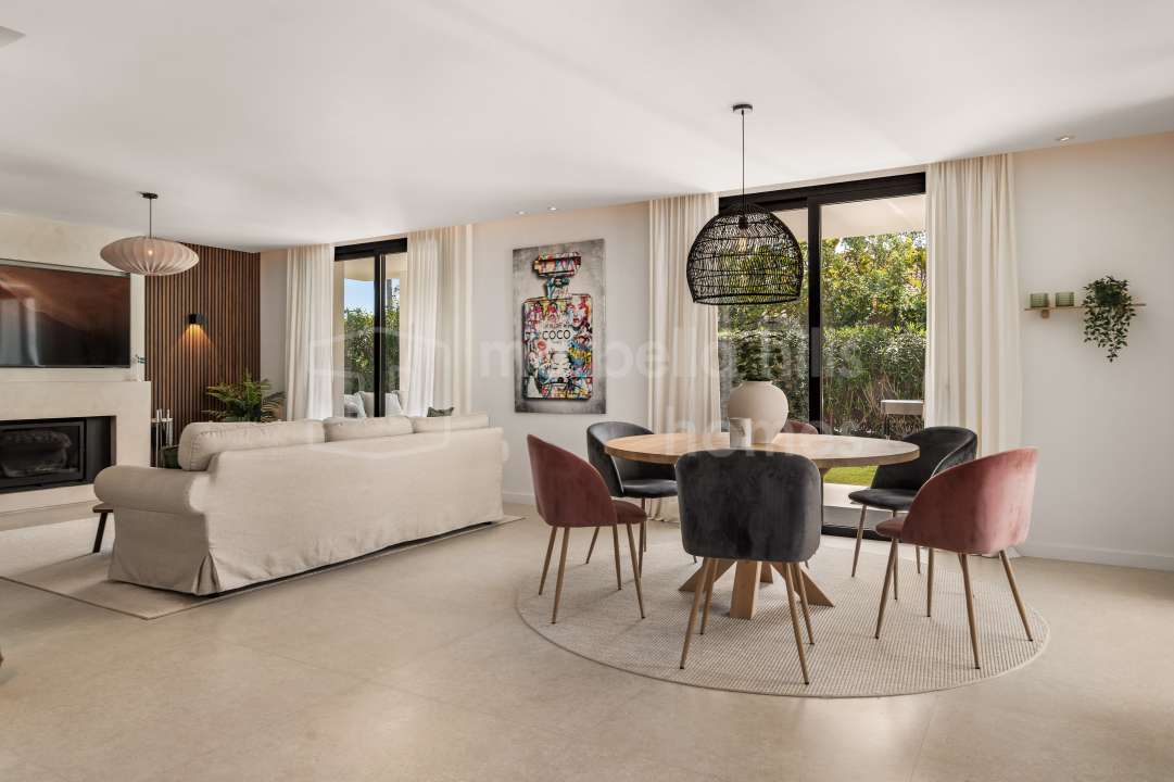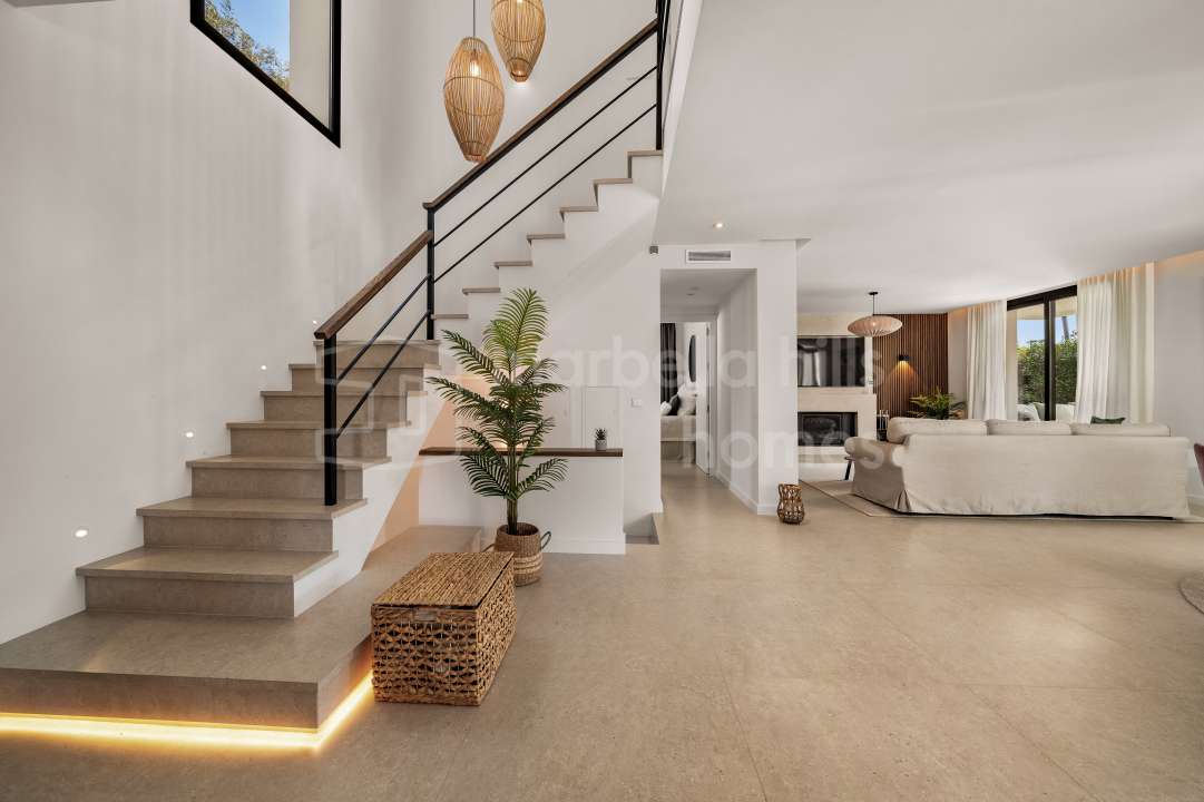 Villa reformada de 4 dormitorios en Nueva Andalucía, Marbella. Diseño escandinavo, espacios abiertos, terraza soleada, gimnasio y garaje en ubicación privilegiada cerca de...