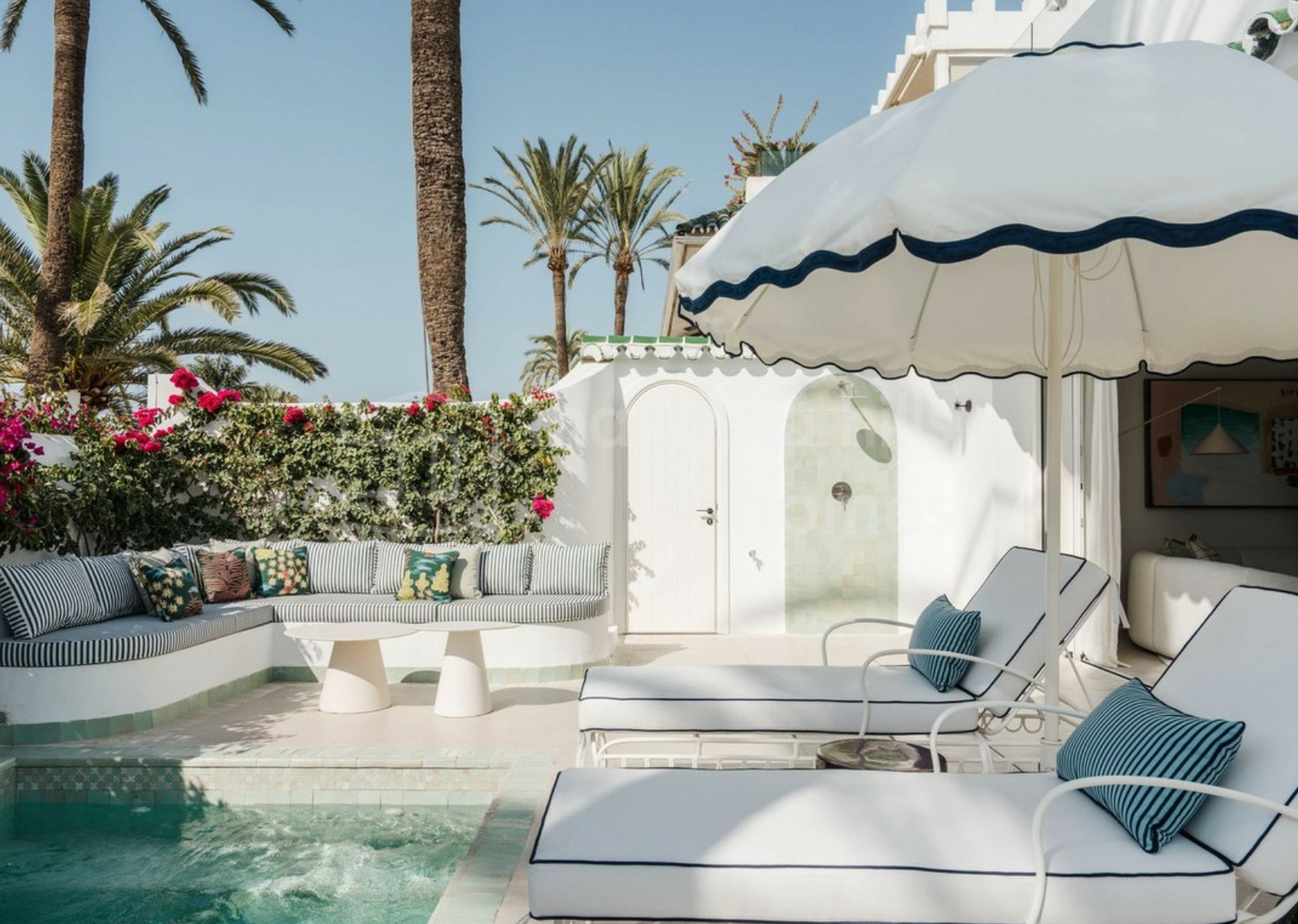 - Adosado de lujo en Oasis Club, Milla de Oro de Marbella – Ubicación en primera línea de playa con acceso directo al paseo marítimo – 3 dormitorios, todos con baños en suite – Jardín privado con piscina climatizada, cocina de verano y zona de estar – Gran terraza con wet bar y espectaculares vistas al mar – Suite principal con vestidor y baño en suite – A poca distancia de Marbella Club, Puente Romano y Puerto Banús – Vivienda recientemente renovada con diseño inspirado en Marbella Club