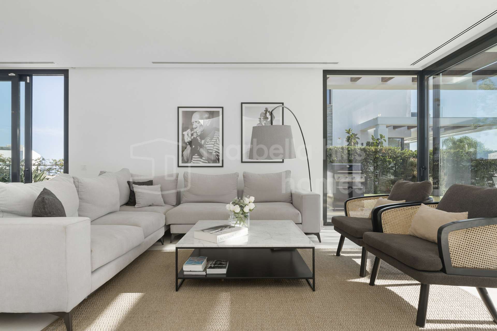 Amueblada con buen gusto y equipada con acabados de alta calidad, la villa ofrece además un garaje privado, jardín diseñado con detalle y todas las comodidades para disfrutar al máximo de la vida en Marbella Este.