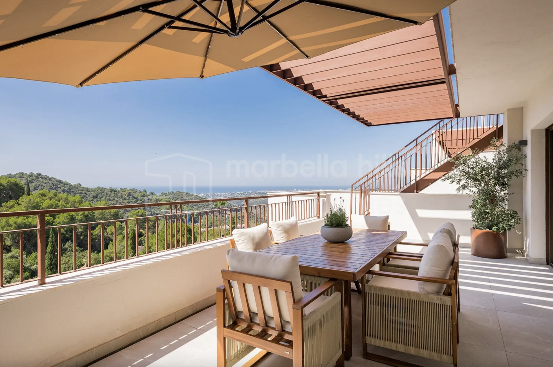 Situado en un enclave tranquilo pero a un paso de playas de primer nivel, restaurantes exclusivos y prestigiosos campos de golf, este ático dúplex es el refugio ideal para quienes buscan diseño, naturaleza y proximidad al vibrante corazón de Marbella.