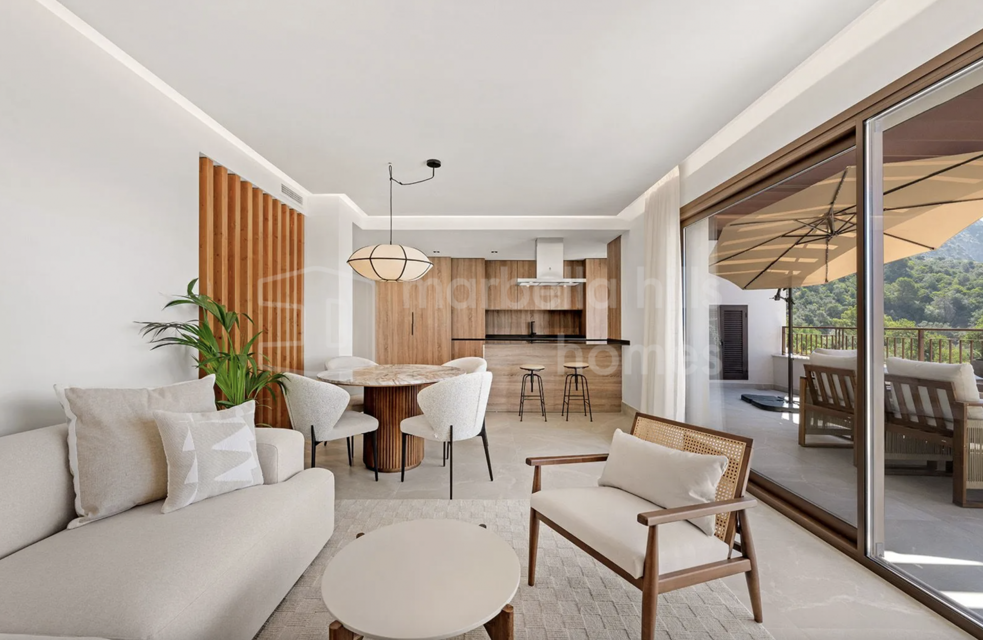 Ubicado en las tranquilas colinas de Istán y a tan solo 5 minutos de la Milla de Oro de Marbella, este impresionante ático dúplex ofrece una combinación única de diseño contemporáneo y serenidad natural. Diseñado por la prestigiosa interiorista Marta del Ganso, reconocida por su trabajo en Breathe Marbella, cada detalle de la vivienda refleja una estética refinada y orgánica que se integra perfectamente con el entorno.