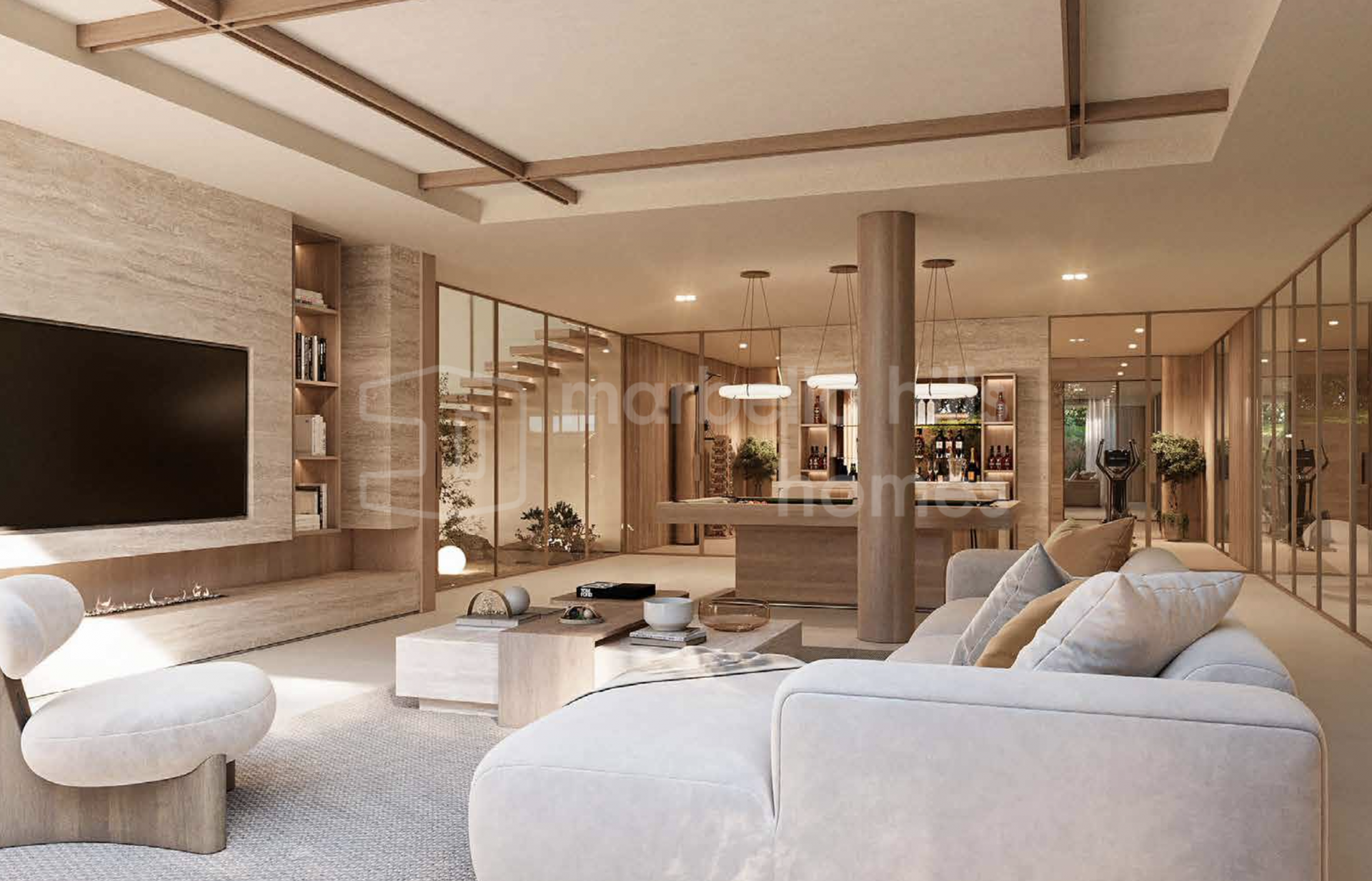 En el interior, materiales nobles y una suave paleta mediterránea crean una atmósfera serena y sofisticada. Las cocinas contemporáneas se integran perfectamente con las zonas de estar, mientras que los dormitorios ofrecen privacidad y confort, todos con baños en suite diseñados para el descanso y el bienestar.