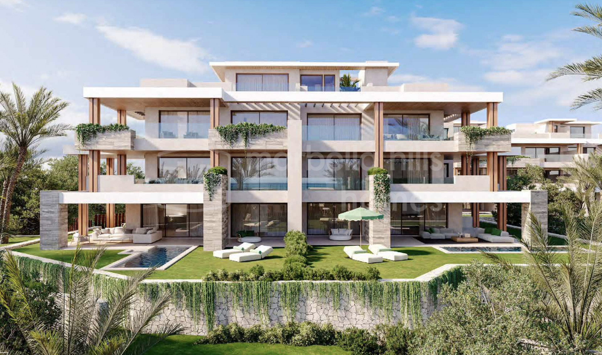 Áticos en primera línea de playa en venta en Estepona con vistas al mar y terrazas en la azotea