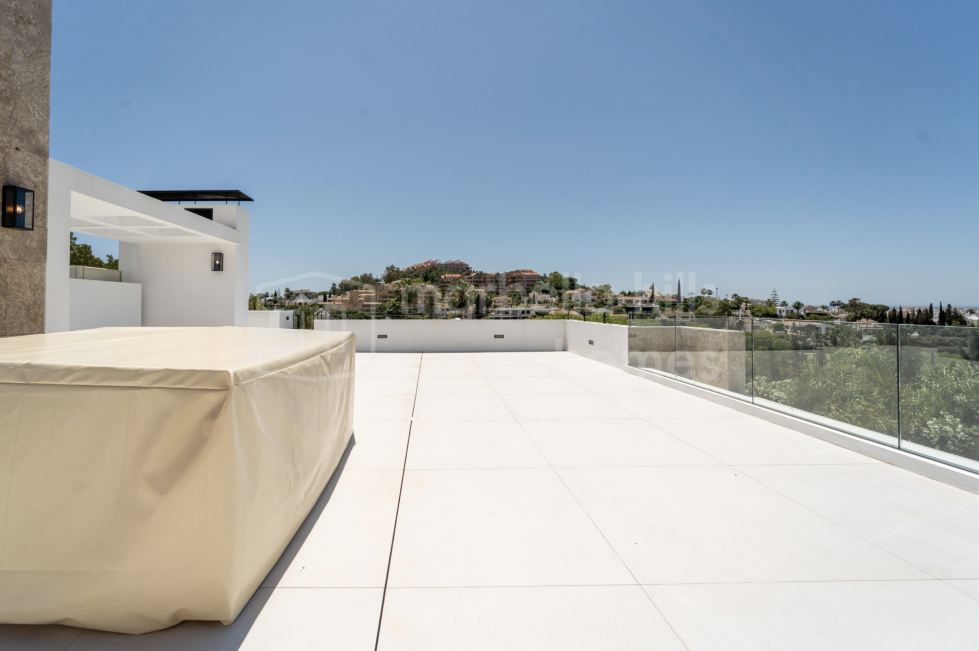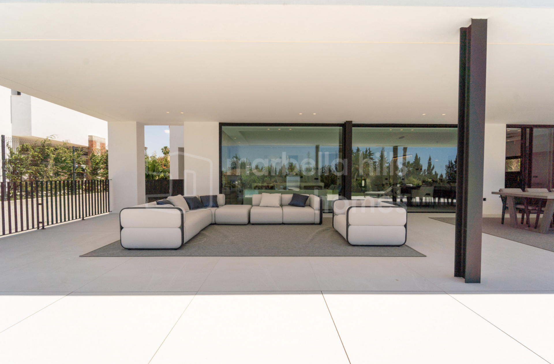 Las zonas exteriores están pensadas para disfrutar del estilo de vida mediterráneo. La piscina privada se sitúa junto a una terraza cubierta y una zona lounge ideal para comer o relajarse. Los jardines paisajísticos combinan vegetación mediterránea con un diseño estructurado que aporta privacidad y estética. Completan este espacio una zona de barbacoa y la preinstalación para jacuzzi.