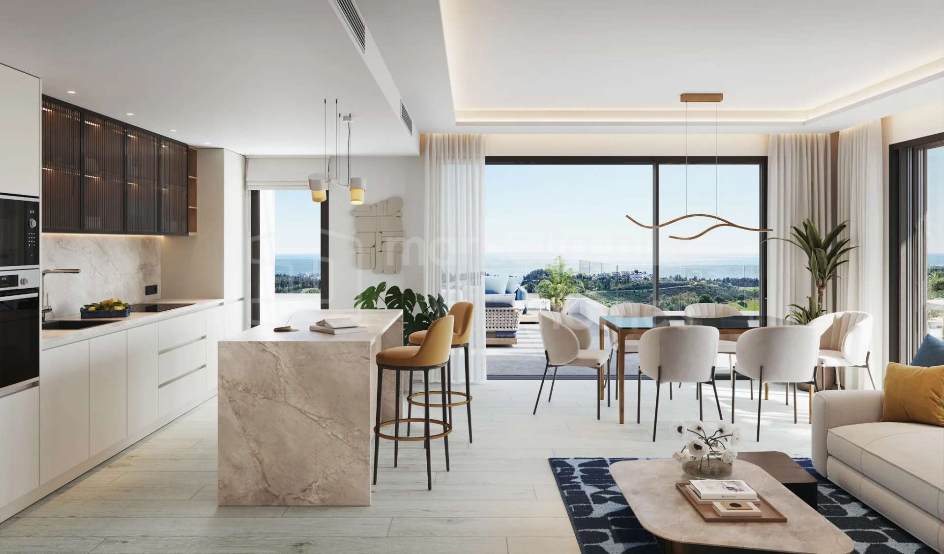 Apartamentos y villas de obra nueva en Buenavista, Mijas, con vistas panorámicas al mar, spa, piscinas, coworking y seguridad 24h. Entrega 2028/2029.