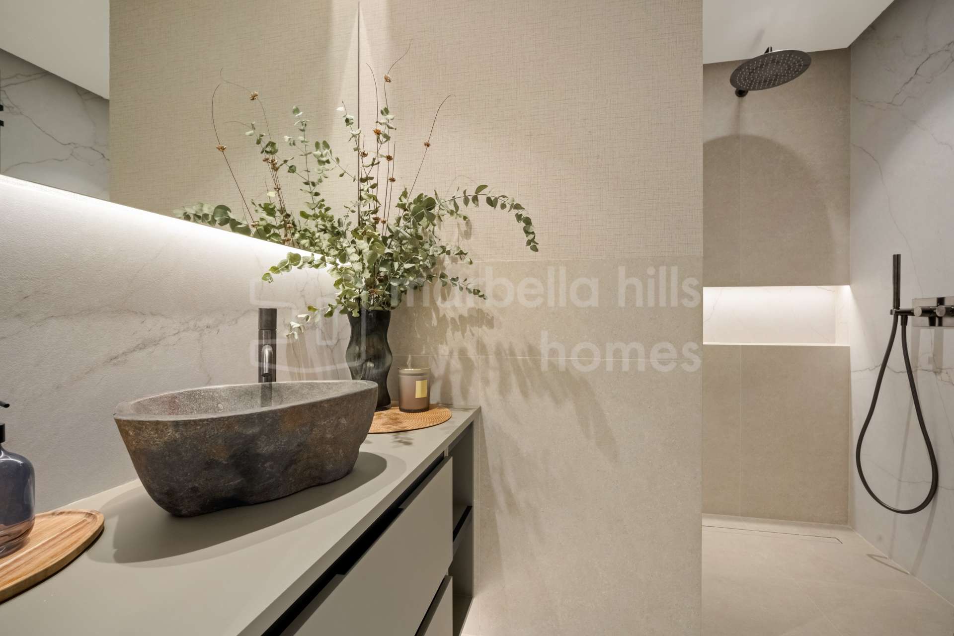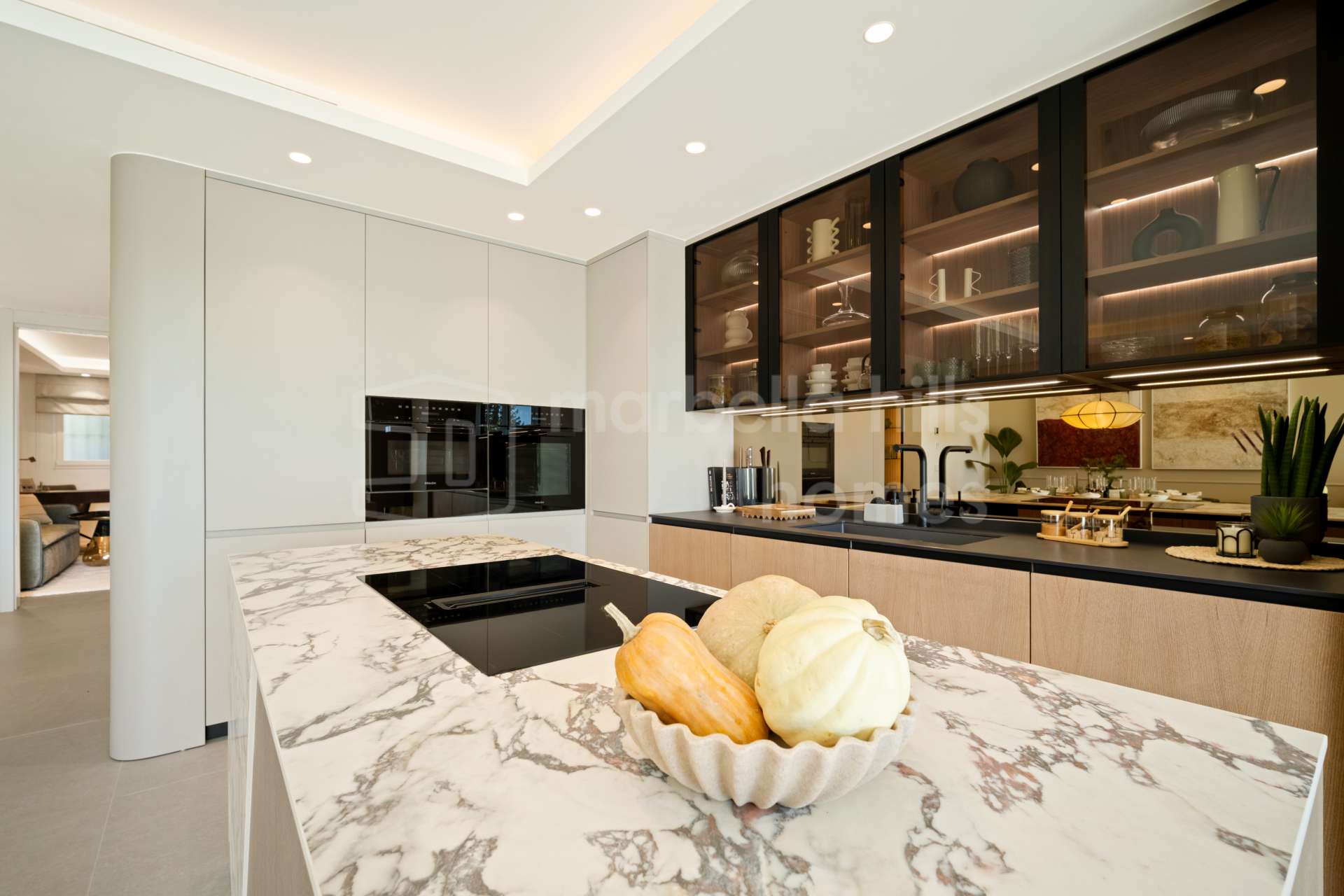 El interior ha sido rediseñado por completo con una estética moderna y acabados a medida. El salón, comedor y cocina se integran en un espacio diáfano que actúa como el centro del hogar, con líneas arquitectónicas limpias, iluminación integrada y materiales de alta calidad. La cocina, totalmente equipada con electrodomésticos de gama alta, ofrece amplias zonas de almacenamiento y una conexión fluida con la zona de estar, ideal tanto para el día a día como para recibir invitados.