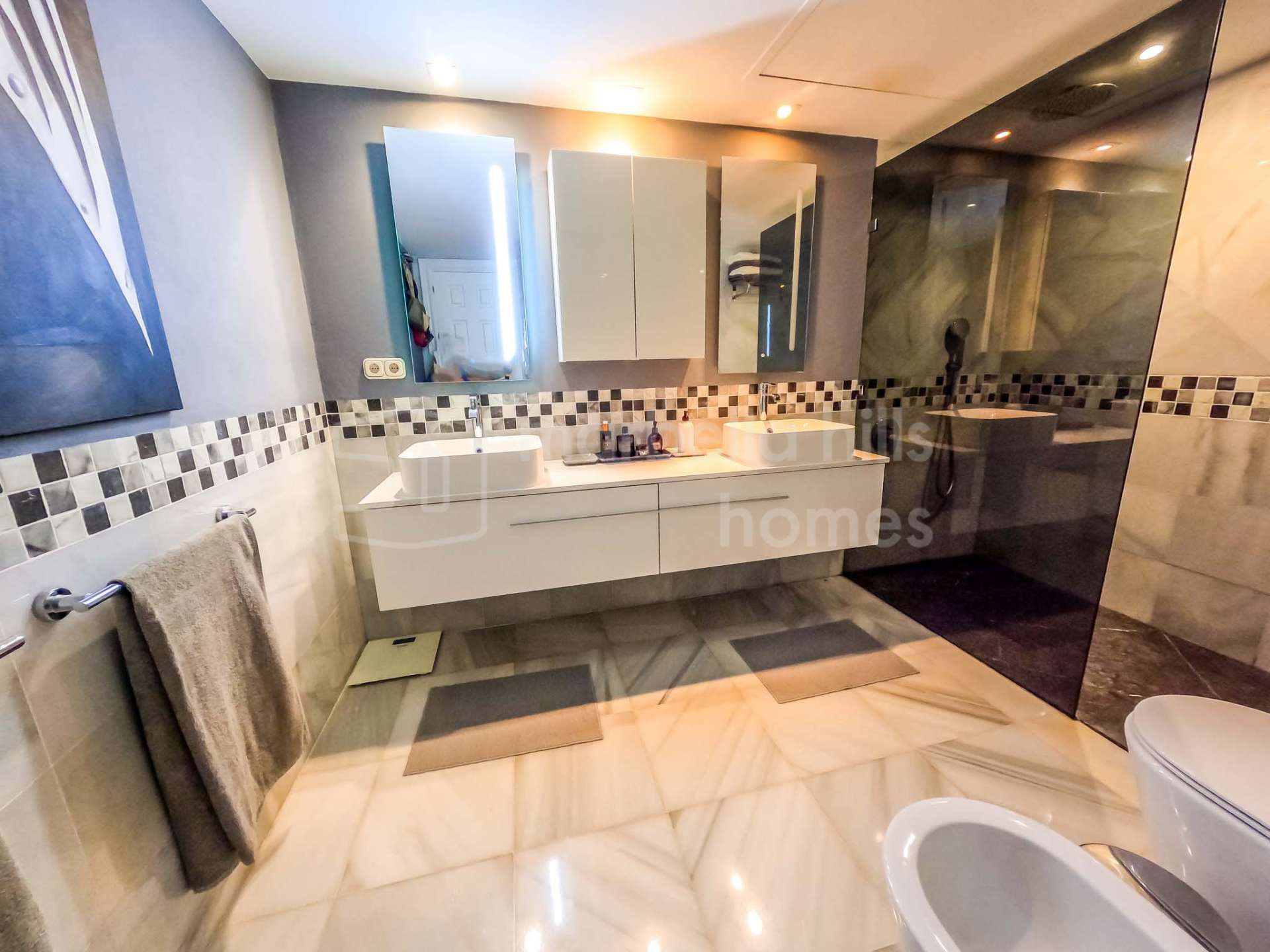 Este ático en venta en Marbella dispone de dos amplios dormitorios en suite con armarios empotrados, ofreciendo confort y privacidad. La cocina totalmente equipada está integrada de manera funcional con la zona de comedor, perfecta tanto para el día a día como para recibir invitados.