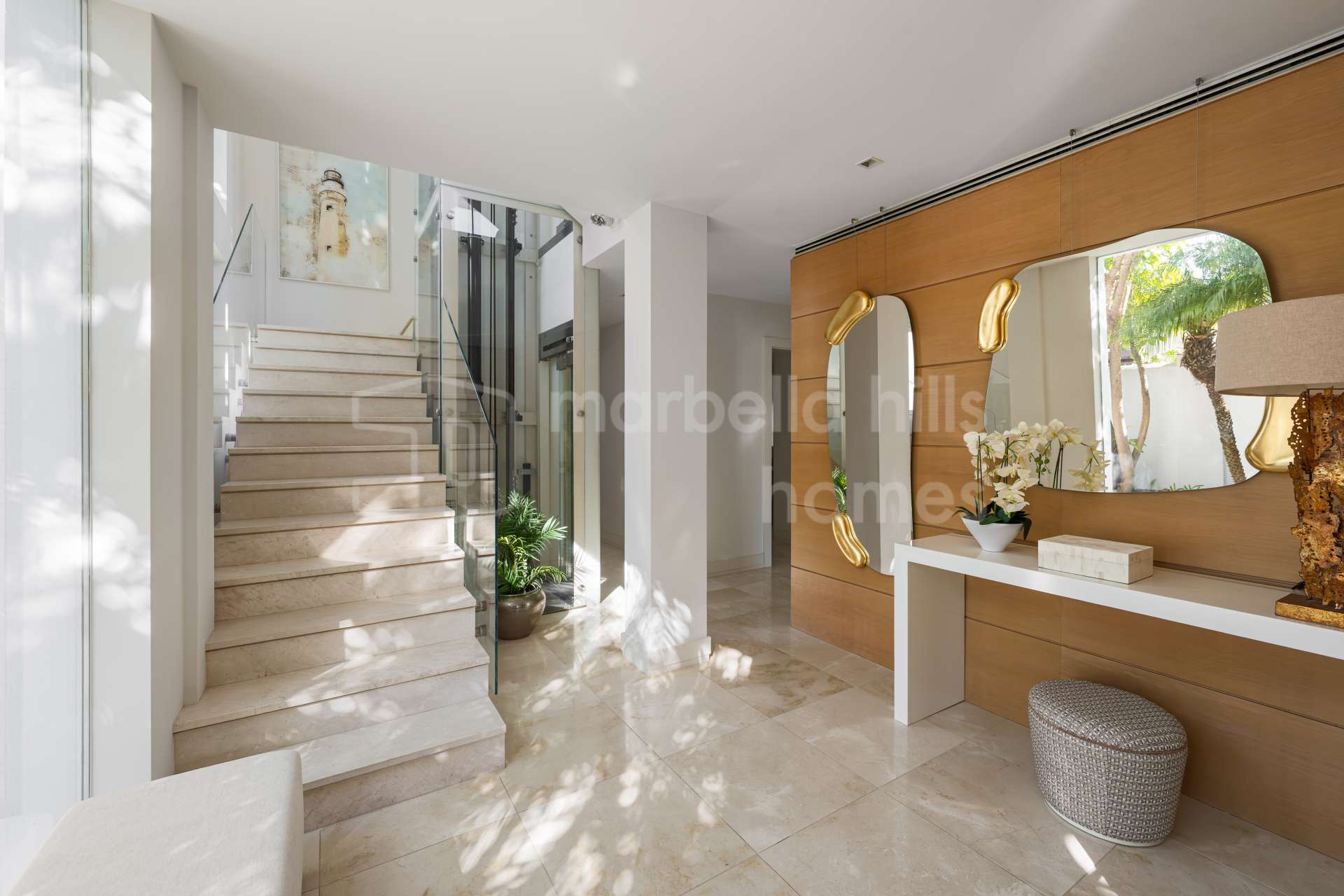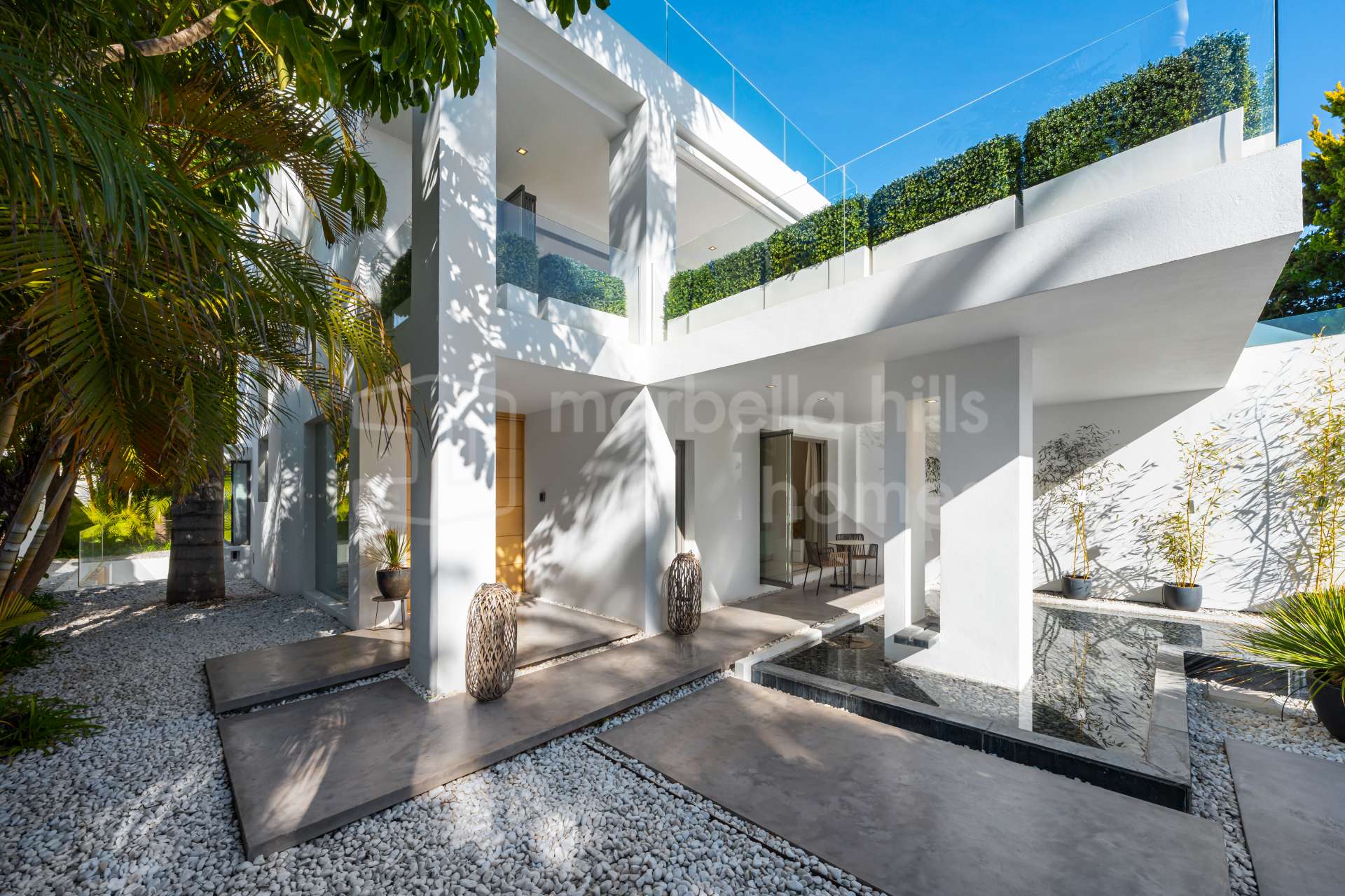Con 442 m² construidos sobre una parcela de 420 m² y 123 m² de terrazas, la villa se distribuye en varios niveles conectados mediante ascensor privado desde el garaje hasta la planta superior. El diseño ha sido cuidadosamente concebido para combinar privacidad, funcionalidad y un estilo de vida mediterráneo sofisticado, ideal tanto como residencia principal como vivienda vacacional de alto nivel en Marbella.