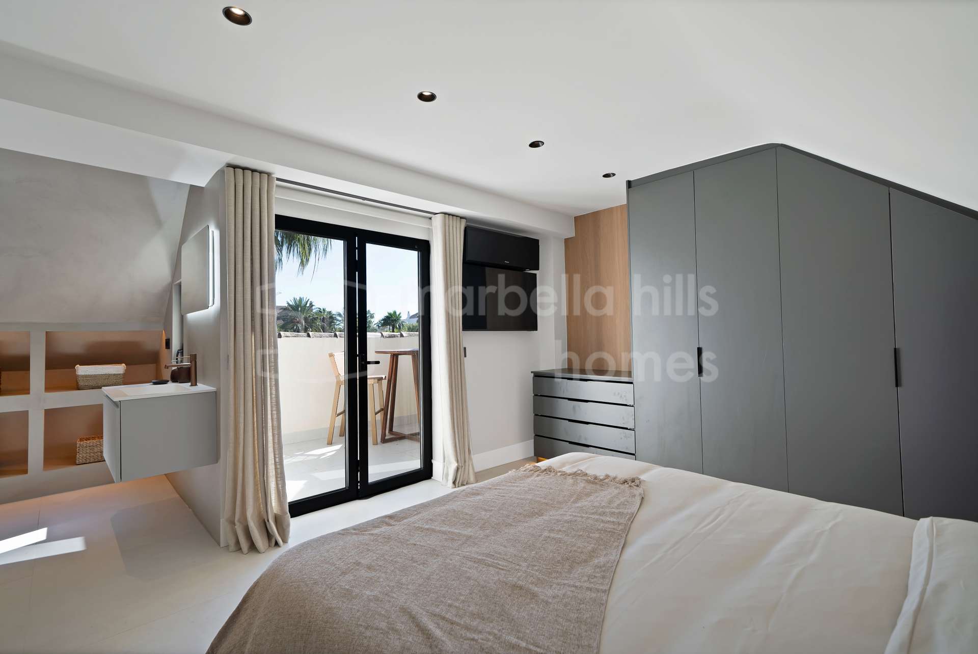 Esta elegante casa adosada en venta en Puerto Banús, Marbella ofrece un estilo de vida contemporáneo en una de las zonas más exclusivas de la Costa del Sol. Ubicada a poca distancia a pie de la playa y del reconocido puerto deportivo de Puerto Banús, la propiedad combina diseño moderno, acabados de alta calidad y una ubicación privilegiada cerca de restaurantes, boutiques, campos de golf y todos los servicios.