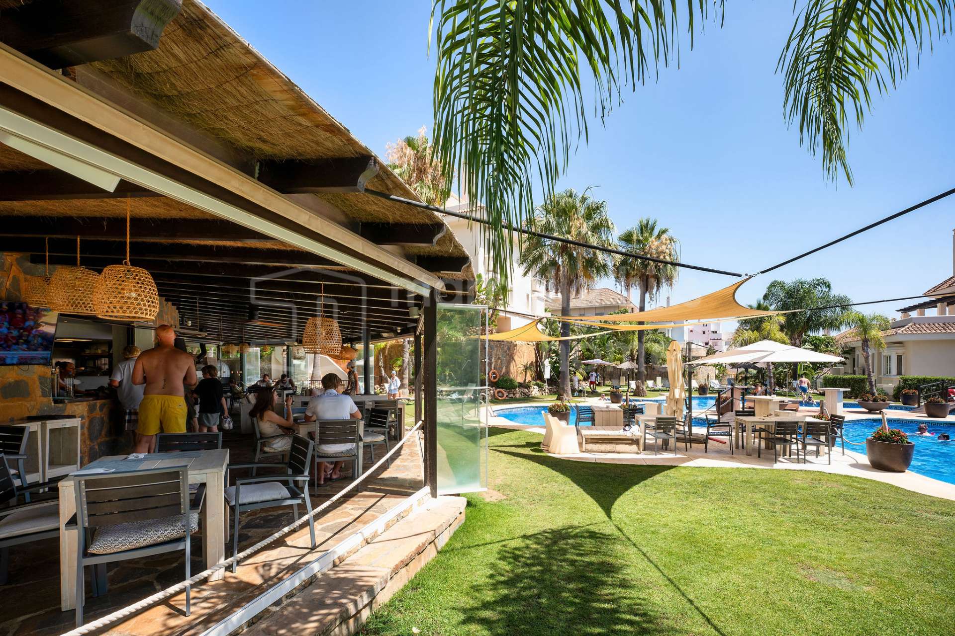 Dúplex reformado de 3 dormitorios en Aloha Gardens, Nueva Andalucía, Marbella. 160m² construidos, 93m² de terrazas, terraza privada con bar y cerca de Puerto Banús.